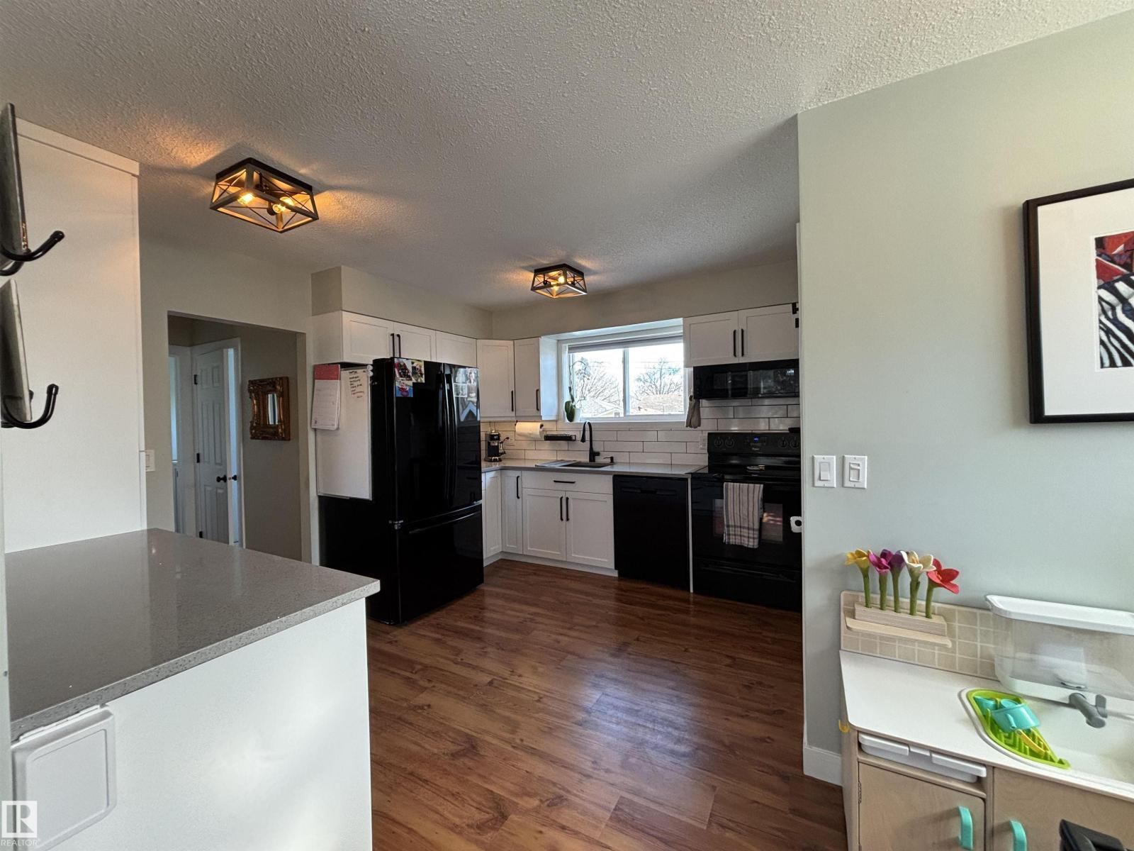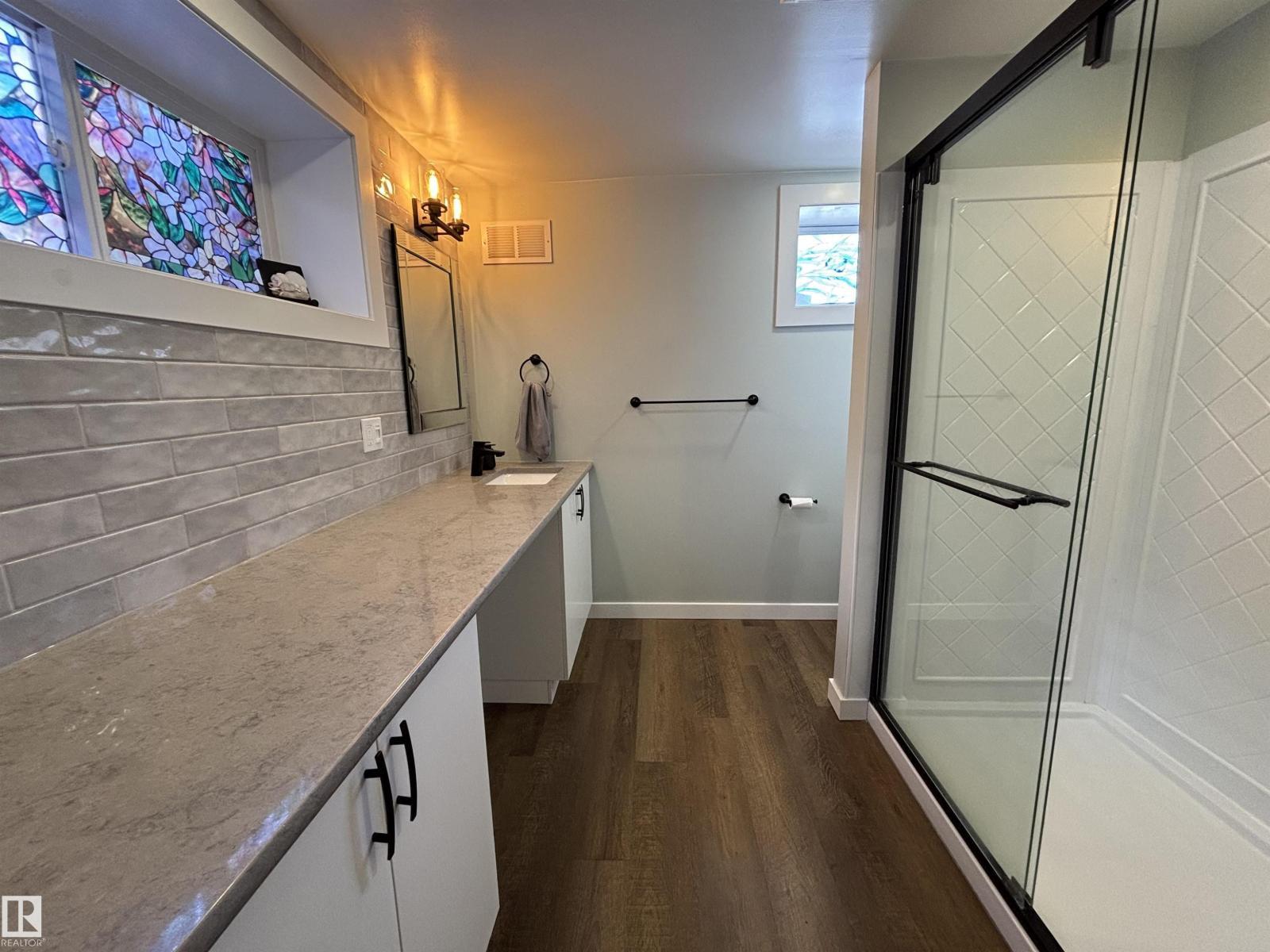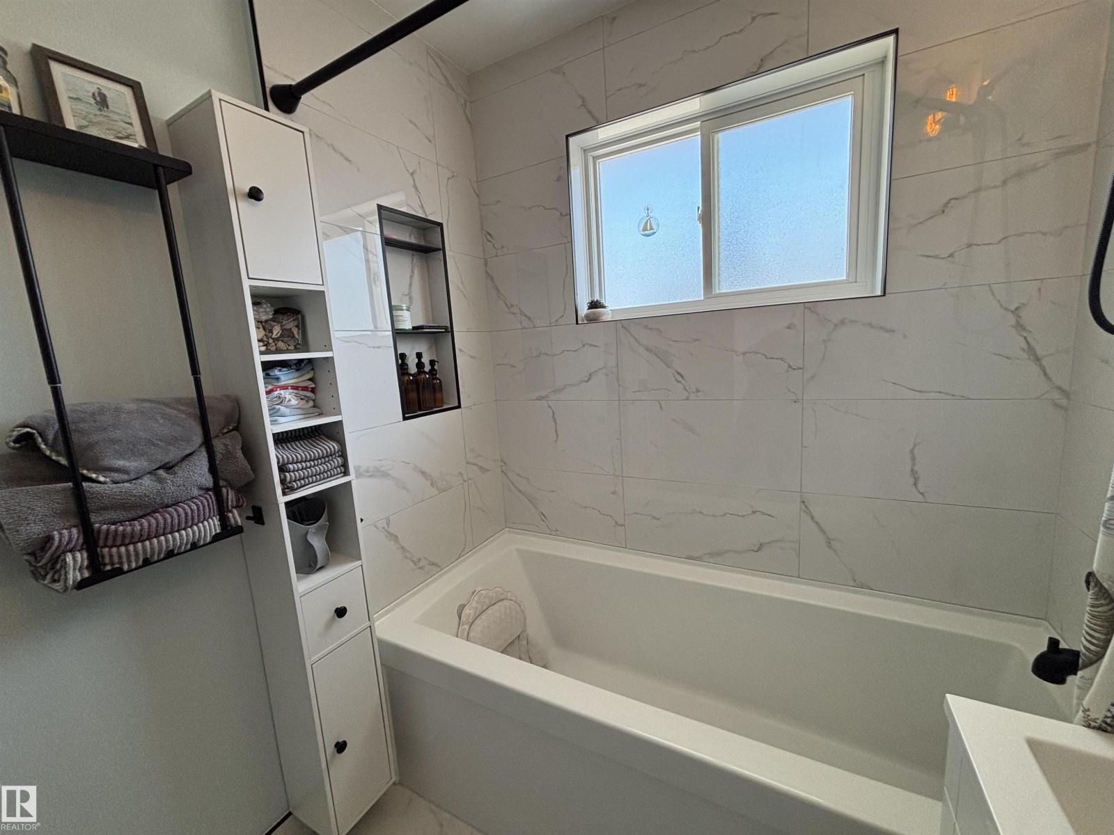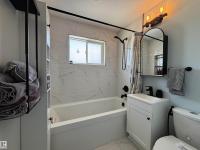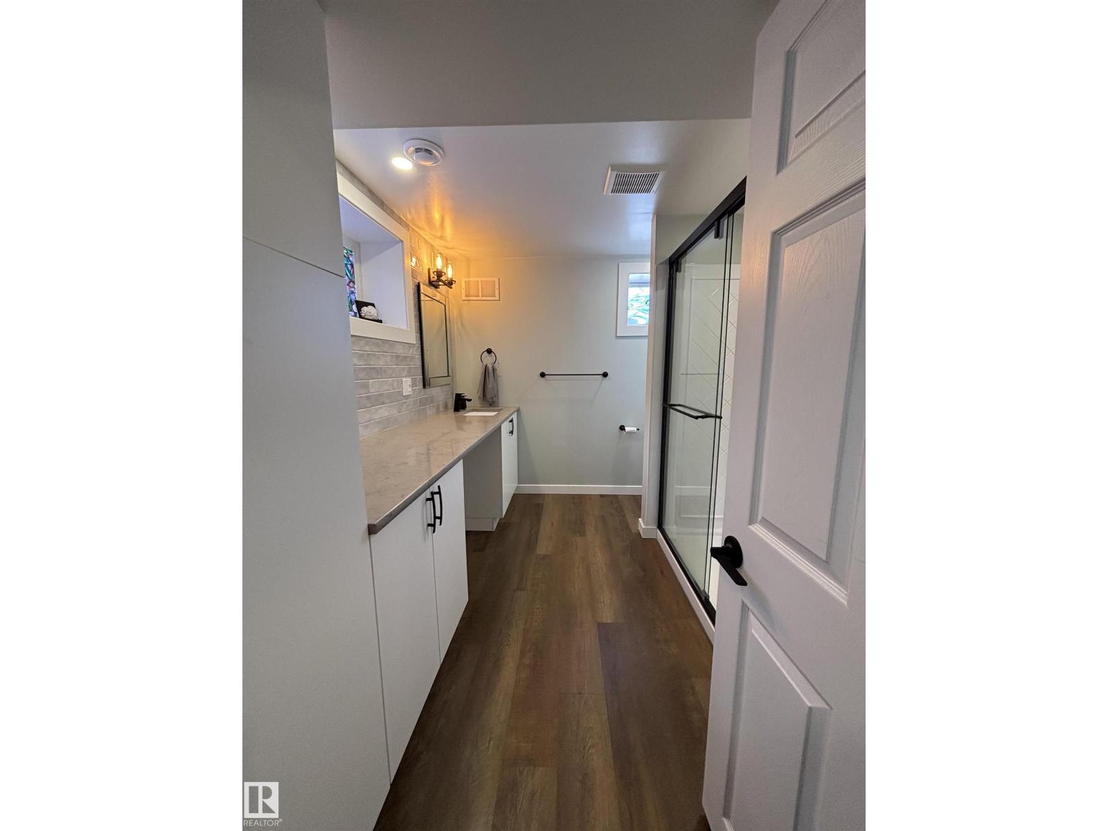 Welcome Home to this beautifully renovated bungalow located in Old Fort Saskatchewan! This home has been renovated top to bottom! The home has a gorgeous layout with 2 bedrooms on the main floor and another bedroom in the basement. The kitchen has gorgeous white cabinetry with beautiful quartz countertops and looks out to the spacious main floor living room! The main floor 4 piece bathroom is sure to impress with the gorgeous tile work, large tub and new vanity and toilet! The primary bedroom is a generous size and has a ton of windows for ample natural light! The basement is completely finished with a laundry area, rec room, 3 piece stunning bathroom, a bedroom and plenty of storage! The single detached garage is heated and the back fence is designed with a gate to allow for more parking options. The home is on a huge lot and fully fenced! There is even a natural gas line for the BBQ! The house and garage also have the soffit lighting which is excellent to light up the exterior. Great location!! (id:6769)