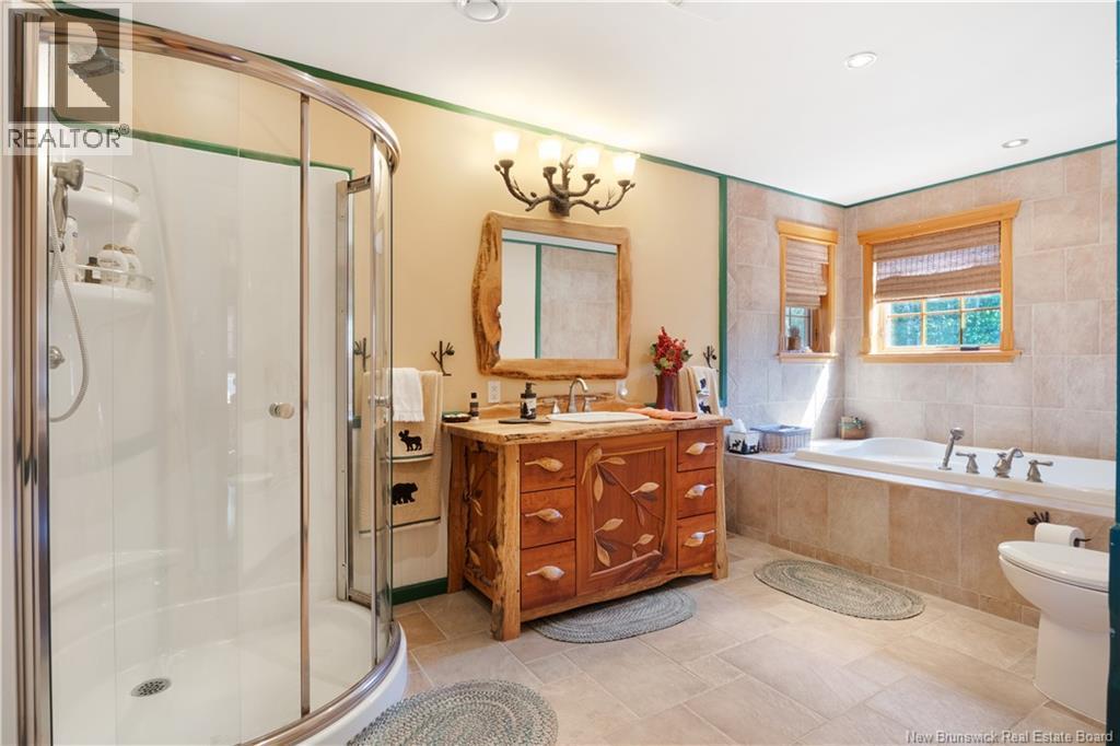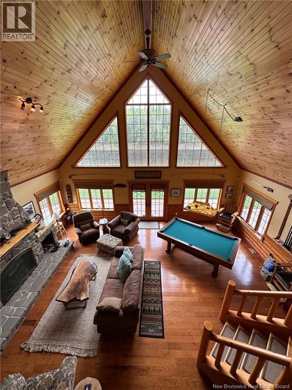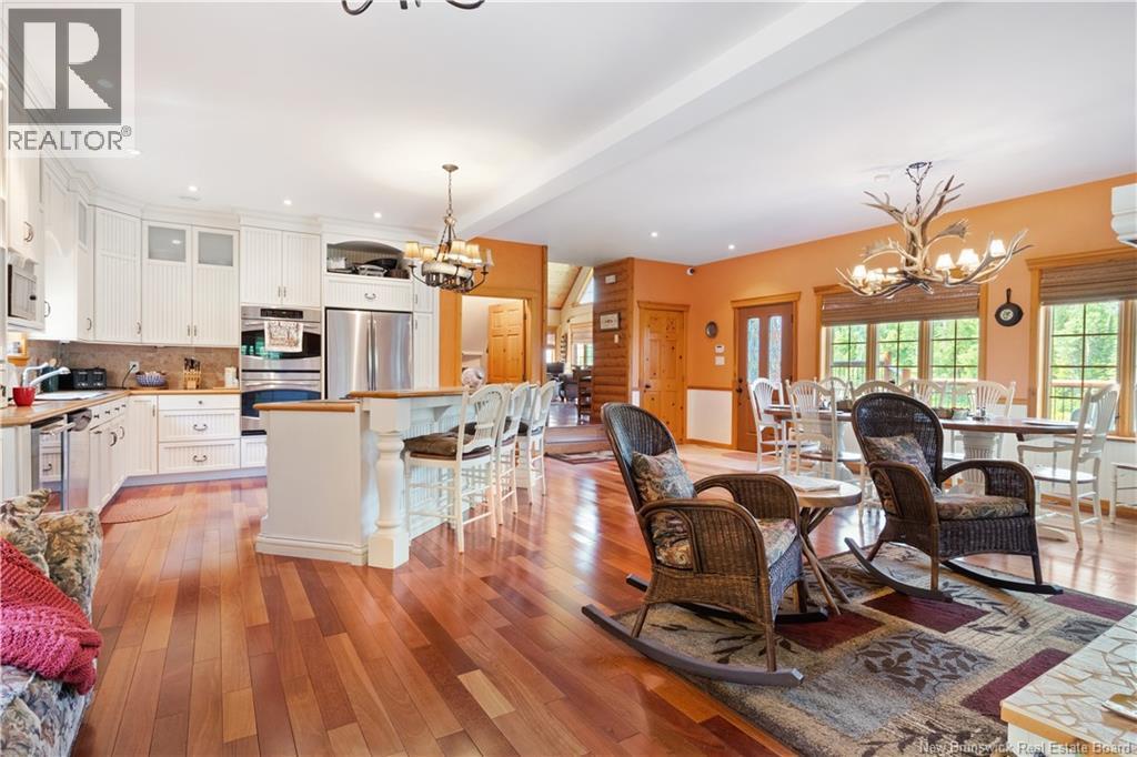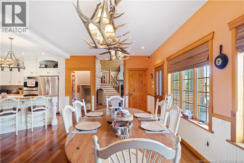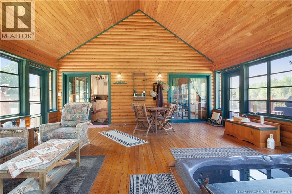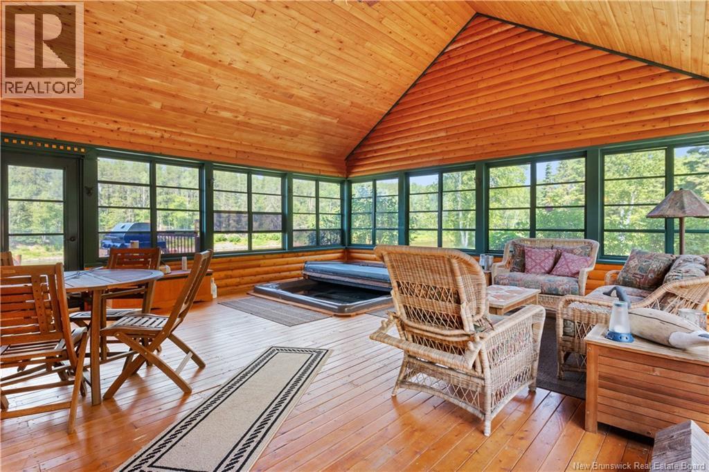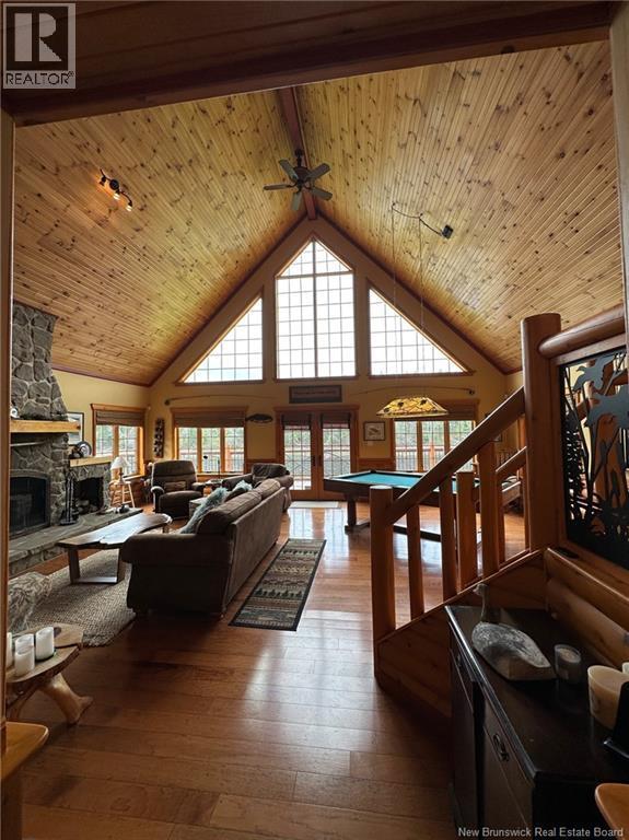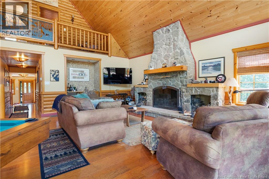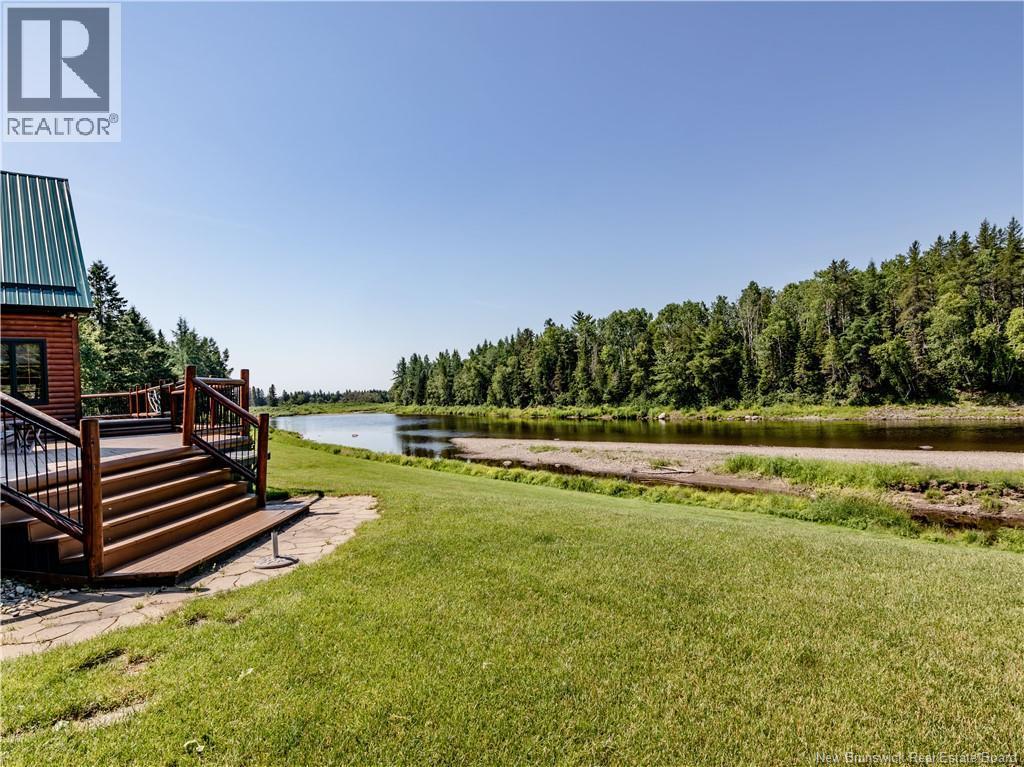This exceptional property offers peaceful country living at its finest. Located just 22 minutes from the Greater Miramichi area, this lodge-style, four-season home sits along the northwestern arm of the renowned Miramichi River. The property includes nearly 4 acres of private land and over 420 feet of river frontage, complete with riparian rights. Enjoy fishing right from your backyard and immerse yourself in a natural setting rich with wildlife. The home features a central heat pump (installed March 2026), four bedrooms, four bathrooms, and a separate playroom or childrens sleep area. The interior includes a gas fireplace in the kitchen and great room, a wood-burning fireplace in the living room, and an additional wood stove in the basement for added comfort. The main living space boasts vaulted ceilings and large windows, offering beautiful views of the river. A 36x36 detached garage provides ample room for vehicles and recreational equipment. With over 4,000 square feet of finished living space, this turnkey home is move-in ready, with most furnishings included (excluding personal items). Additional features include a 24,000-watt propane generator, reverse osmosis water system, a new spa (October 2025), a new steel roof (2024), a radon mitigation system, a monitored security system, and soft windows in the spa room. (id:6769)