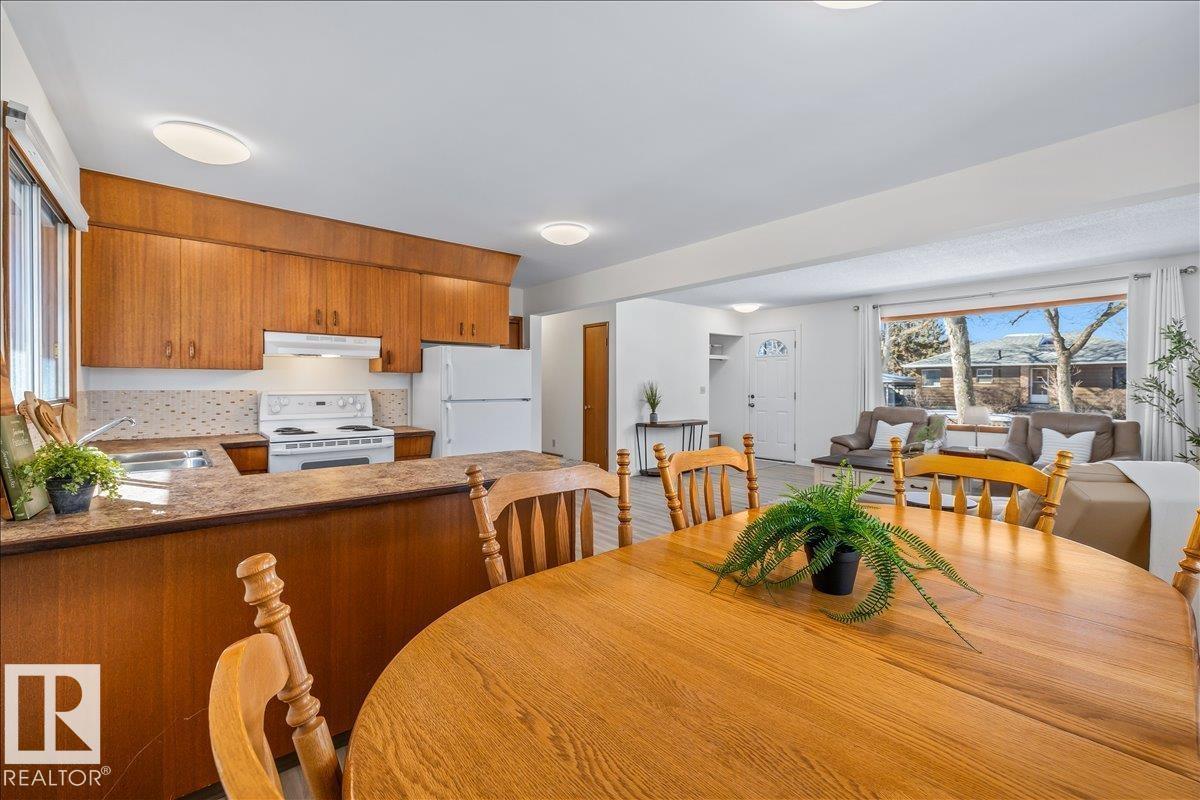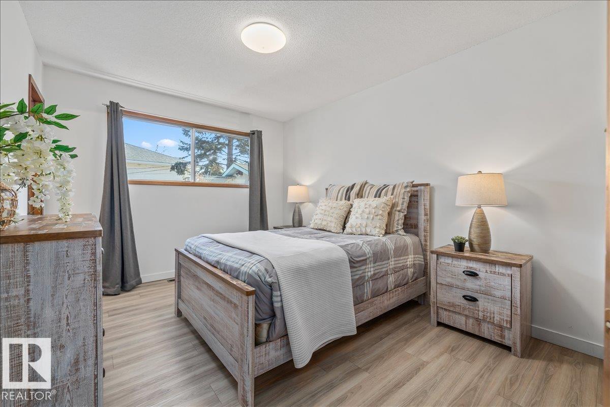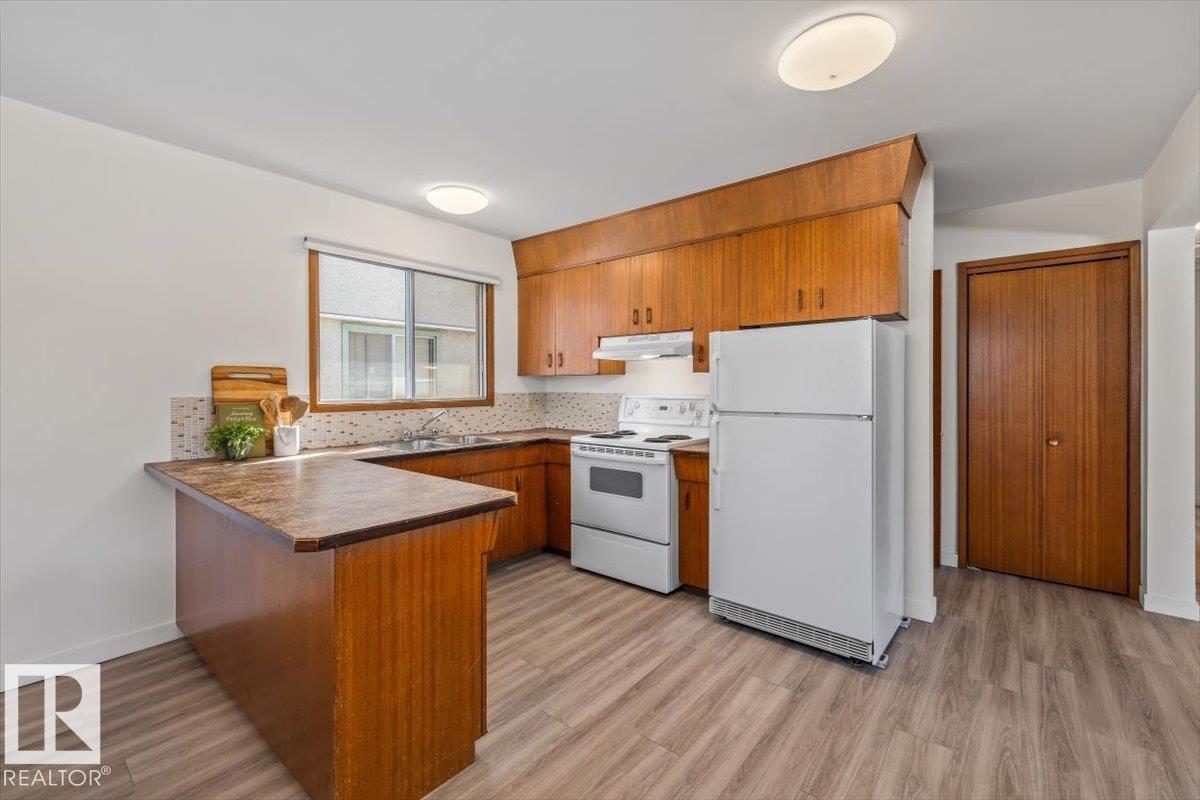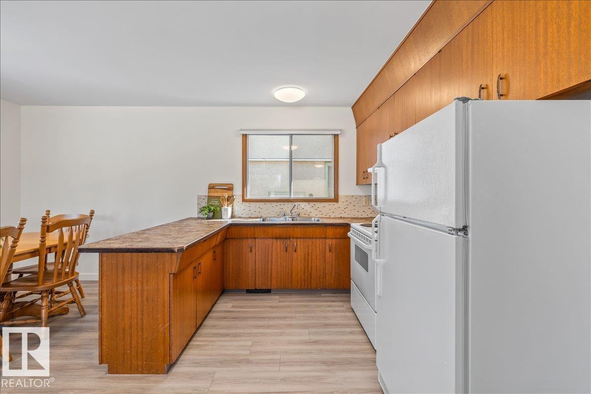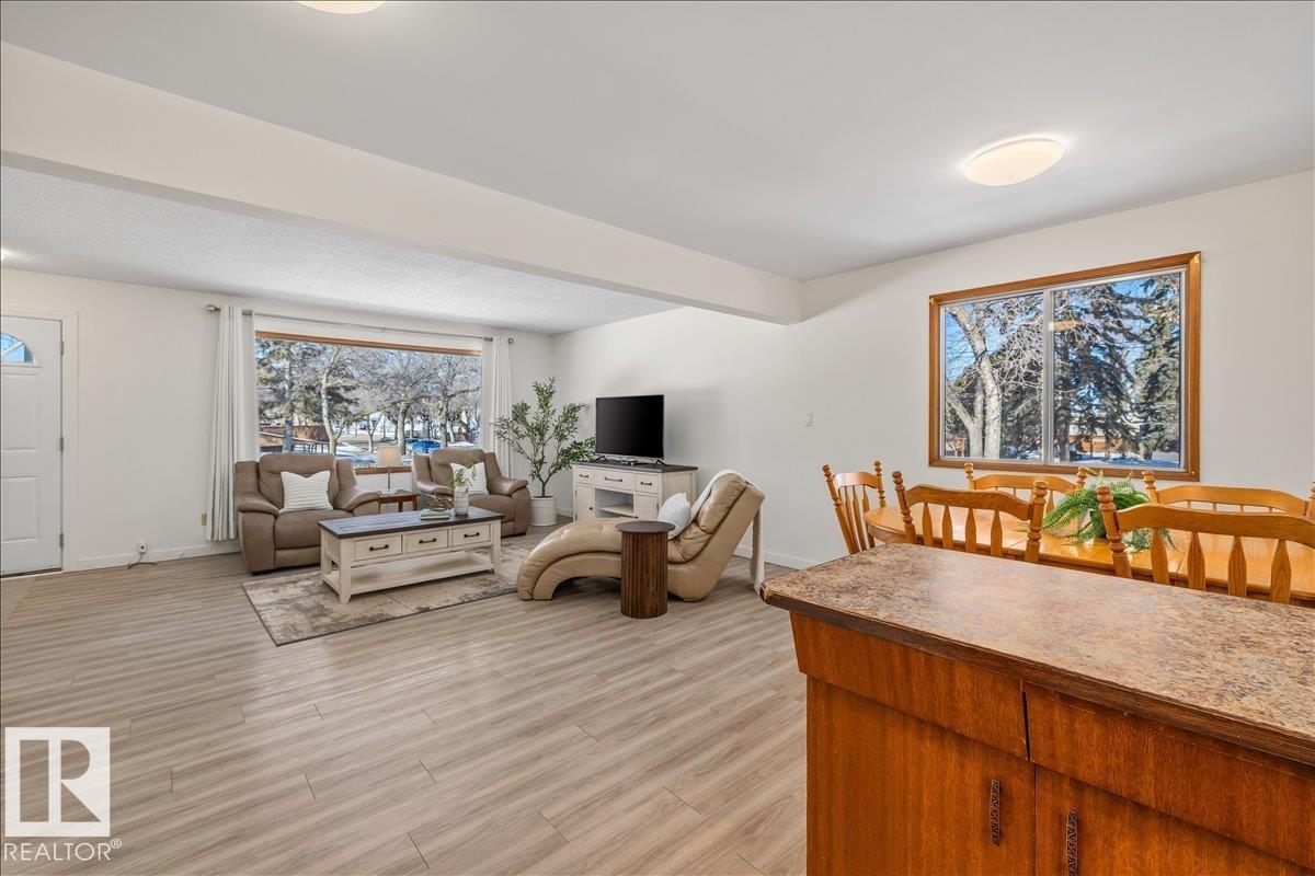 Discover incredible potential in the heart of Old Fort Saskatchewan with this spacious 1,101 sq ft. bungalow. Perfect for savvy investors or first-time buyers seeking a mortgage helper, this 6-bedroom, 3-bathroom home offers a functional layout and extensive updates. The main floor features a massive sun-drenched living room, a dedicated dining area, and a charming U-shaped kitchen that radiates vintage character. You will find three generous bedrooms on the main level, including a primary suite with a 2-piece ensuite. The fully finished basement expands your living space with a large rec room, three additional bedrooms, and a 3-piece bath. Fresh laminate flooring runs throughout the entire home. Exterior highlights include professional concrete walkways, a beautifully landscaped yard, and an oversized single detached garage. Situated just steps from local playgrounds, this move-in-ready home perfectly blends classic charm with modern durability. (id:6769)