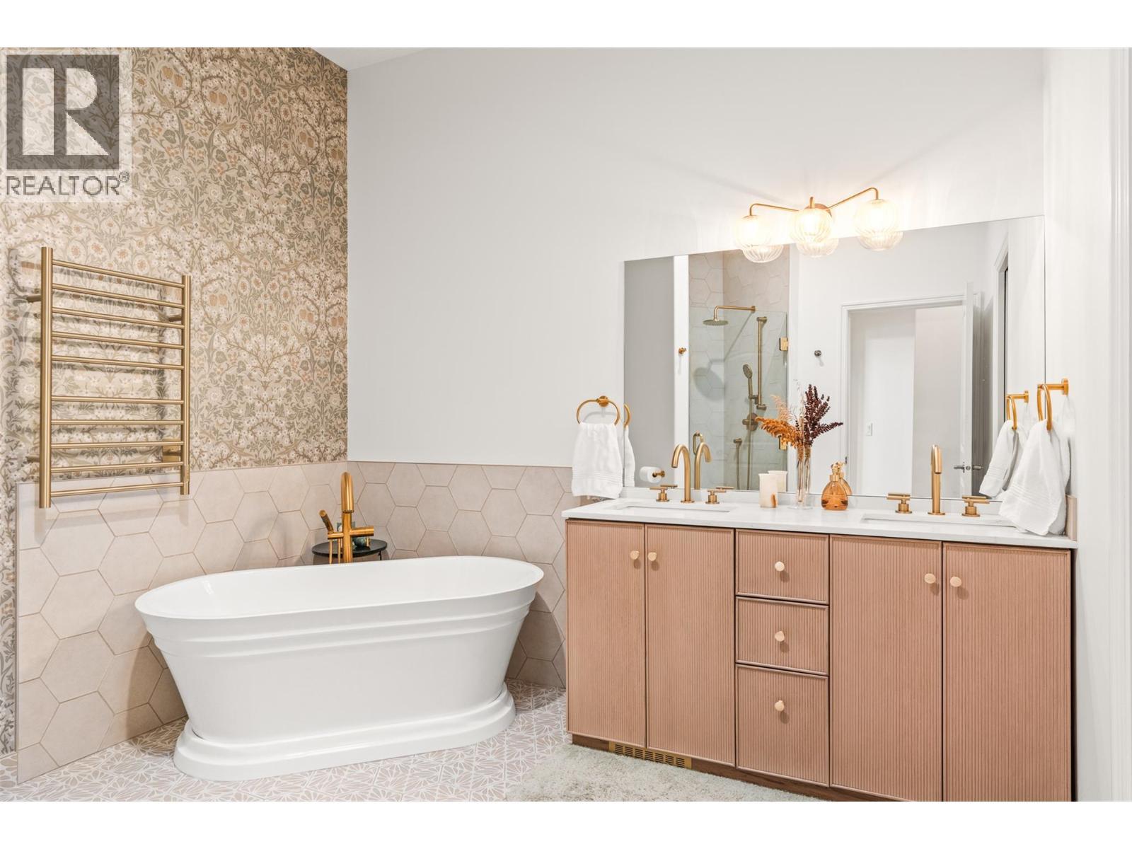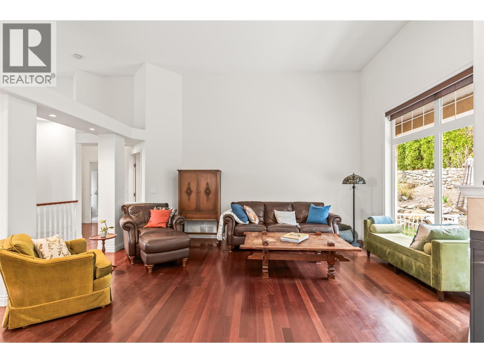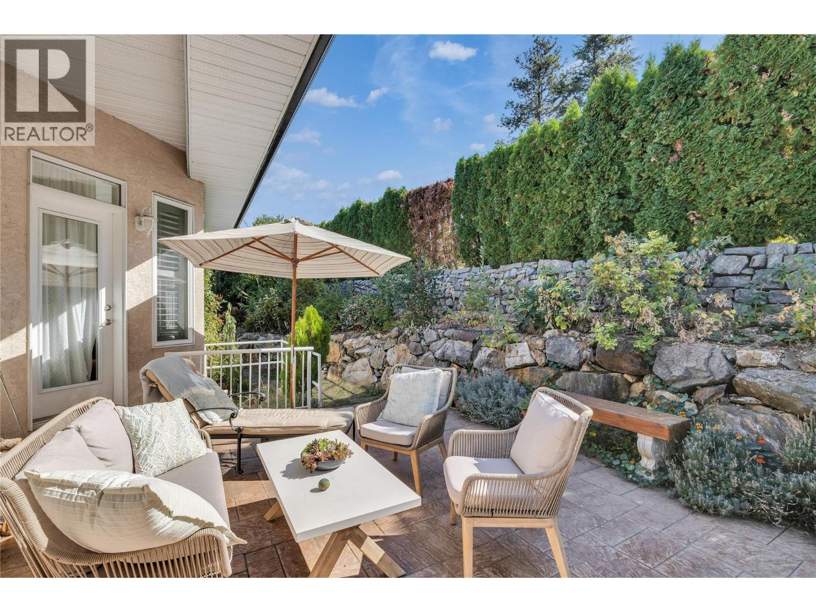 All the benefits of lakefront living, without any of the hassle! Positioned between a provincial park, ALR land, and the turquoise waters of Kalamalka Lake, this superb waterfront community is ideally located for unrivalled lake enjoyment. Enjoy a paved path down to 240 feet of common property frontage, a marina with a private boat slip, a boathouse with a rooftop BBQ area, and 3 waterfront decks, which are among the amenities this in-demand community offers exclusively for residents. Inside the airy and inviting home, an open-concept layout with high ceilings creates a bright, welcoming feel. Tropical hardwood flooring adds warmth to the living room, complemented by a cozy gas fireplace. The kitchen features a large center island with new quartz countertops and updated appliances. The primary suite offers a private retreat with patio access and a beautifully renovated ensuite complete with a soaker tub and walk-in shower. Downstairs, a custom two-bedroom in-law suite features premium cork flooring, an ensuite bathroom with heated tile floors, a separate entrance, and natural wood finishes that evoke a beachy feel. Other upgrades include a new furnace, central A/C, and the garage is pre-wired for EV charging. This lovely property is perfectly located for those seeking an active outdoor lifestyle. Slip out the back gate and explore over 3000 hectares. of wilderness via an extensive trail network or walk down to the private waterfront via the paved pathway to enjoy a swim or a day of boating on one of the most beautiful lakes in the world. (id:6769)