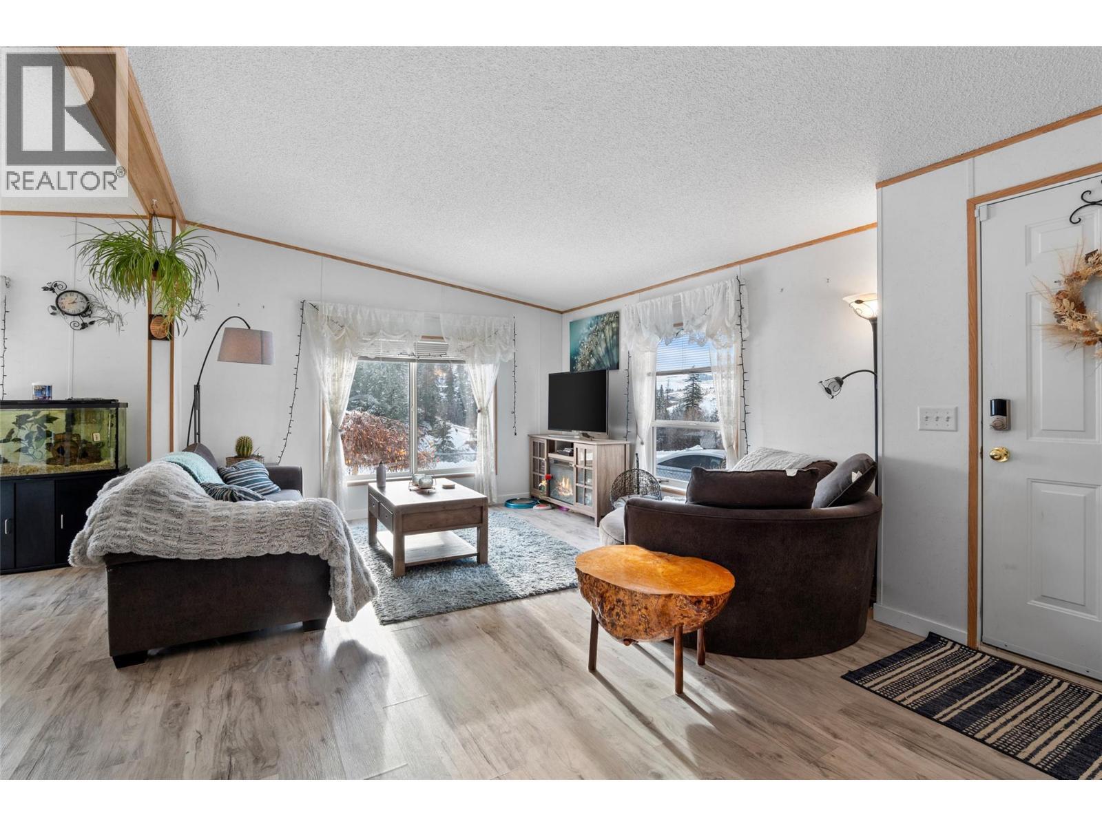 Quick possession available! Clean and well cared for 3 bedroom, 2 bathroom 2002 Modular home offers an open layout with large windows and plenty of bright natural light. The primary bedroom features a walk-in closet and 4-piece ensuite. Updated flooring throughout and has central air conditioning to provide comfort throughout the home. Enjoy a large covered deck for entertaining with beautiful views and a fully fenced yard with mature lilac bushes. Additional features include a covered carport with aluminum canopy, and two storage sheds for storage. 2 pets allowed. No restriction on dog size - dog must be approved by park manager. New pad rent $600/month. (id:6769)
