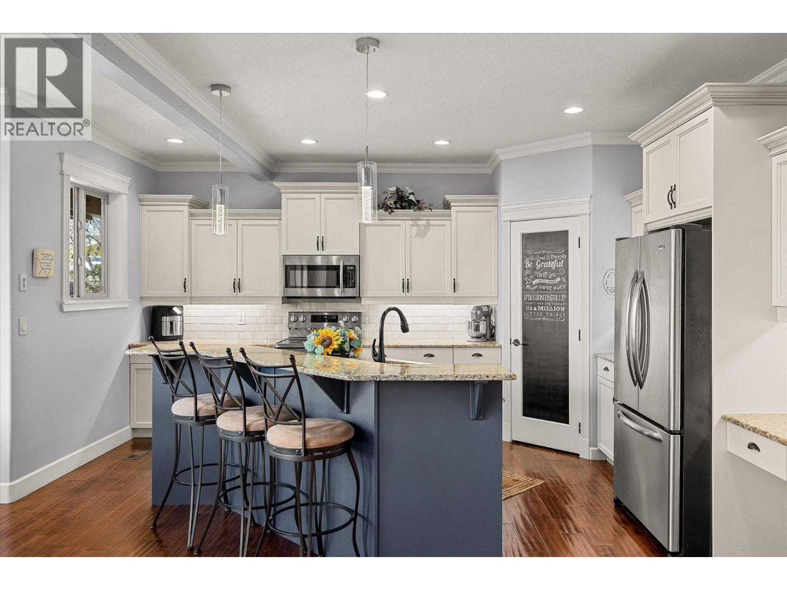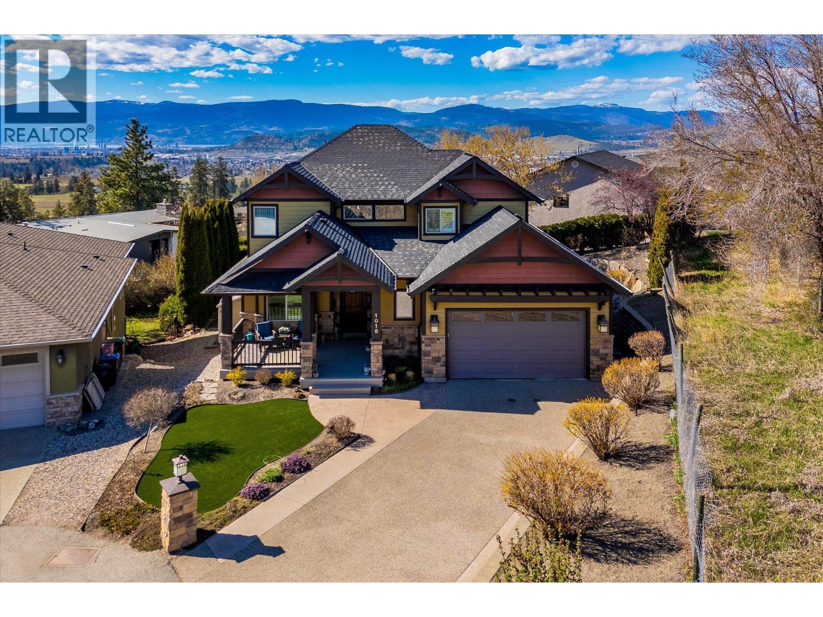 Welcome to this exceptional 4-bedroom + den, 4-bathroom family home, perfectly positioned on a quiet cul-de-sac in the highly sought-after Black Mountain community. Offering a seamless blend of luxury, versatility, and income potential, this property features a beautifully finished 1-bedroom, 1-bathroom in-law suite—ideal for extended family or Airbnb revenue. This home showcases a bright, open-concept layout filled with natural light and big lake views. The inviting living room is anchored by a cozy gas fireplace, while the well-appointed kitchen flows effortlessly into the dining and living areas—perfect for hosting family and friends. The spacious primary suite is a true retreat, complete with a walk-in closet and a luxurious ensuite. Additional bedrooms and a versatile den offer flexibility for growing families. Curb appeal shines with low-maintenance synthetic turf in the front yard. The oversized garage provides ample space for vehicles, tools, and all your Okanagan lifestyle toys. Step out back to your private oasis—featuring a large covered deck, ideal for morning coffee or evening sunsets. The tiered, thoughtfully landscaped backyard offers space to unwind and entertain, and is hot tub ready for year-round enjoyment. Located in a peaceful, family-friendly neighbourhood close to schools, parks, and endless outdoor recreation, this home truly checks all the boxes. Book your private showing today. (id:6769)