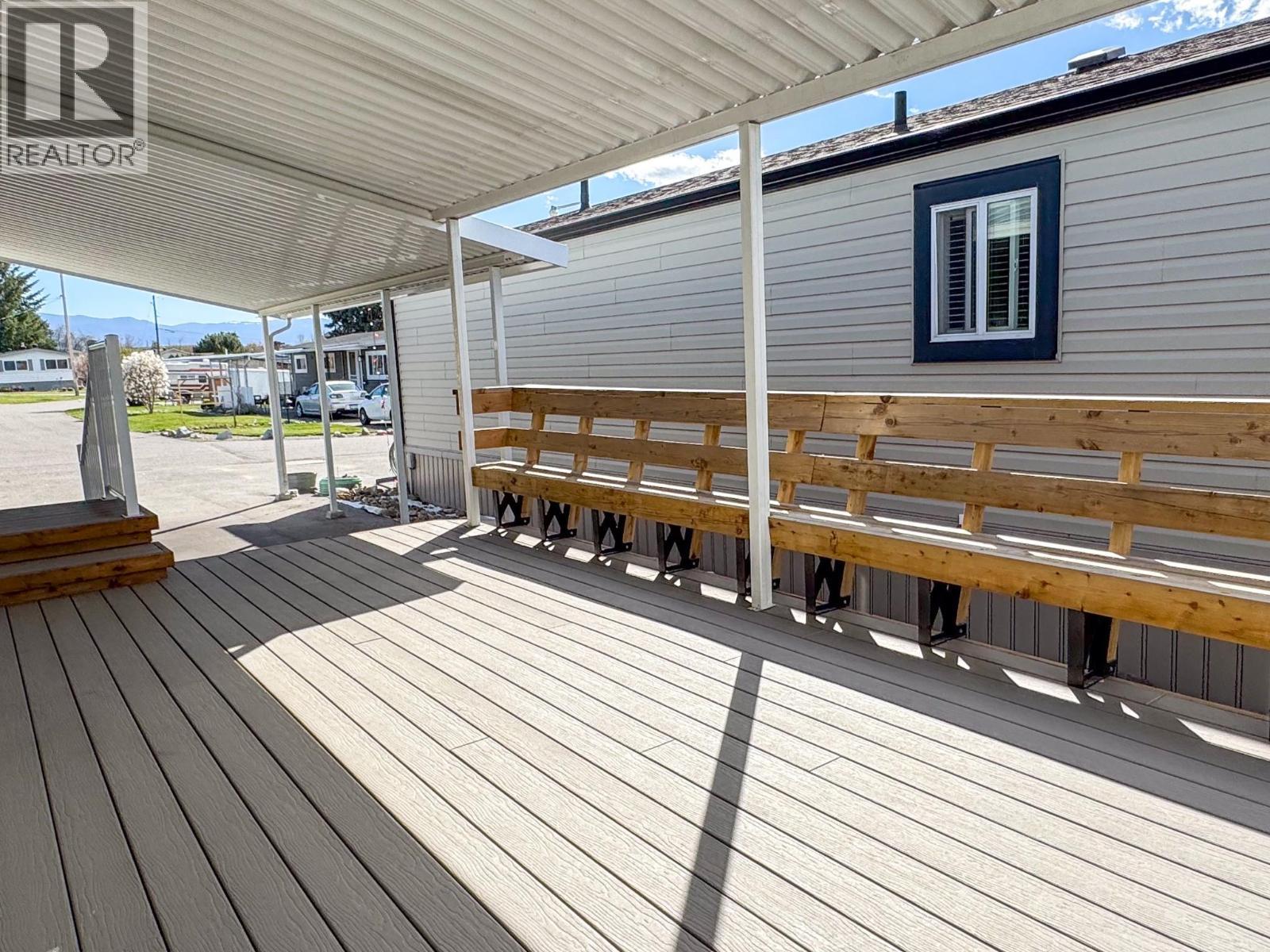 Beautiful 2020 built, like-new manufactured home that shows exceptionally well, with numerous upgrades throughout! This oversized kitchen is a standout, featuring a chef’s gas range, soft-close cabinetry, and plenty of prep space. The spacious primary bedroom offers serene views overlooking the apple orchards, while the ensuite boasts a luxurious jacuzzi tub—an upgrade valued at $20,000. Step outside to enjoy the fully composite deck, complete with a seamless covered carport/porch, perfect for relaxing or entertaining year-round. This is one of SRI’s most sought-after floorplans for good reason, offering an oversized single-wide design (nearly 16 feet wide) that feels open and spacious. Located in Ranch Park, a highly desirable 55+ community with an unbeatable location. Residents enjoy a welcoming and socially active environment, including frequent gatherings at the community centre. Book your showing today! (id:6769)
