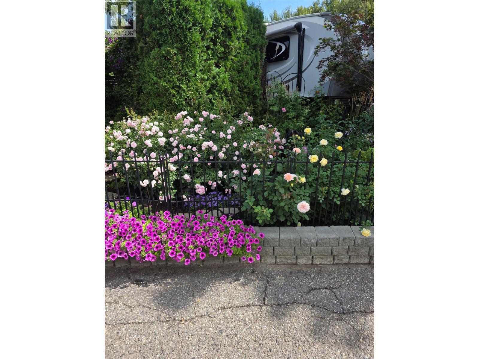 Tucked away on a quiet street in the sought-after community of Holiday Park Resort, this charming park model site offers an exceptional opportunity to enjoy resort-style living with privacy and natural beauty. With a lease extending to 2046 and no Property Transfer Tax, this property is a fantastic place to live full time, an investment or seasonal retreat. The lot features a very private yard bordered by a beautiful aluminum fence with a convenient gate in the back living area, creating a secure and peaceful outdoor oasis. Enjoy an abundance of natural sunlight throughout the day, highlighting the stunning gardens filled with amazing flowers and thoughtfully designed outdoor living spaces—perfect for relaxing or entertaining. A handy shed provides additional storage for tools and recreational gear. One of the standout features is the direct gated access to the walkway, making it ideal for pet owners or those who love daily strolls, with seamless connectivity to the scenic Okanagan Rail Trail. As part of Holiday Park Resort, residents enjoy an impressive array of amenities, including pools, hot tubs, a fully equipped gym, golf course, pickleball courts, woodworking shop, and on-site dining at Thyme at Ellison. The 2026 maintenance fee is $5,765. Conveniently located near Kelowna International Airport, this property combines tranquility with accessibility. Don’t miss your chance to own a slice of paradise in one of Kelowna’s most vibrant resort communities. (id:6769)