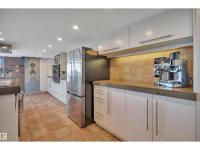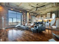 You won’t believe the WOW FACTOR in this NY-style urban penthouse loft in Edmonton’s trendy Downtown Warehouse District. One of only four penthouses, this stunning home offers over 2,000 sq ft of open-concept living with soaring 13’ ceilings, floor-to-ceiling windows, and striking mirrored accents. The main level features a spacious living area with exposed brick and concrete, a dining space, dream kitchen, den, 4-piece bath, and a laundry room with storage. A dramatic curved copper staircase leads to the mezzanine, complete with two generous bedrooms, a 5-piece ensuite, and a two-person sauna. Recent upgrades include Hunter Douglas remote-controlled blinds, statement lighting, new stove, washer & dryer. This 2 bed, 2 bath unit includes three underground parking stalls (1 single, 1 tandem) and a storage unit. Steps to the Ice District, restaurants, cafes, shopping, dog park, transit, and Grant MacEwan University. (id:6769)