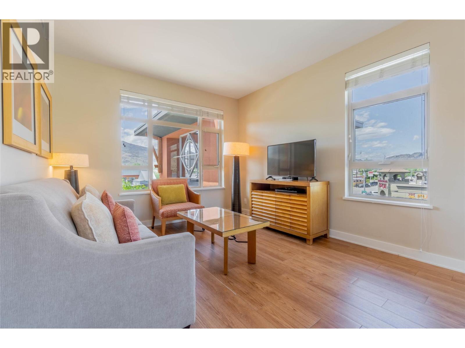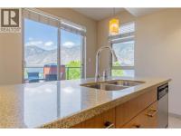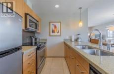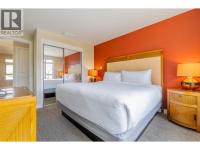 TOP FLOOR - LAKE VIEW. This 1 bedroom top floor unit has an oversized patio that provides views of the lake, mountain and town. Fully furnished, modern, open concept with a full kitchen, dining room, living room with a pull out queen size couch, and king size bed in the master bedroom and in-suite laundry. Four piece bath. 2 TV's outdoor dining for 4. Located in the heart of Osoyoos, you can walk everywhere. Or take advantage of the dining options at 15 Park Bistro or Boston Pizza - located on site. Strata fees include heat, hydro, management and insurance. Amenities include saltwater pool, with waterslide, Hot tub, spa, fitness centre and direct access to the beach and walk path. (id:6769)