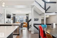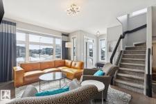 BETTER THAN NEW! FORMER SHOWHOME luxury triplex built by Kimberley Homes. This 1838 sqft END UNIT offers 3 bed/2.5 baths and shows like new! The striking open-concept main floor features gleaming hardwood throughout, a lavish U-shaped kitchen w/premium cabinetry, quartz counters, and high-end s.s. appliances. Dining nook w/soaring 18' ceilings, large living area w/stunning tile fireplace, and numerous of windows that allow for an abundance of natural light. Upstairs you will find the primary suite w/walk-in closet and spa-like 5-pc ensuite, two additional bedrooms, bonus area, and additional 4-pc bath. Outside you will enjoy the private deck w/pergola, double attached garage and low maintenance landscaping. Prime Salisbury Village location, walkable to schools, shopping and all amenities. Affordable luxury in a great location! (id:6769)