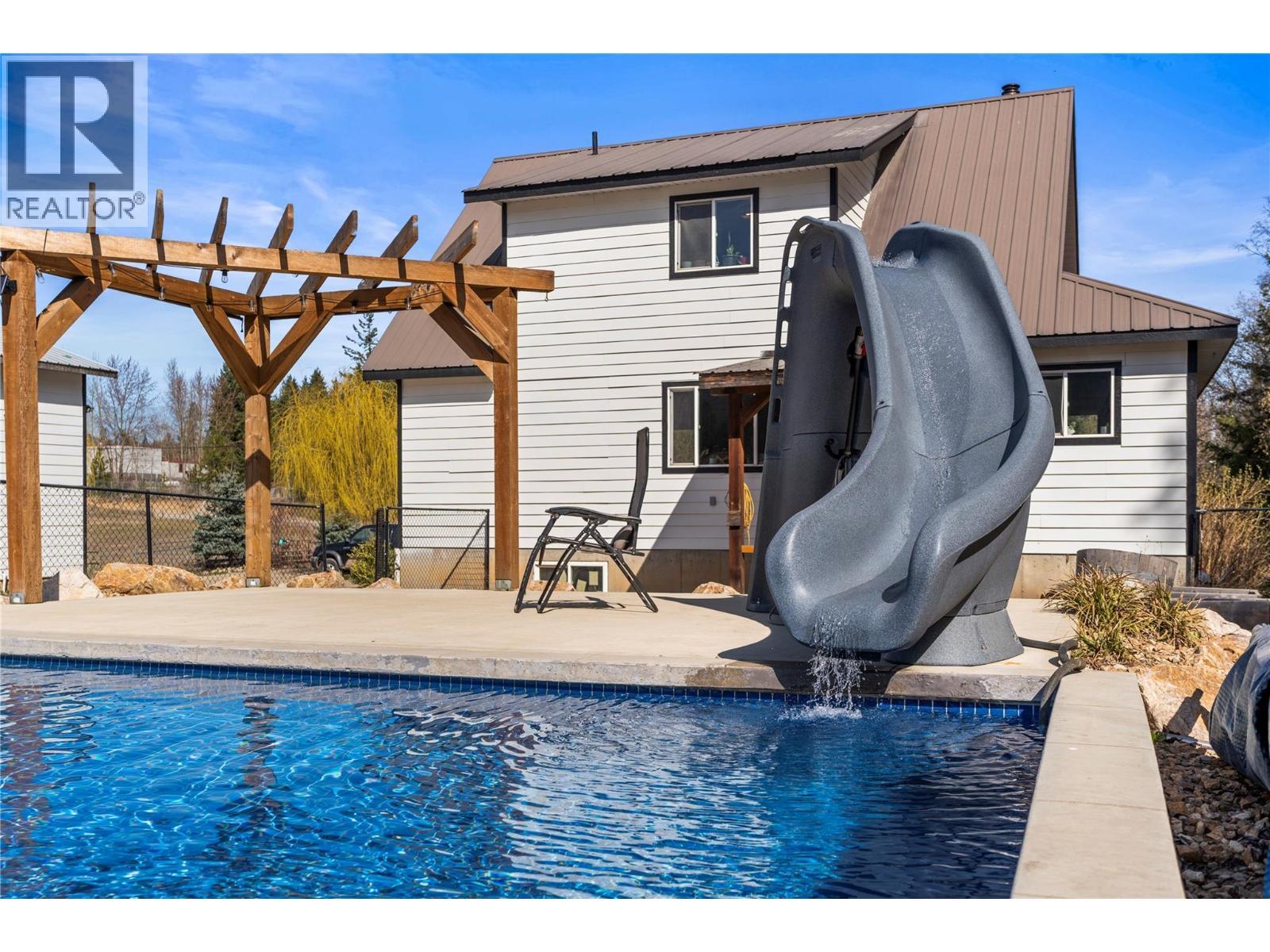 Positioned on 1.07 flat acres, this Salmon Arm property blends everyday comfort with exceptional versatility. Surrounded by open skies and mountain views, it offers the kind of space that invites both relaxation and possibility. Spend long summer days by the full concrete in-ground pool, complete with a waterslide. Host gatherings on the expansive deck, or simply enjoy the privacy of your own acreage. Inside, the home is bright and welcoming, with a functional open layout designed for connection. The kitchen flows easily into the living and dining areas, anchored by a cozy wood-burning fireplace. With four bedrooms and multiple living spaces, there’s room for families, guests, and the flexibility to suit your lifestyle. Outside, the property continues to impress with a 32' x 24' insulated shop and an attached 32' x 12' covered storage area-perfect for equipment, toys, or workspace needs. Light industrial zoning adds incredible flexibility for home-based business or future plans, with ample room for RVs and more. Bringing together space, versatility, and opportunity in a truly unique offering. (id:6769)