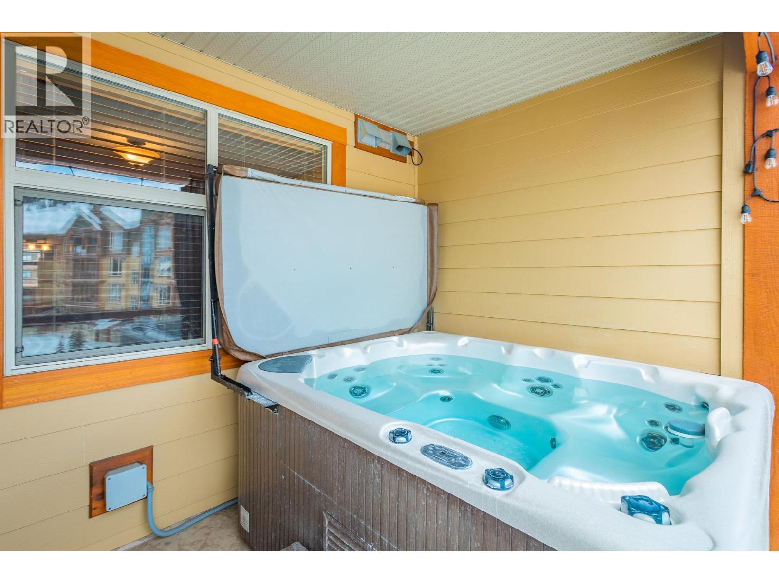 Welcome to your very own TOP FLOOR alpine retreat at Big White Ski Resort with your own PRIVATE HOT TUB! This 2 bedroom, 2 bathroom condo blends chalet charm with investor-friendly benefits, the Aspens offers true ski in/out access and sweeping mountain views that create a serene year round backdrop. The bright and welcoming open kitchen with excellent storage has granite counters and a sit up bar for entertaining. This leads into the dining and spacious living room anchored by a stone faced gas fireplace with built in storage and a large window that pours in natural light. A private balcony off the living room features a dedicated hot tub, a true highlight and perfect for apres ski soaks and Summer nights under the stars that extend your living space outdoors. The generously sized primary and second bedroom, sit on opposite ends of the unit for privacy, and the ensuite offers a glass door shower and ample storage, while the overall layout keeps entertaining and everyday living effortless. There is in-suite stacked laundry and a dedicated ski locker that keeps gear ready for the next run, with easy access to village restaurants shopping & The Market. There is NO GST on this home, short term rentals are permitted and Big White is exempt from foreign buyer and spec taxes, offering flexibility and peace of mind. Enjoy a lifestyle retreat that also performs as an income ready investment for ski enthusiasts and investors. (id:6769)