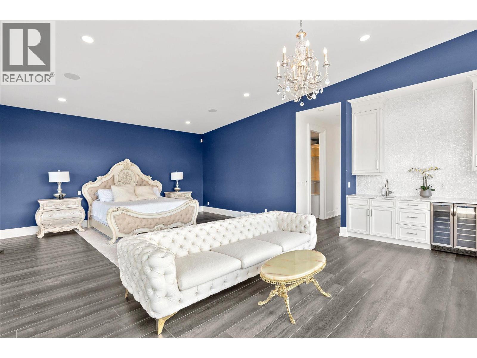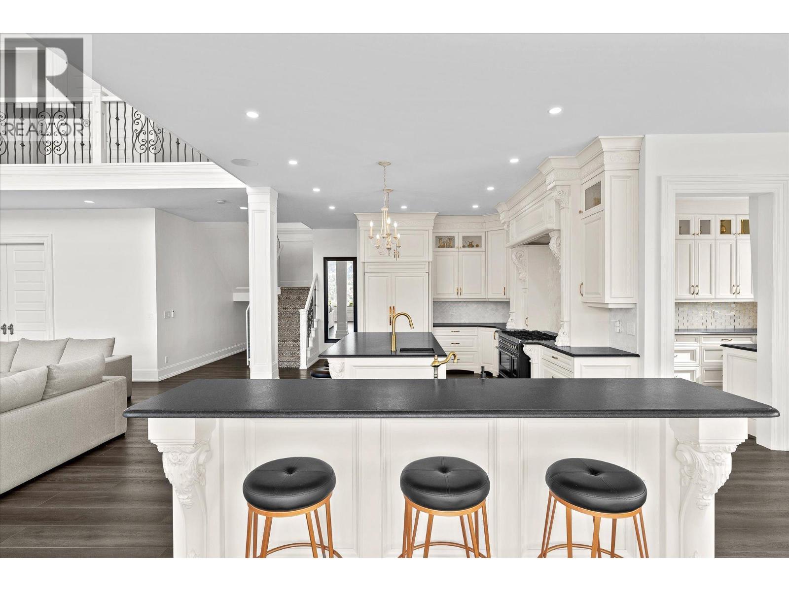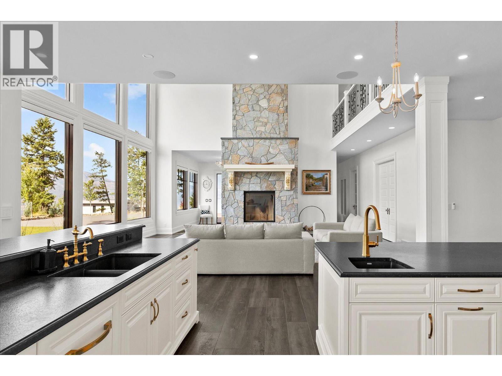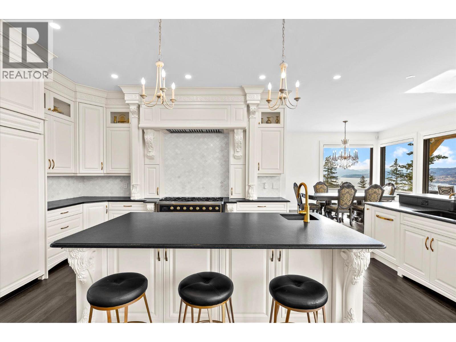 Experience Okanagan living on this remarkable 2.89 acre, gated estate in McKinley Landing. Built in 2018, this custom masterpiece offers breathtaking, unobstructed panoramic views of Okanagan Lake and spans nearly 5,000 square feet with six bedrooms and five bathrooms. At the heart of the home, a dramatic double height great room showcases floor to ceiling windows and a grand stone fireplace. The elevated kitchen boasts sleek custom cabinetry, premium integrated appliances, two islands and separate prep kitchen and is open to the dining room. An office, powder room, and theatre room finish off this level creating thoughtful spaces for relaxing and entertaining. The upper level features a sprawling primary suite complete with a private patio, a coffee bar, a spa like ensuite where a copper clawfoot tub overlooks the lake. The luxurious walk in closet and dressing room Is a dream, with custom cabinetry and centre island. The upper levels features three additional bedrooms and a sitting room. Step outside to enjoy sun soaked days by the pool and hot tub, or unwind in the sauna while taking in the sweeping lake views. The meticulously landscaped grounds feature a timber framed pergola and several lounging areas, offering exceptional privacy and tranquility. Additional highlights include high end finishes throughout, an oversized garage, and close proximity to Kelowna’s renowned wineries and beaches. This is a unique opportunity to own a gated estate in one of Kelowna’s most sought after settings. (id:6769)