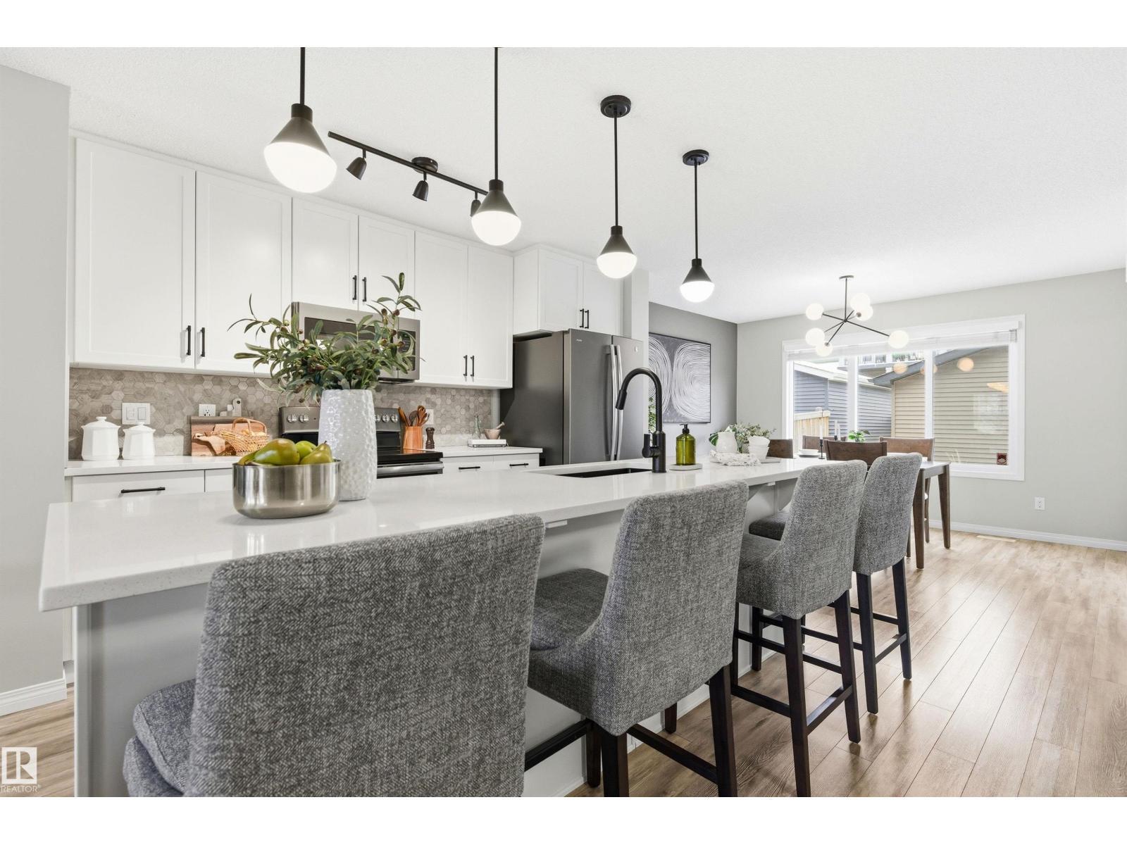 A rare opportunity to own a beautifully maintained home located on a quiet family friendly cul-de-sac. The main floor features a bright open-concept layout with a sunny south facing living room, spacious kitchen, central island, and seamless flow into the dining area, perfect for everyday living and entertaining. A SPACIOUS BACK MUDROOM and main floor laundry add convenience. Upstairs offers three well-sized bedrooms including a generous primary retreat with massive walk-in closet and private ensuite. The unspoiled basement provides future potential. Enjoy access to The Orchards Residents Association with skating rink, spray park, playgrounds, tennis courts, and year-round programming. Features include a new electric fireplace and CENTRAL AIR CONDITIONING, FRESH neutral paint, Durable Laminate Flooring, Private Backyard (just one neighbour) and LUSH Landscaping! (id:6769)