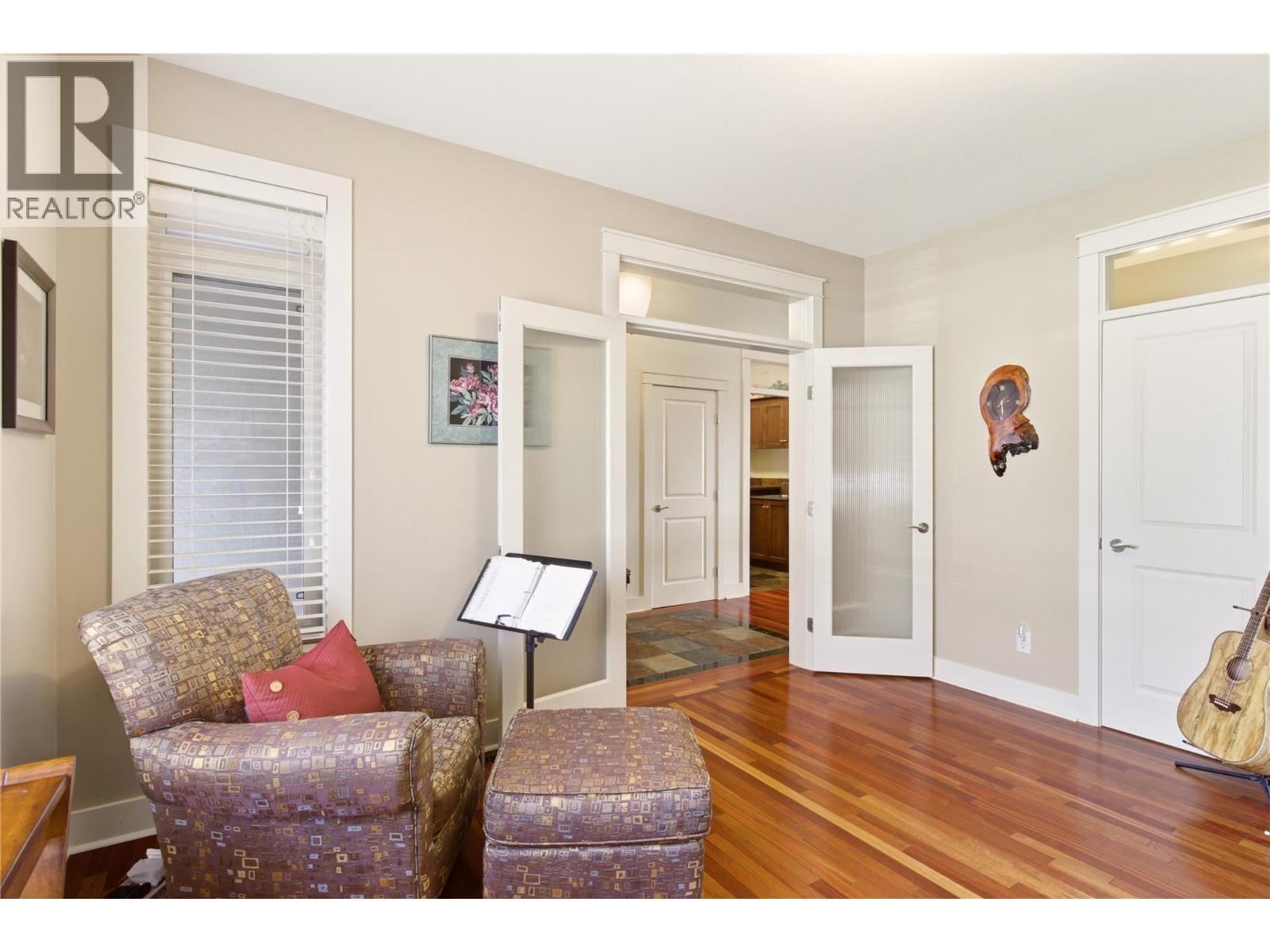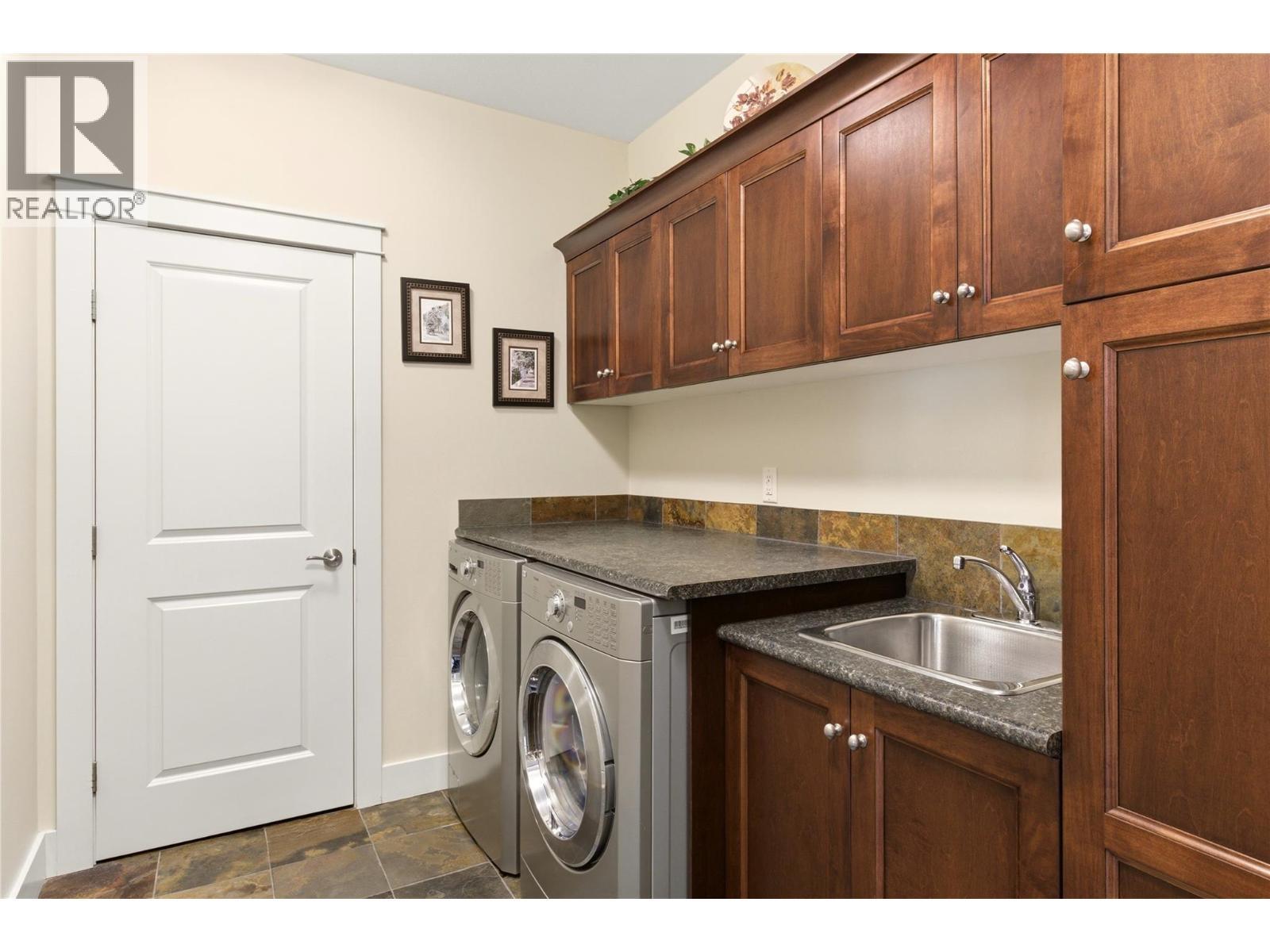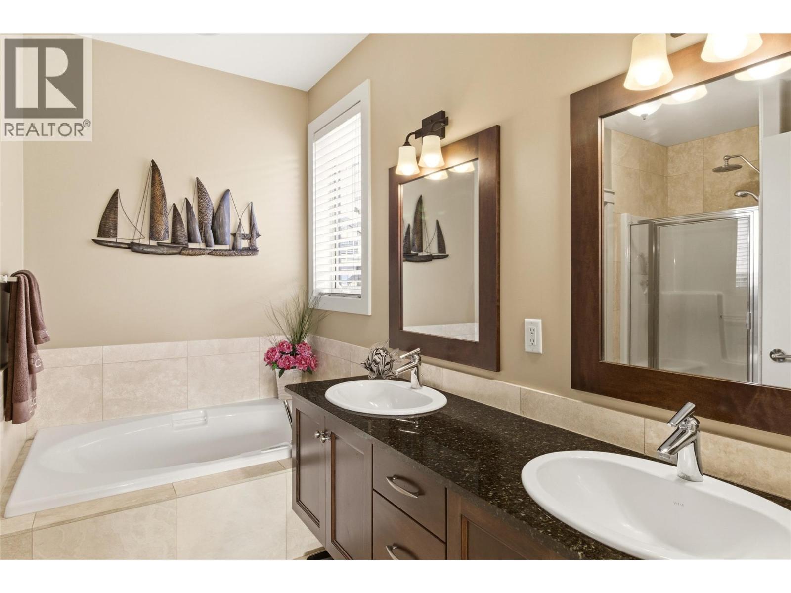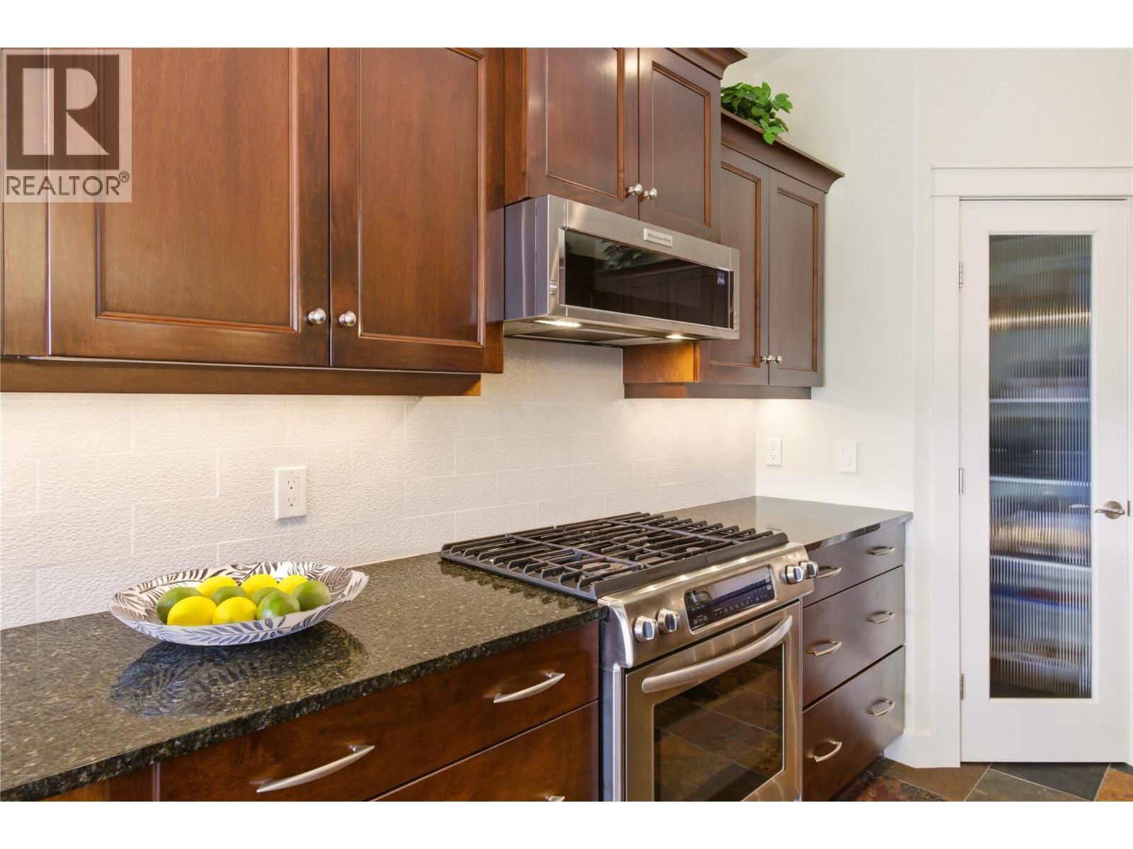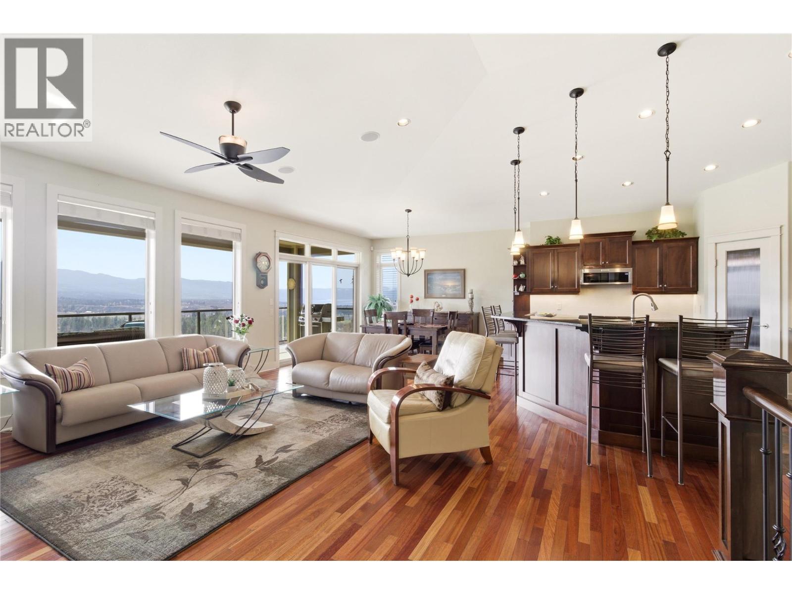 Set in the highly desirable Black Mountain community, this beautifully maintained rancher with basement offers over 3,000 sq ft of thoughtfully designed living space with 4 bedrooms and 3 bathrooms. Enjoy breathtaking mountain, valley, and lake views from a home that blends comfort and functionality. The main level features hardwood flooring, soaring ceilings, and a bright open-concept layout ideal for one-level living. The kitchen includes granite countertops, stainless steel appliances, and a large island with seating for six—perfect for entertaining. The inviting living room centers around a stone gas fireplace and opens onto a spacious deck with built-in ceiling speakers. The primary bedroom includes a full ensuite and integrated sound system, while the second bedroom has direct access to the main floor bathroom for added convenience. A combined laundry and mudroom off the garage adds everyday practicality. Downstairs, the fully finished lower level offers a large recreation room with projector, movie screen, and built-in surround sound—perfect for movie nights. Two additional bedrooms, a full bathroom, and ample storage complete the space. Outdoor areas are designed for easy living, featuring a lower deck suited for a hot tub, full irrigation, and a low-maintenance front yard with artificial turf. With quick access to Big White and nearby amenities, this property is ideal for those seeking both recreation and everyday convenience. (id:6769)