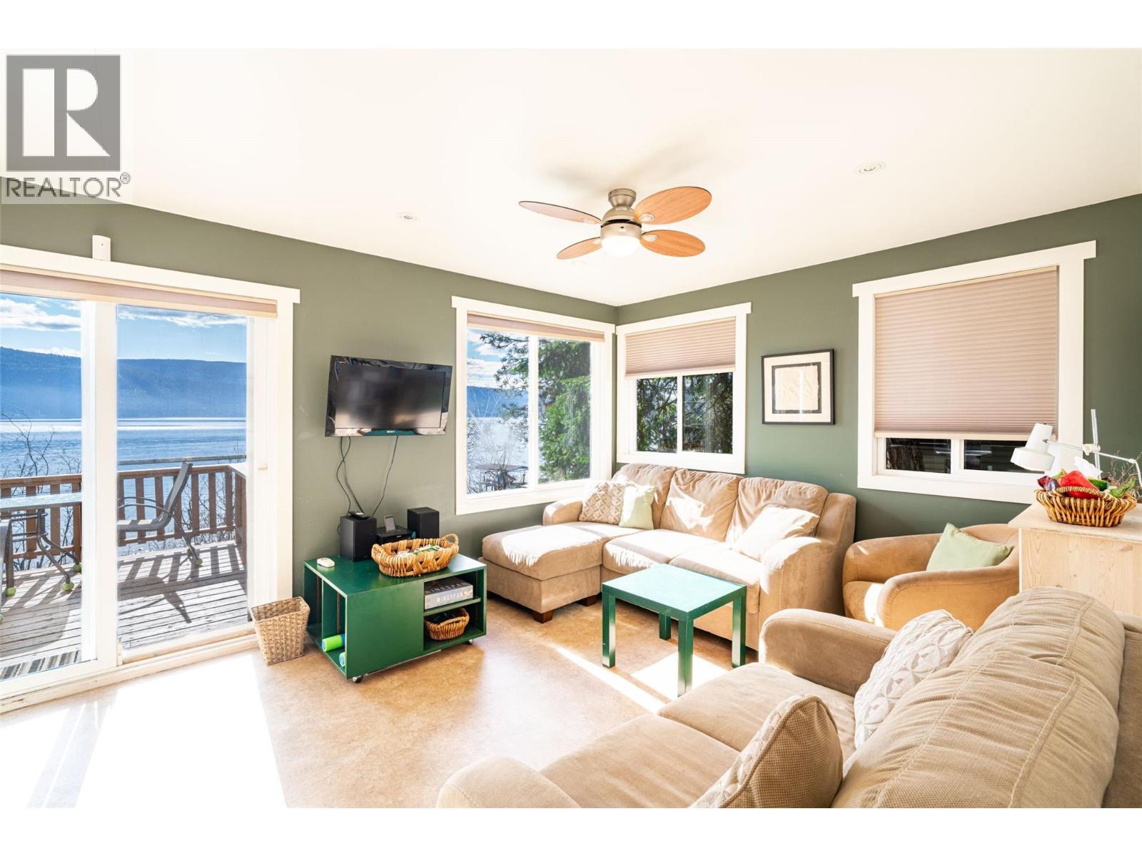 LAKESHORE LIVING! Experience true Okanagan lakefront living with this charming, renovated 2-bedroom cabin in sought-after Ewings Landing estates. Bright and inviting, this home is filled with natural light thanks to an abundance of windows, creating a seamless connection between indoor comfort and the stunning lake views beyond. Thoughtfully updated in 2009, with additional improvements including vinyl flooring, insulation, drywall, and a newer roof (2014), this property offers a move-in ready retreat with lasting value. Step outside to a spacious deck overlooking the water—perfect for entertaining or unwinding after a day on the lake. With approximately 53 feet of shoreline, direct lake access, and a shared dock (with application pending to replace existing dock w a private dock subject to approvals), this property is built for summer living. Situated within a unique lakeshore community and access to an additional private 160-acres; great for hiking, biking or quading. This property offers a peaceful escape just 30 minutes to Vernon and 35 minutes to Kelowna. Ownership structure provides additional advantages, including no Property Transfer Tax. With parking for two and future potential to expand or rebuild, this is an exceptional opportunity for personal enjoyment & Lakeside living at its best. Call Today for your personal private showing. Please note: Conventional financing not available. (id:6769)
