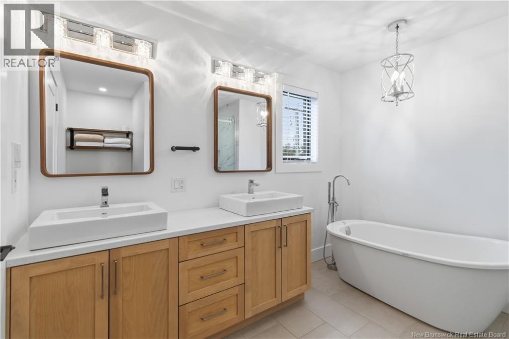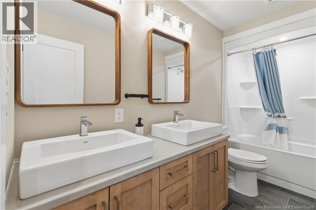 TURN-KEY / FULLY FINISHED / MODERN / LARGE GARAGE / 9' CEILINGS / DREAM KITCHEN. Welcome to 3 Heros Crt, a beautifully finished 2022-built two-storey home tucked away on a quiet court in sought-after Moncton North. Offering nearly 3,000 sq ft of living space, this home combines modern style, quality craftsmanship, and a prime location. The main level features 9-foot ceilings, a bright open-concept layout, a dedicated office, and a stunning kitchen with a massive quartz island, high-end appliances, and contemporary finishes. A spacious mudroom and large laundry area add everyday convenience. Upstairs offers three generous bedrooms, including a primary suite with walk-in closet and ensuite with soaker tub, double vanity, and custom shower. The fully finished basement adds a large family room, fourth bedroom, and full bath. Additional highlights include central air conditioning, a double garage, and a fully fenced backyard with window coverings included. Ideally located just minutes from the highway, YMCA, GoodLife Fitness, schools, and amenities. Turn-key, stylish, and perfectly located. (id:6769)