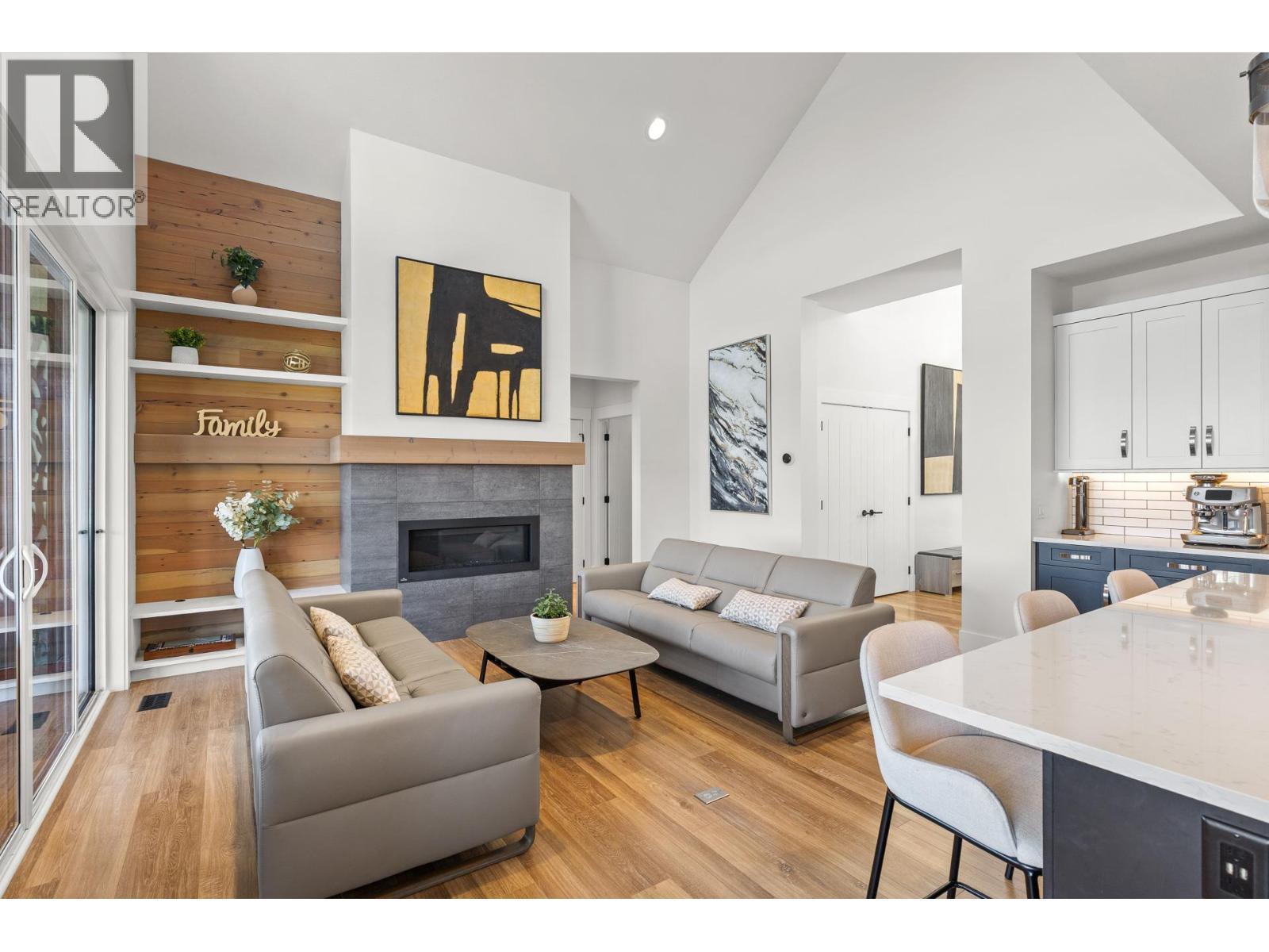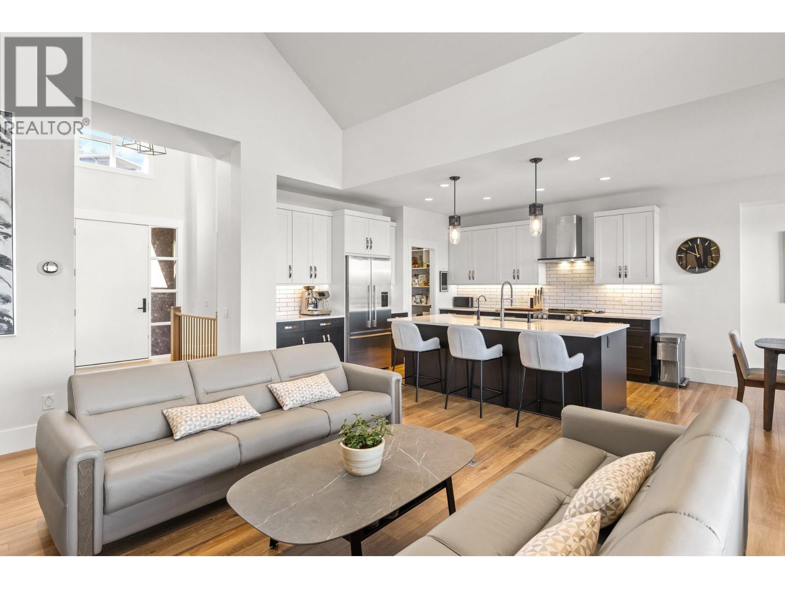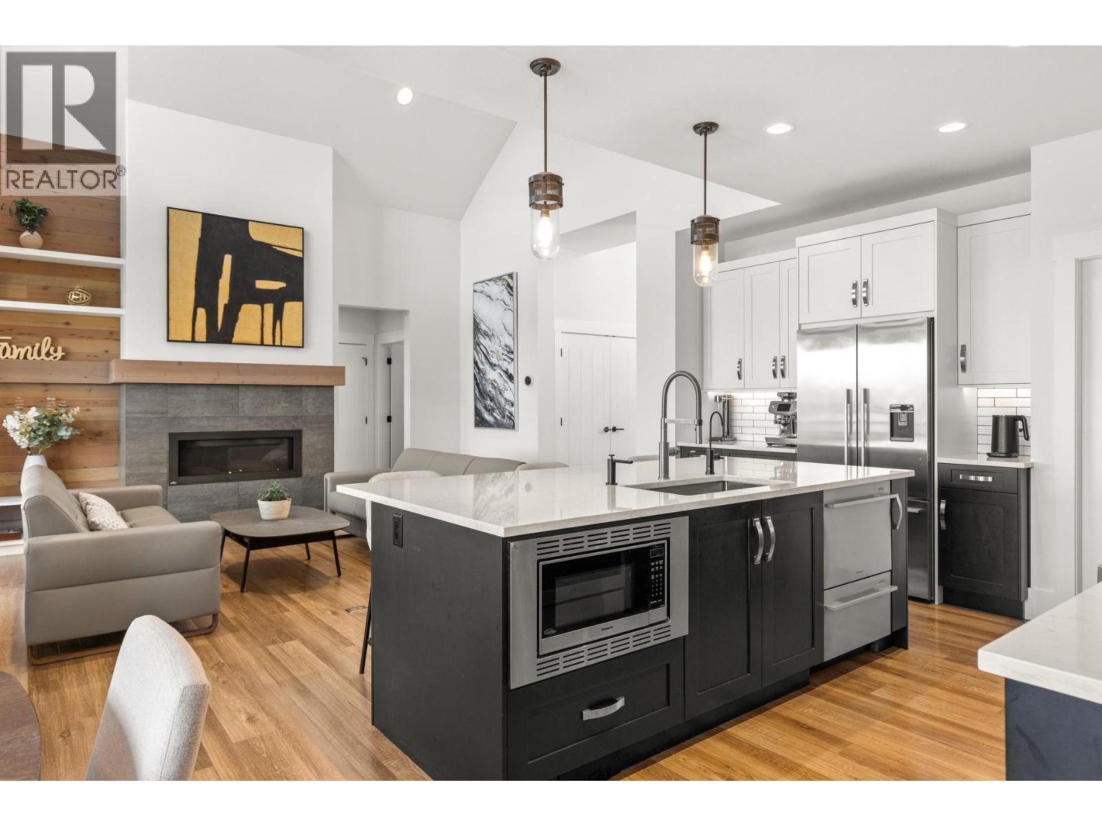 Experience the Predator Ridge lifestyle in this 2,605 sq.ft detached home, uniquely exempt from Speculation and Vacancy Tax. The grand entryway and living room impress with soaring vaulted ceilings, custom built-in shelving, and a cozy gas fireplace. Culinary enthusiasts will love the kitchen’s walk-in pantry and premium appliance package, including a Fisher & Paykel fridge and dishwasher alongside a new LG induction range. Transition seamlessly to the covered northern-exposure patio, dual gas connections for BBQ + fire table and breathtaking views of the Monashee Mountains and Golf Course. The main floor is designed for longevity, hosting a primary suite w/walk-in closet w/automated lighting and a 5-piece ensuite with heated flooring. Second bedroom/ office on the main floor. Functionality meets style in the laundry area, boasting updated tile, built-in cabinetry, and a new LG washer/dryer. Downstairs, the walk-out basement features two bedrooms and a movie theatre, professionally soundproofed w/acoustic panels + extra insulation. Automated shades lead you to a private lower lawn, already wired for a hot tub. A mechanically superior home, featuring a high-efficiency furnace, HRV, humidifier, active radon mitigation system, water softener + reverse osmosis, and a Nest thermostat. The epoxy-floored garage is equipped with EV charger and ample storage. With landscaping maintained by the resort, you're free to enjoy the nearby world-class amenities.*some photos digitally edited* (id:6769)
