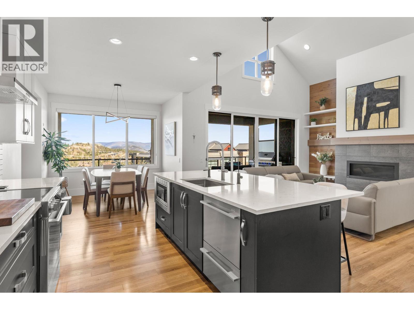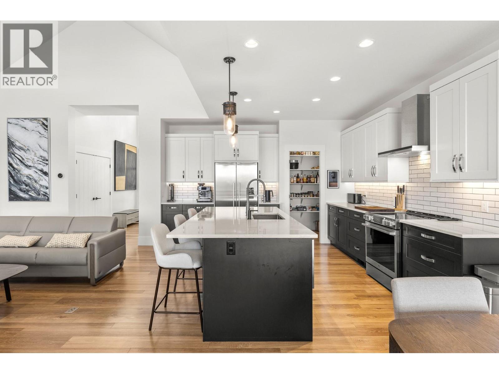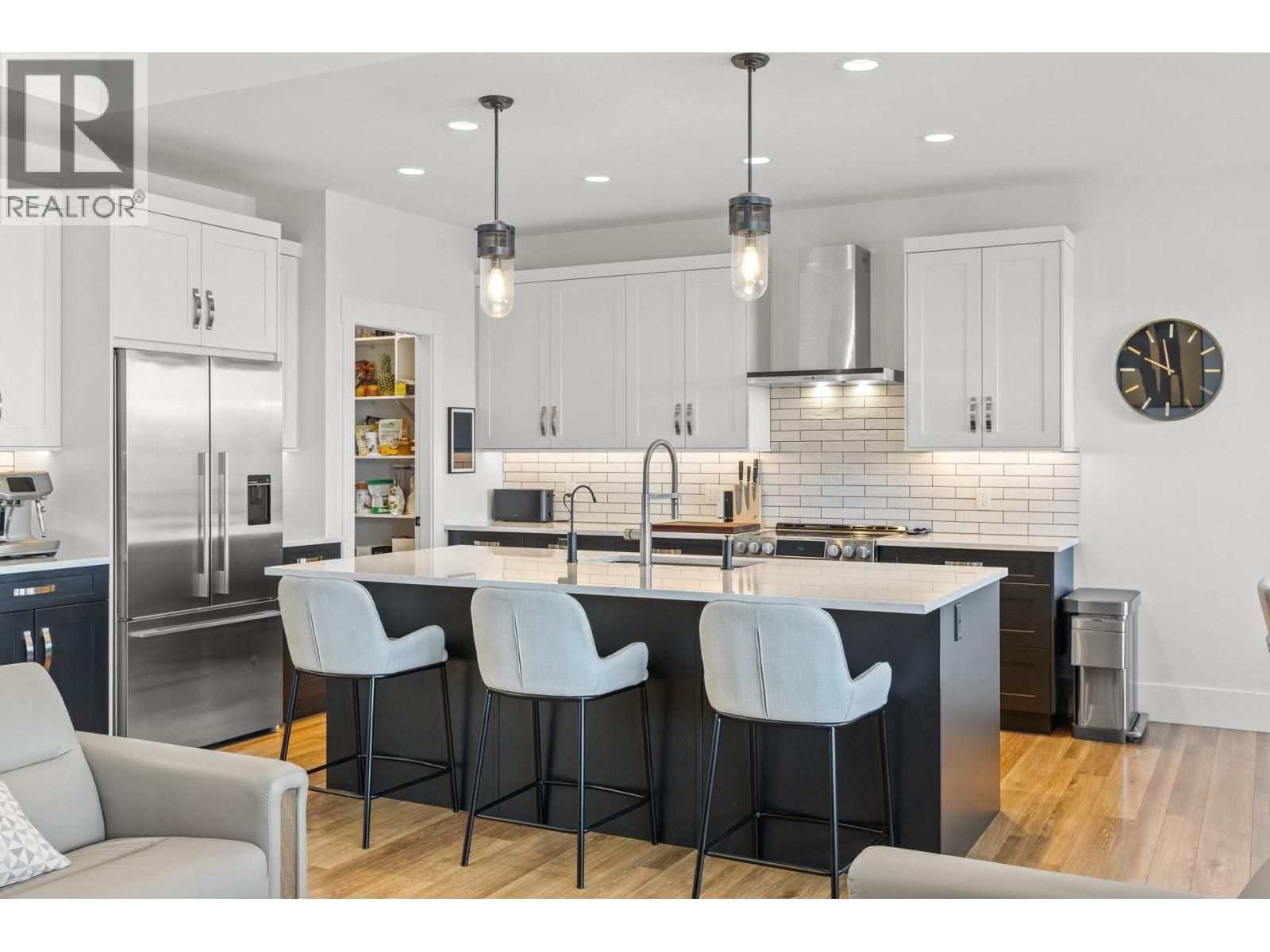 Experience the Predator Ridge lifestyle in this 2,605 sq.ft detached home, uniquely exempt from Speculation and Vacancy Tax. The grand entryway and living room impress with soaring vaulted ceilings, custom built-in shelving, and a cozy gas fireplace. Culinary enthusiasts will love the kitchen’s walk-in pantry and premium appliance package, including a Fisher & Paykel fridge and dishwasher alongside a new LG induction range. Transition seamlessly to the covered northern-exposure patio, dual gas connections for BBQ + fire table and breathtaking views of the Monashee Mountains and Golf Course. The main floor is designed for longevity, hosting a primary suite w/walk-in closet w/automated lighting and a 5-piece ensuite with heated flooring. Second bedroom/ office on the main floor. Functionality meets style in the laundry area, boasting updated tile, built-in cabinetry, and a new LG washer/dryer. Downstairs, the walk-out basement features two bedrooms and a movie theatre, professionally soundproofed w/acoustic panels + extra insulation. Automated shades lead you to a private lower lawn, already wired for a hot tub. A mechanically superior home, featuring a high-efficiency furnace, HRV, humidifier, active radon mitigation system, water softener + reverse osmosis, and a Nest thermostat. The epoxy-floored garage is equipped with EV charger and ample storage. With landscaping maintained by the resort, you're free to enjoy the nearby world-class amenities.*some photos digitally edited* (id:6769)