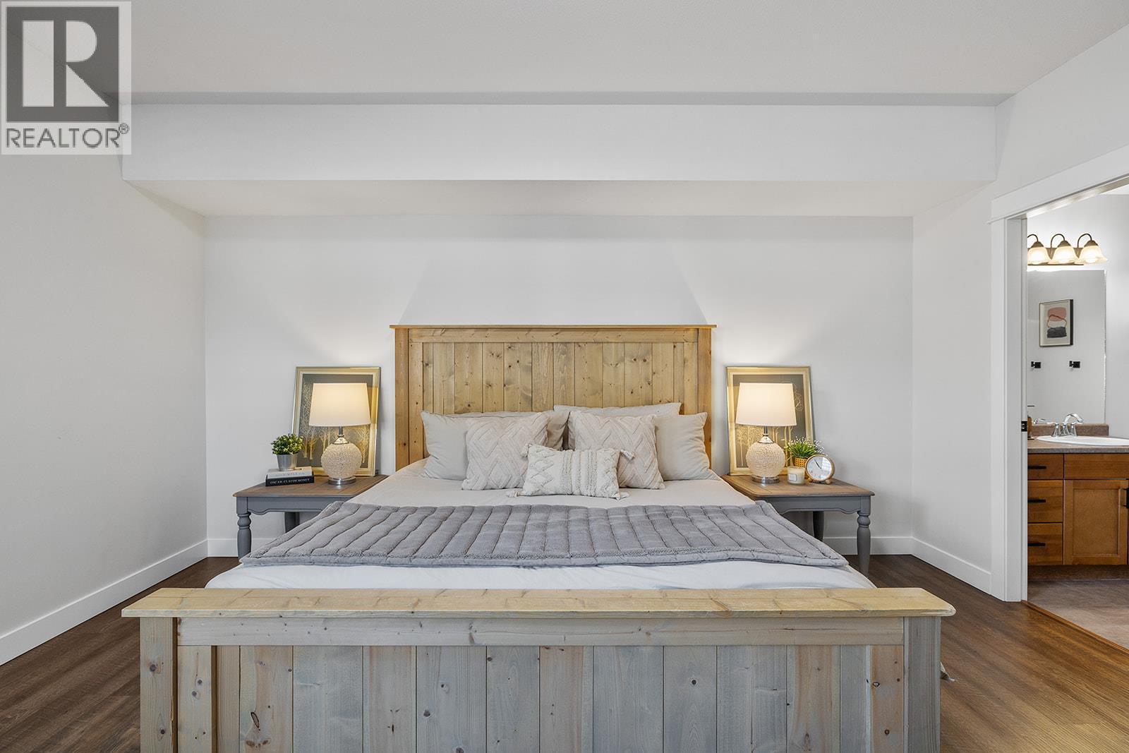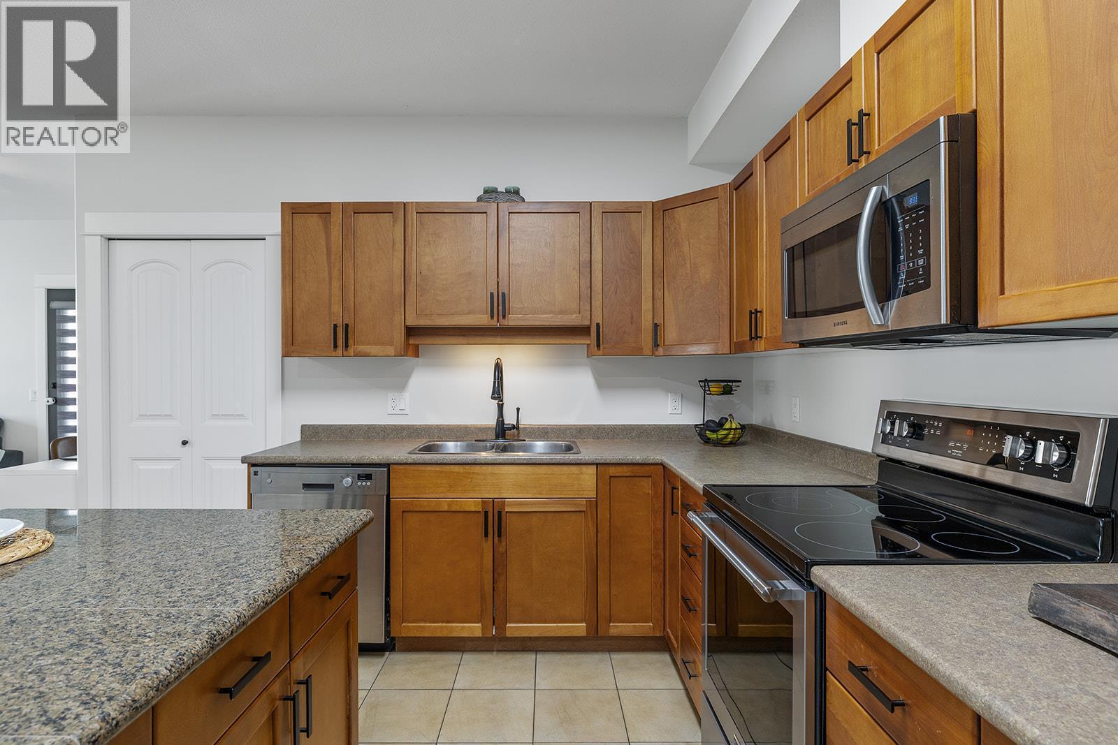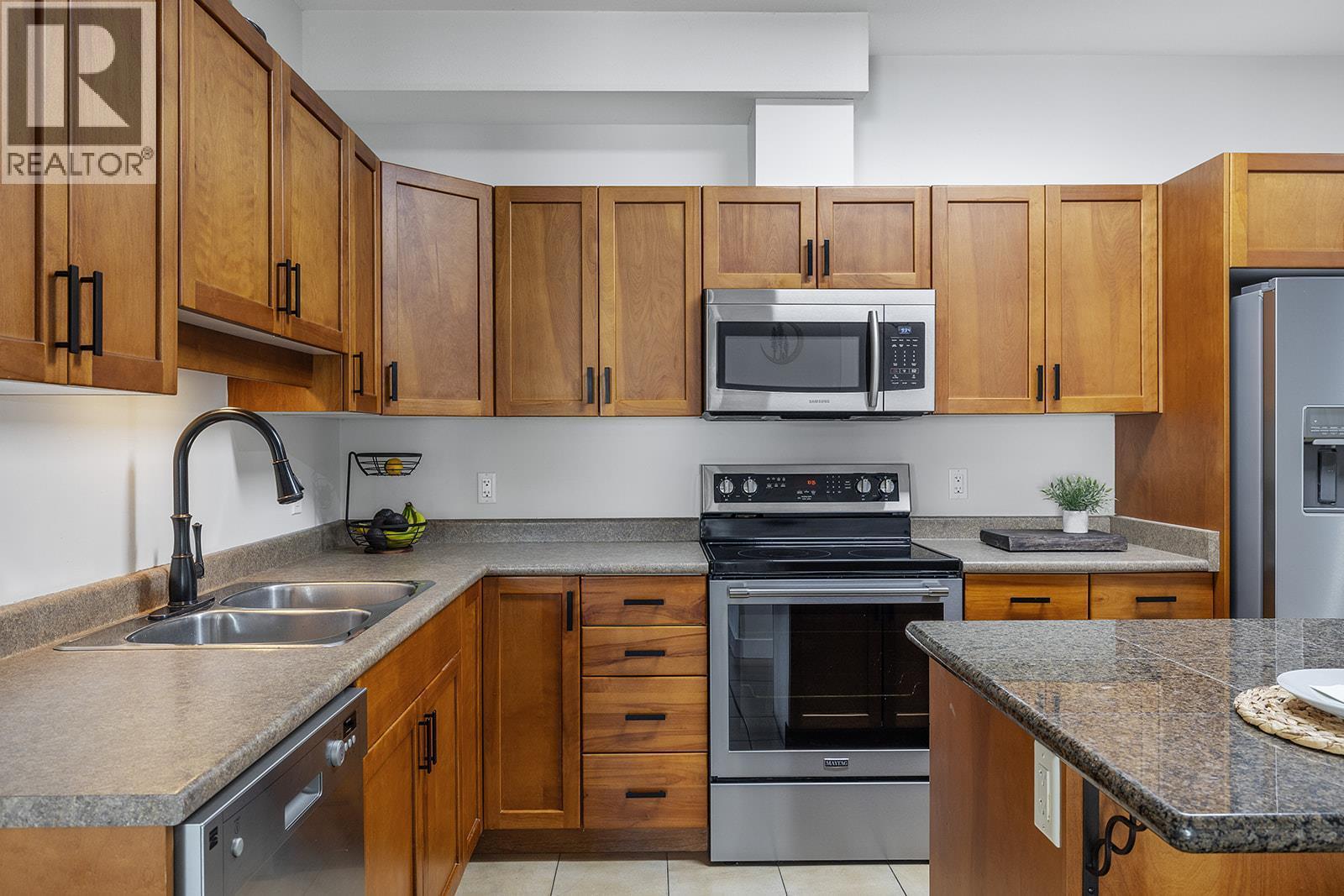 Welcome to this charming ground-floor 2 bed, 2 bath home offering comfort, convenience, and exceptional value. Immaculately maintained and freshly painted throughout, this unit is move-in ready and thoughtfully designed. The bright kitchen features updated stainless steel appliances, an eat-up island, and direct access to the attached single-car garage—perfect for everyday ease. A private front entry also leads directly into the kitchen for added functionality. The spacious living room opens onto a covered concrete patio and grassy area, creating a seamless indoor-outdoor living experience. The well-designed split-bedroom layout ensures privacy, with a generously sized primary bedroom featuring a 3-piece ensuite and walk-in shower. The second bedroom is bright and inviting, with convenient access to a full 4-piece bathroom. Thoughtful upgrades include newer lighting with dimmable features, a newer hot water tank, and two new P-TAC systems for efficient heating and cooling. Plus, low strata fees keep ownership affordable. Pet lovers will appreciate the rare allowance of 2 dogs or cats with no size restrictions. The attached garage provides parking for one car w/ storage with convenient access to first-come, first-serve parking for residents & visitors just outside. Steps to The Rail Trail, Beasley Park & beach—enjoy lake days, trails & easy Lake Country living right at your doorstep. A fantastic opportunity for first-time buyers, downsizers, or investors alike! (id:6769)