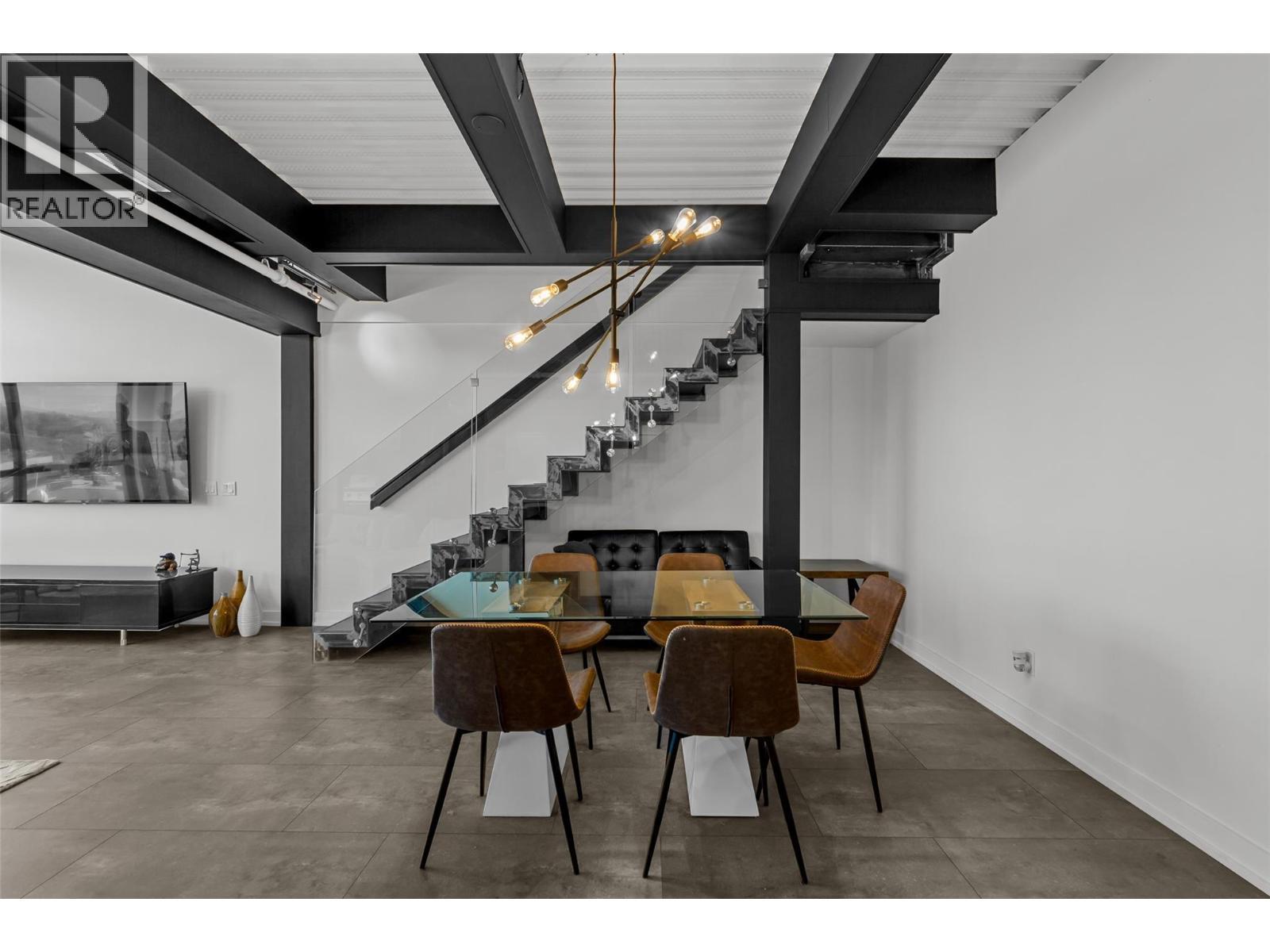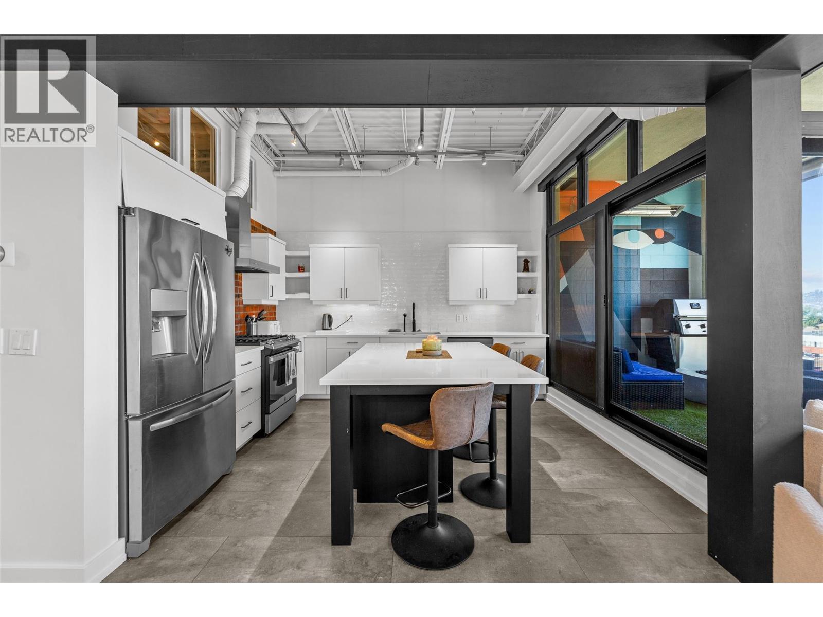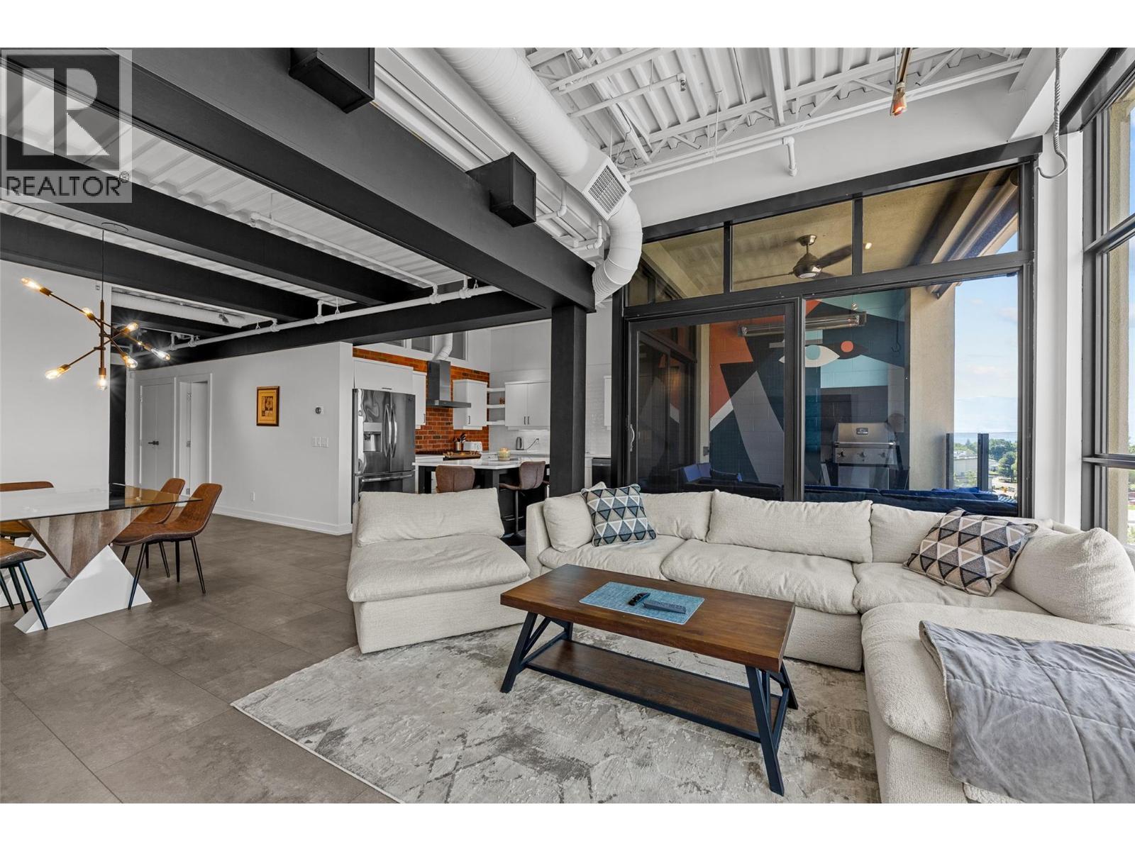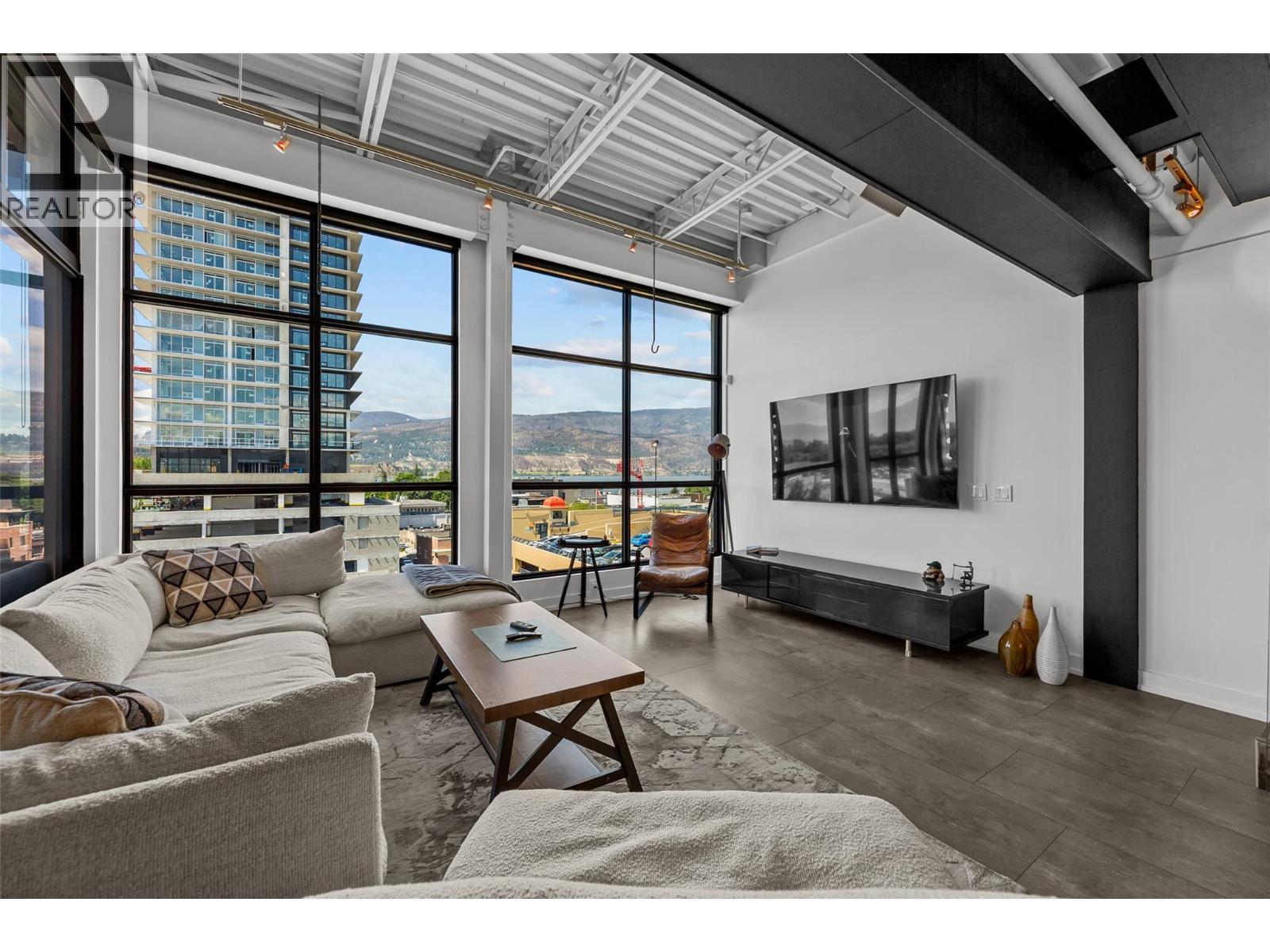 Discover Kelowna's most unique and luxurious condo—a fully renovated, lofted industrial-style masterpiece with unparalleled lake and city views. Perched atop a professional building with just five exclusive residences, this property promises an extraordinary living experience. The main floor boasts an expansive open-concept design featuring soaring high ceilings and dramatic floor-to-ceiling windows that flood the space with natural light. The stunning kitchen, equipped with top-of-the-line appliances opens to a heated, covered patio—perfect for year-round alfresco dining. Ascend to the primary retreat, where you'll be captivated by sweeping lake and city vistas. Every inch of this home has been meticulously updated with new flooring, a modern kitchen, state-of-the-art appliances, fresh paint, and elegant baseboards. This pet- and rental-friendly building offers the convenience of two large indoor parking stall. A property of this caliber must be seen to be truly appreciated. Don’t miss the opportunity to own this exceptional downtown loft and experience its unparalleled luxury and uniqueness firsthand. (id:6769)
