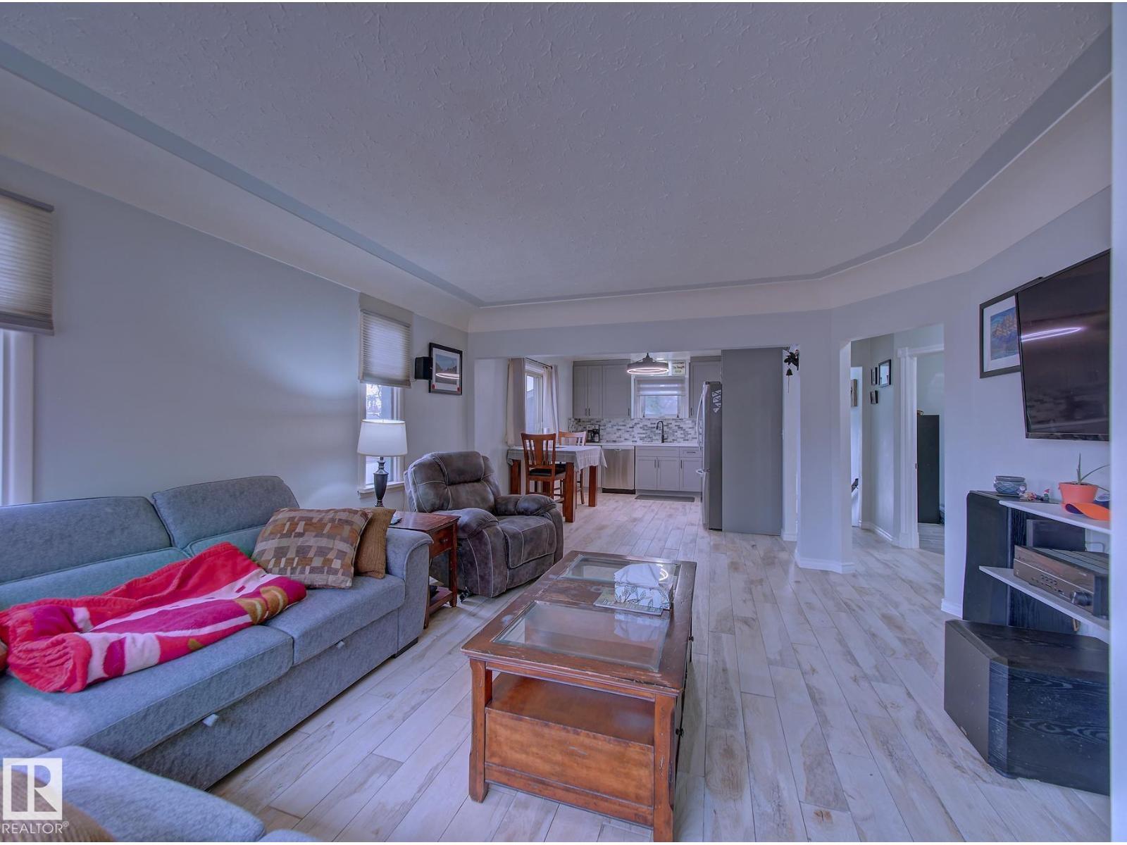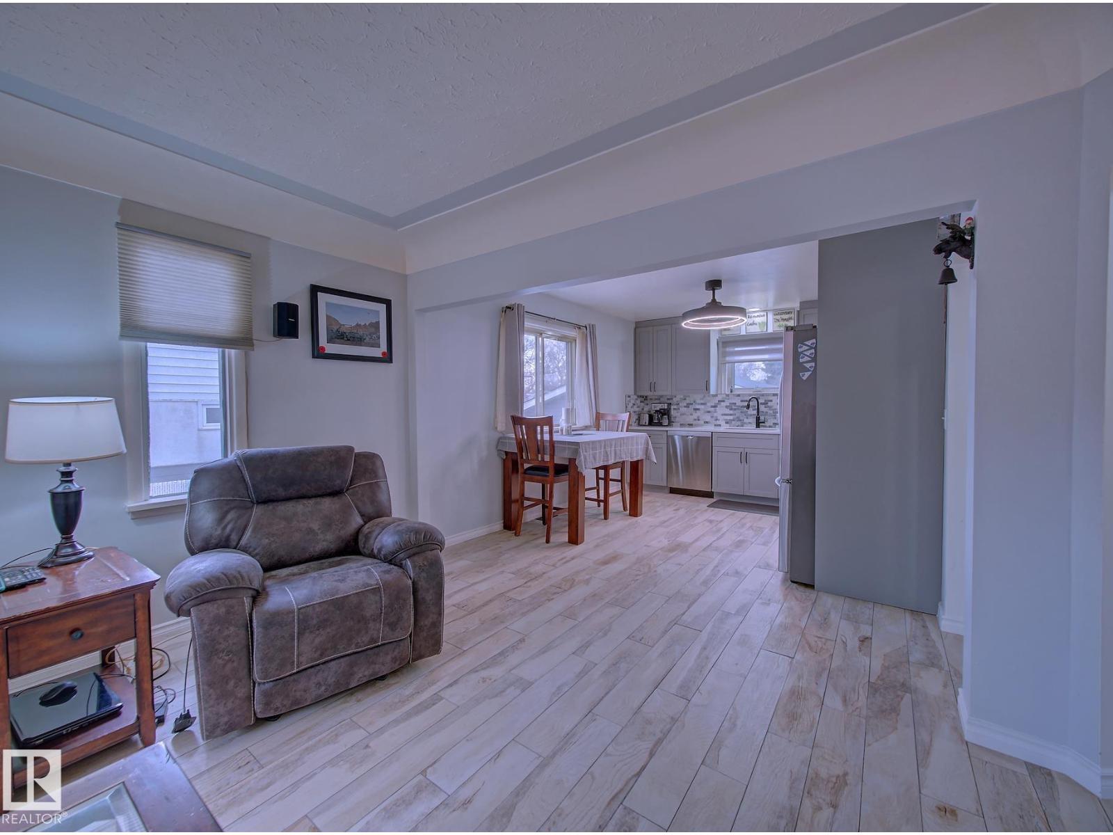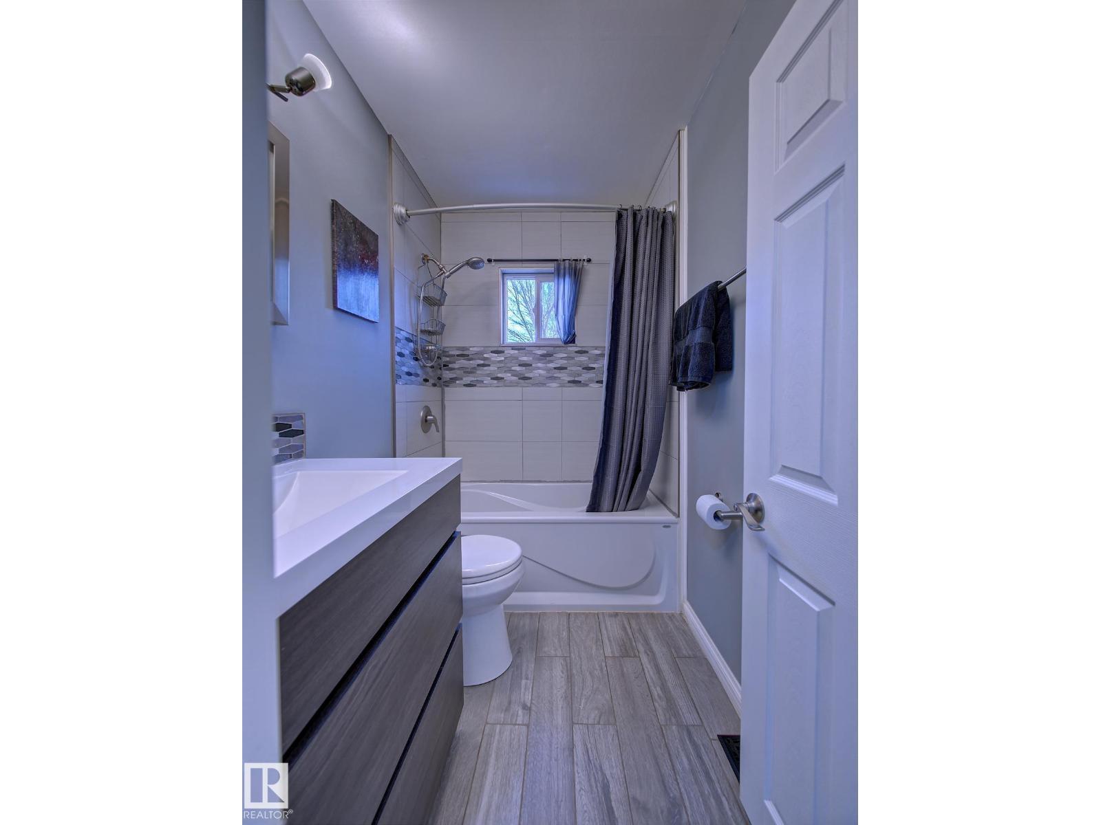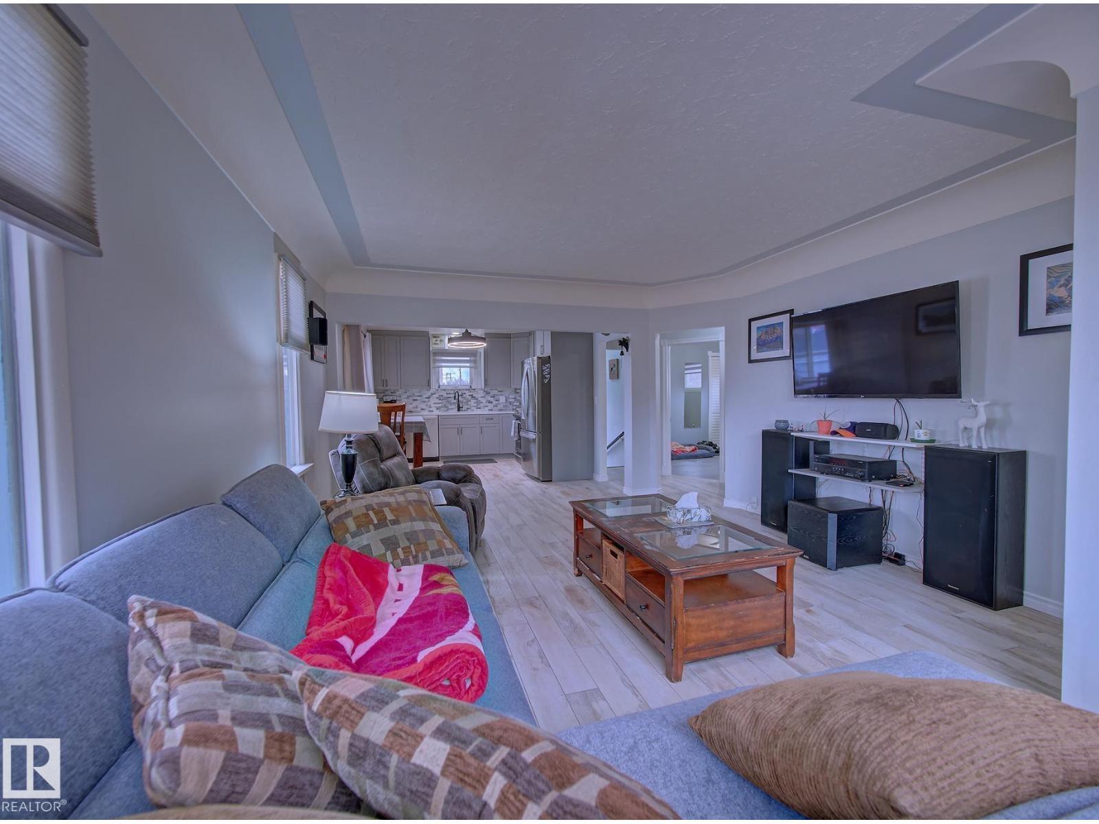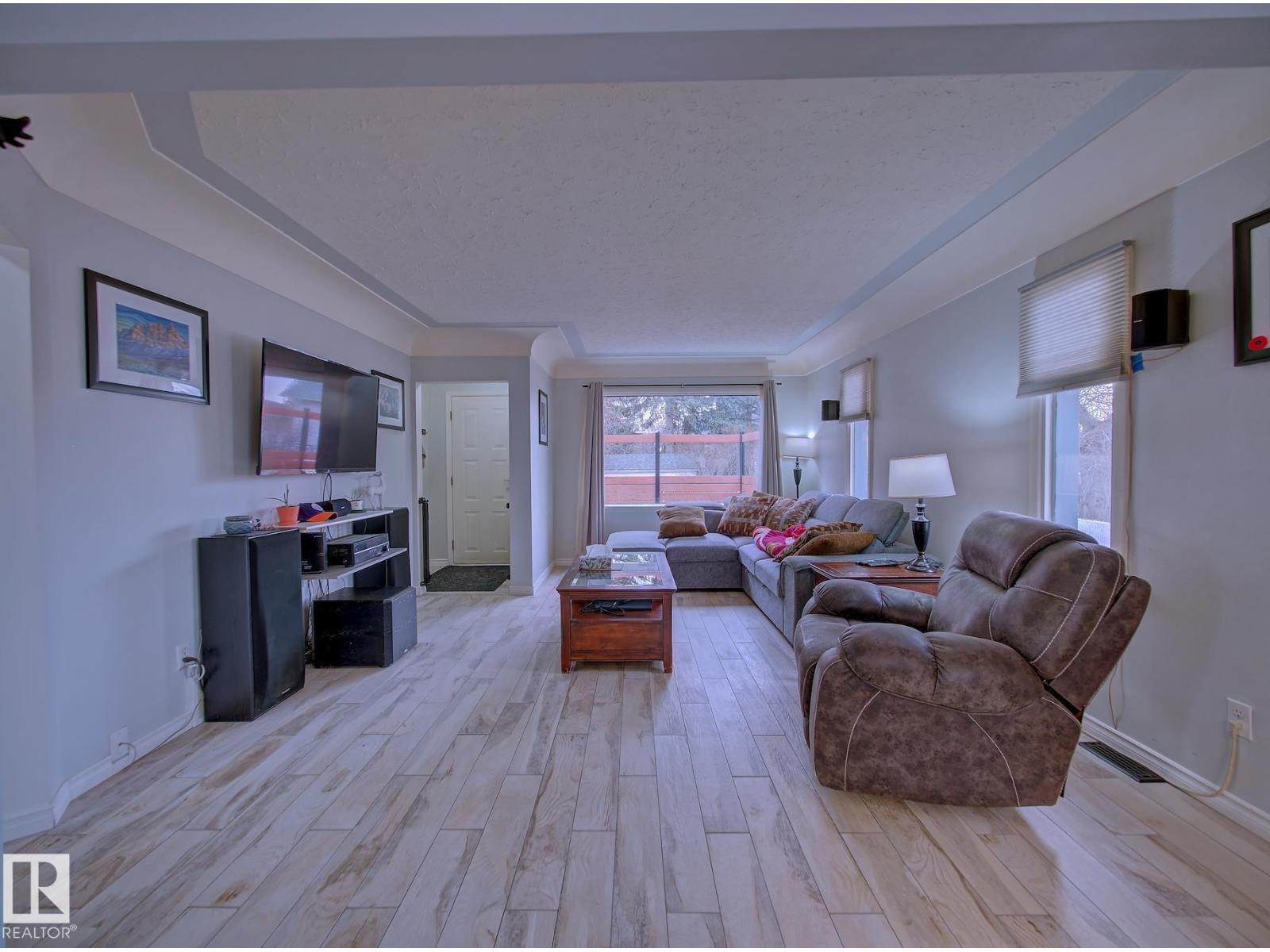 Welcome to Old Fort Saskatchewan! Ideally located within walking distance to schools, shopping, parks, and recreational amenities, this renovated 2+1 bedroom bungalow offers a great blend of comfort and functionality. The main floor features an upgraded kitchen overlooking a bright, spacious living room, creating an inviting space for everyday living and entertaining. Garden door access leads to your deck—perfect for relaxing or enjoying your morning coffee. Two well-sized bedrooms, including the primary, and a 4PC bath complete this level. Large windows fill the home with natural light, while durable ceramic flooring adds style and easy maintenance. The fully developed basement offers a generous recreation room, a large third bedroom with walk-in closet area, a 3PC bathroom, and a convenient laundry space with enclosed furnace and hot water tank. Outside, enjoy a fully fenced yard with mature trees, garden area, RV parking, and a heated 24' x 26' double detached garage. A fantastic opportunity (id:6769)