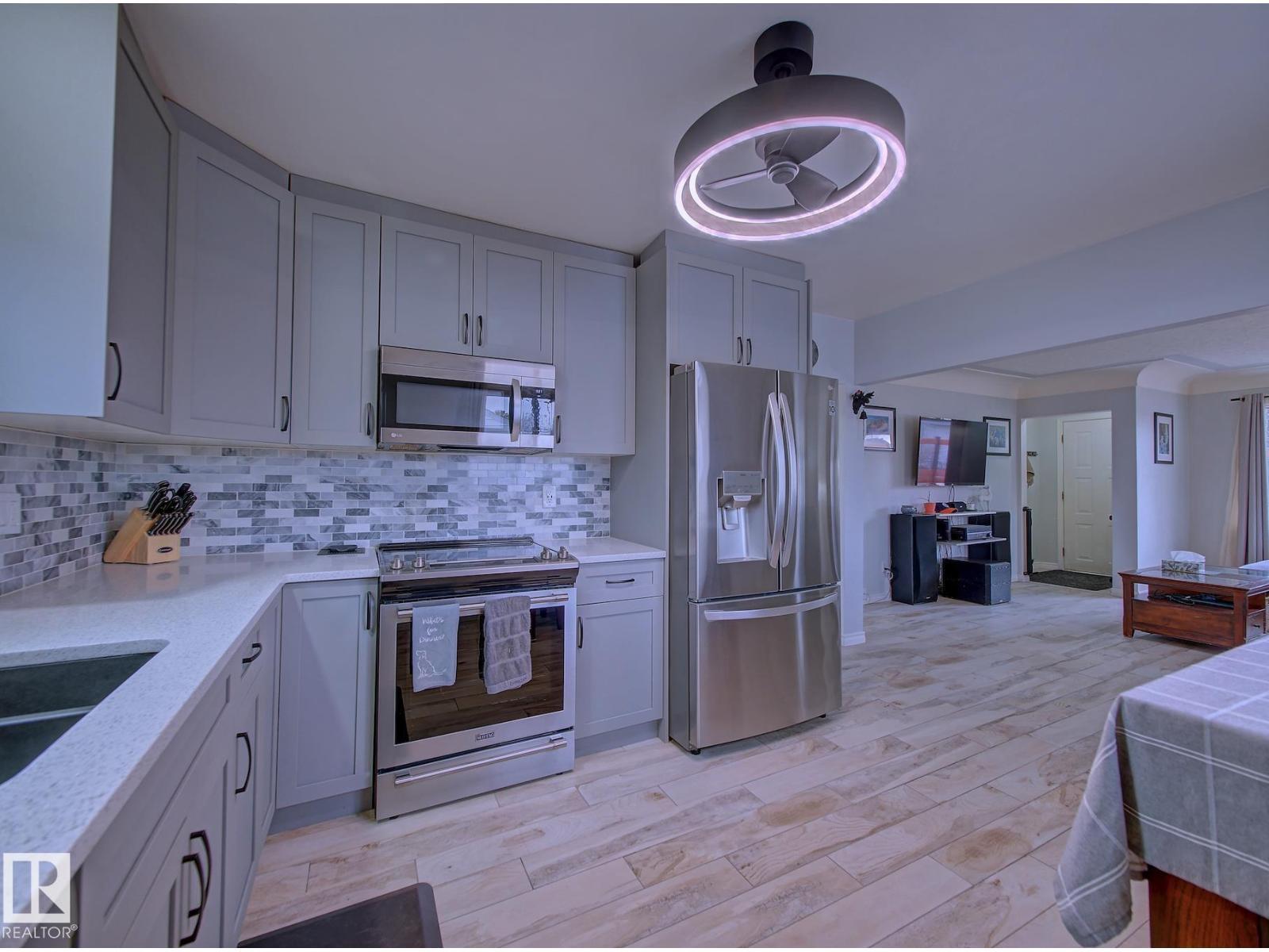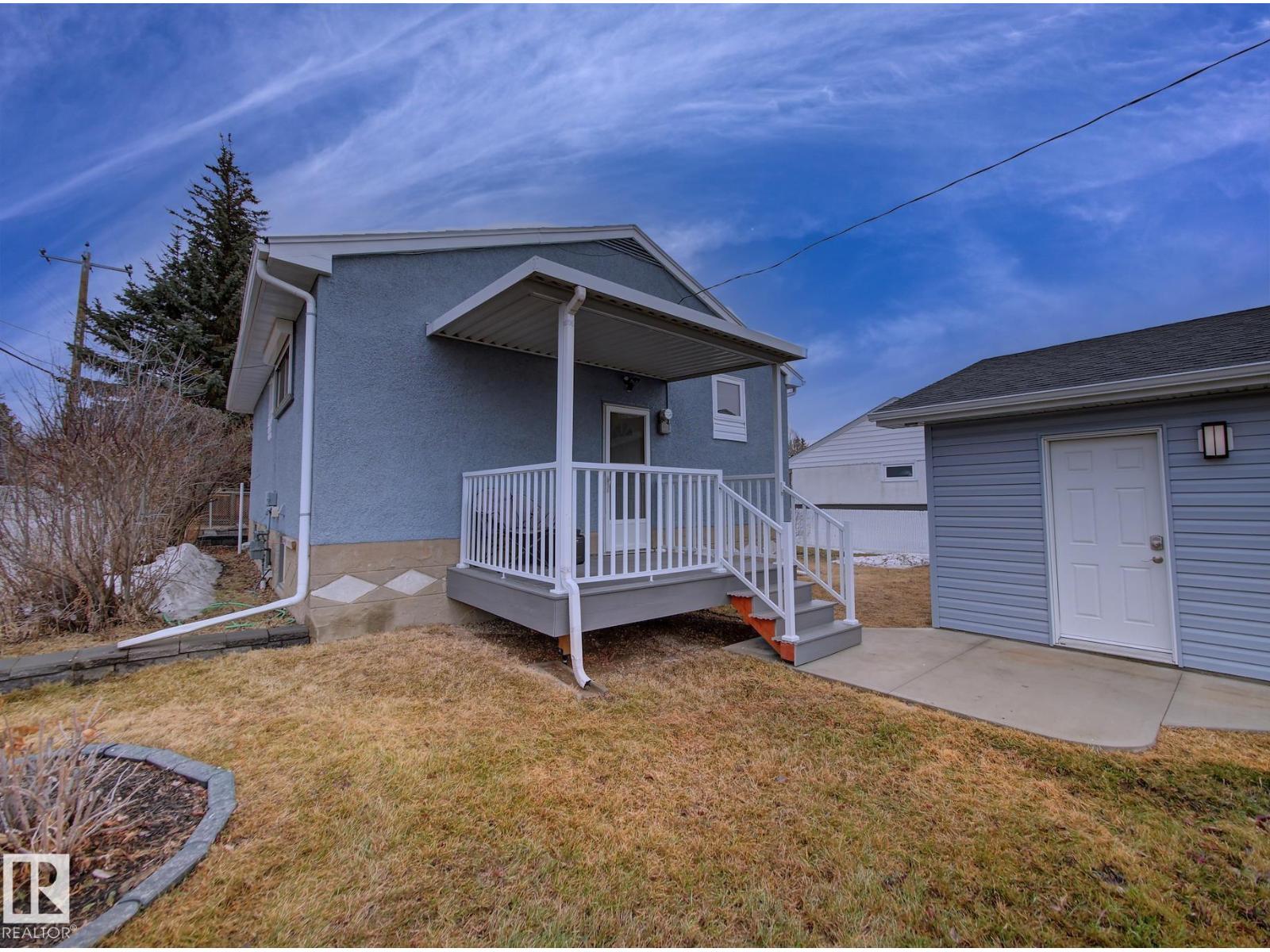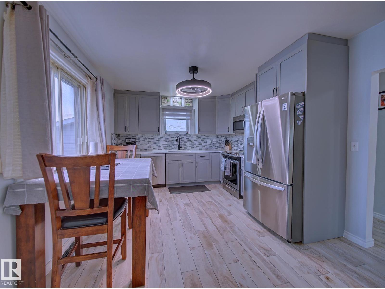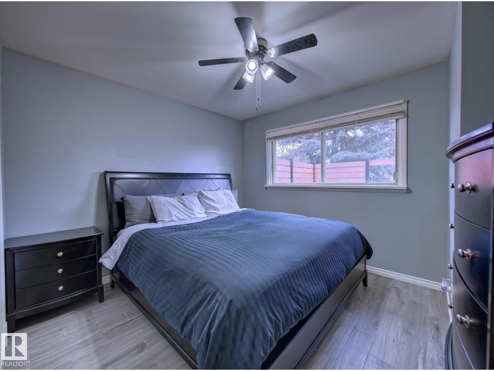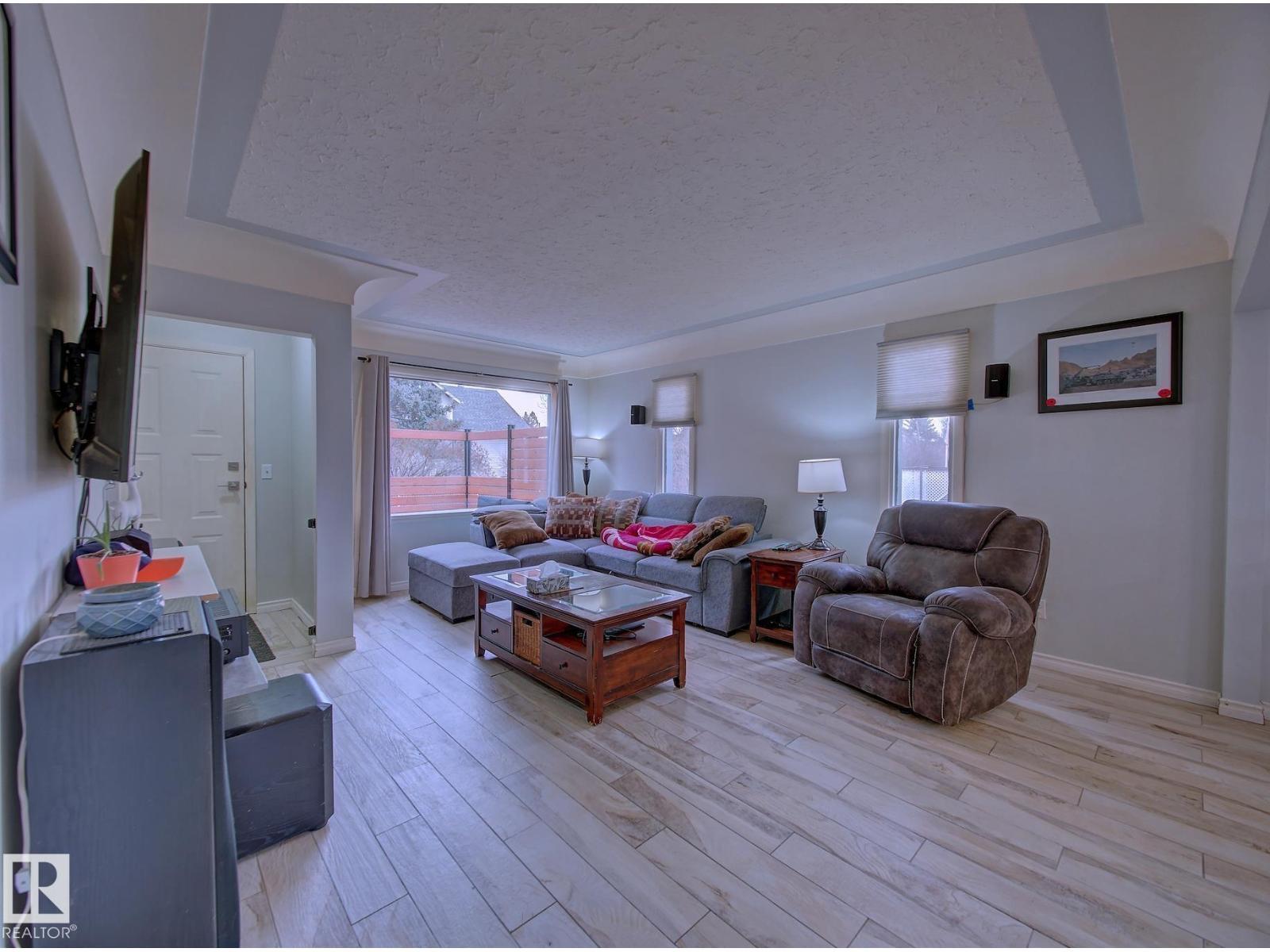 Welcome to Old Fort Saskatchewan! Ideally located within walking distance to schools, shopping, parks, and recreational amenities, this renovated 2+1 bedroom bungalow offers a great blend of comfort and functionality. The main floor features an upgraded kitchen overlooking a bright, spacious living room, creating an inviting space for everyday living and entertaining. Garden door access leads to your deck—perfect for relaxing or enjoying your morning coffee. Two well-sized bedrooms, including the primary, and a 4PC bath complete this level. Large windows fill the home with natural light, while durable ceramic flooring adds style and easy maintenance. The fully developed basement offers a generous recreation room, a large third bedroom with walk-in closet area, a 3PC bathroom, and a convenient laundry space with enclosed furnace and hot water tank. Outside, enjoy a fully fenced yard with mature trees, garden area, RV parking, and a heated 24' x 26' double detached garage. A fantastic opportunity (id:6769)