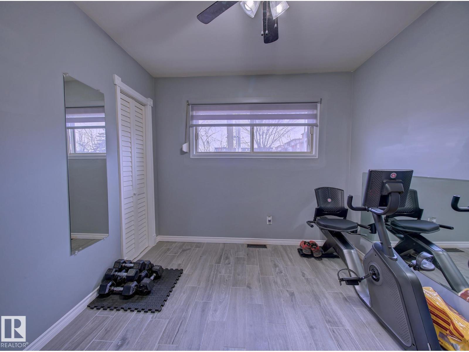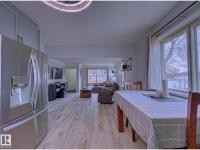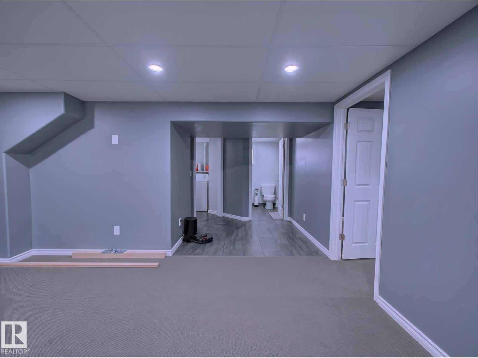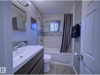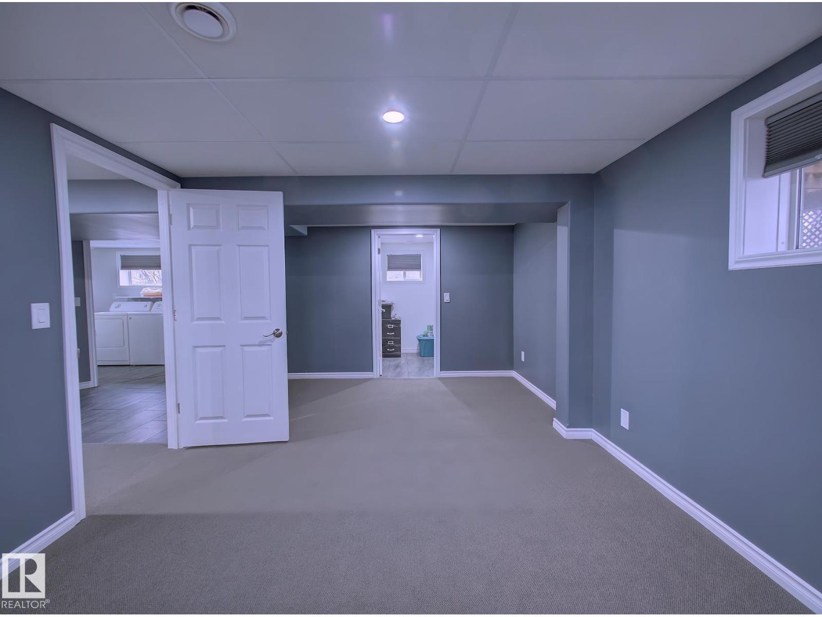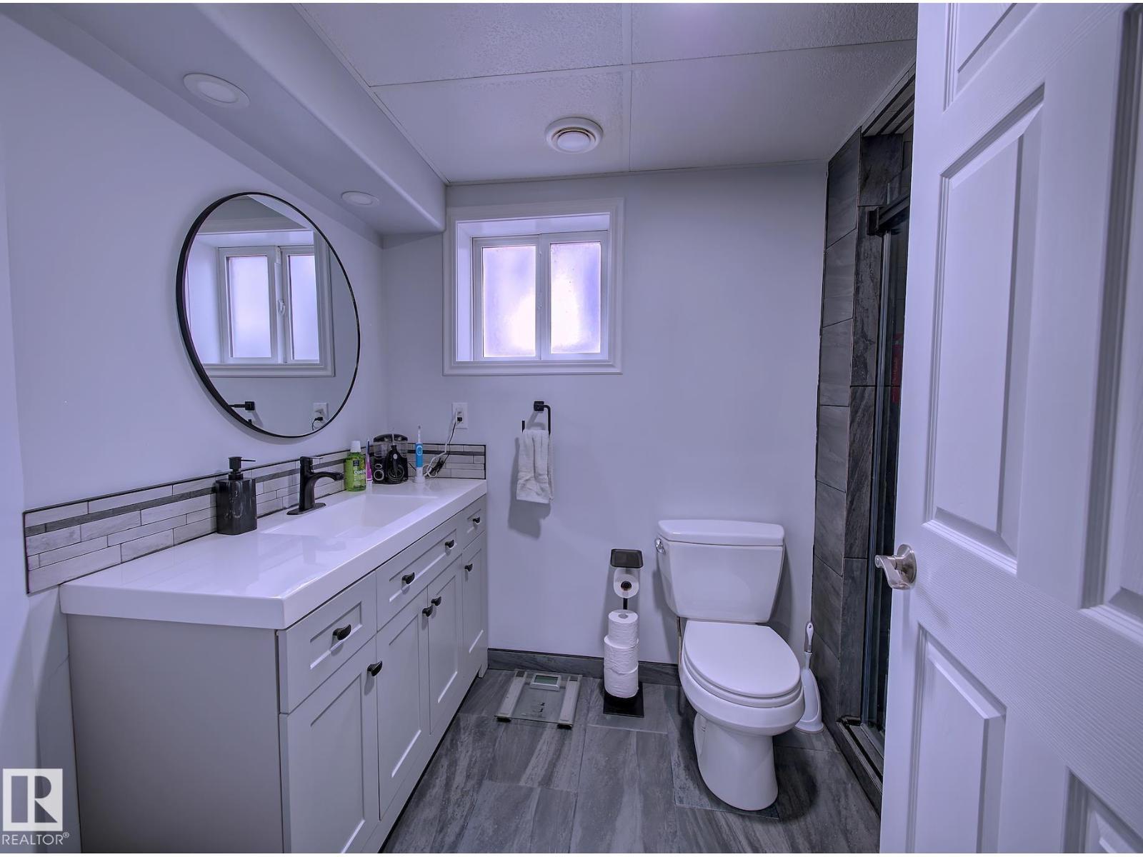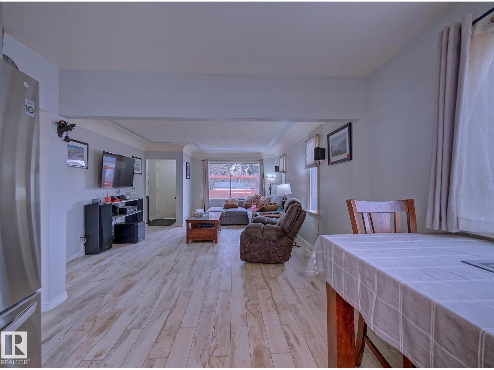 Welcome to Old Fort Saskatchewan! Ideally located within walking distance to schools, shopping, parks, and recreational amenities, this renovated 2+1 bedroom bungalow offers a great blend of comfort and functionality. The main floor features an upgraded kitchen overlooking a bright, spacious living room, creating an inviting space for everyday living and entertaining. Garden door access leads to your deck—perfect for relaxing or enjoying your morning coffee. Two well-sized bedrooms, including the primary, and a 4PC bath complete this level. Large windows fill the home with natural light, while durable ceramic flooring adds style and easy maintenance. The fully developed basement offers a generous recreation room, a large third bedroom with walk-in closet area, a 3PC bathroom, and a convenient laundry space with enclosed furnace and hot water tank. Outside, enjoy a fully fenced yard with mature trees, garden area, RV parking, and a heated 24' x 26' double detached garage. A fantastic opportunity (id:6769)