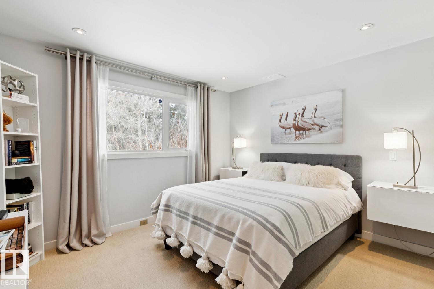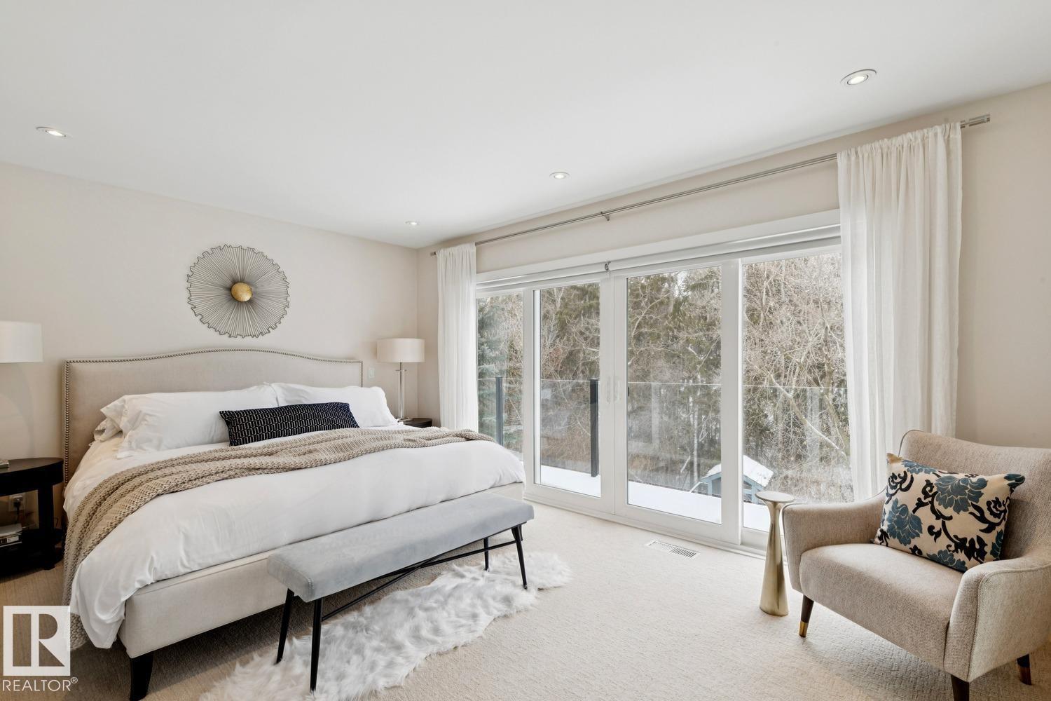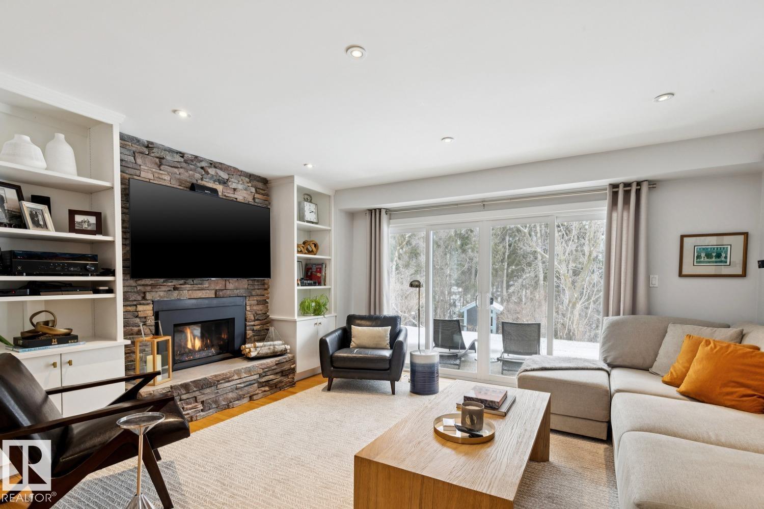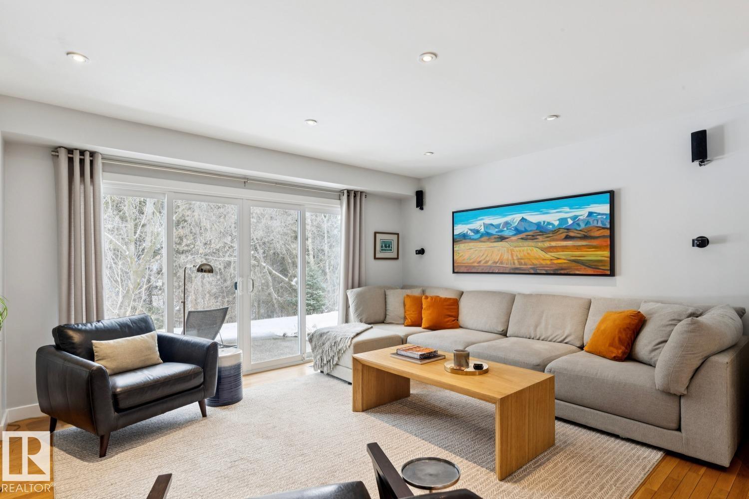 Absolutely breathtaking in prestigious Westbrook Estates! Backing directly onto Whitemud Creek Ravine, this stunning home has undergone a spectacular renovation and is truly one of a kind! Sitting upon a very secluded 12,500+ sqft lot, and offering close to 3300 sqft of living space, this gorgeous revitalization will certainly impress. The main floor features a lavish kitchen w/quartz counters, premium cabinetry, and high-end appliances. Gorgeous living area w/floor to ceiling windows, hardwood floors, and stunning gas fireplace, adjacent to the formal dining area. Upstairs you will find the primary suite w/spa-like ensuite, walk-in closet, and balcony that overlooks the beautiful yard, 2nd bedroom, and additional 3-pc bath/laundry room. The lower levels offer walkout access, a magnificent living room w/stone fireplace, cozy home theatre area, rec room, 2 additional bedrooms, additional 3-pc bath, and plenty of storage space. Spectacular home located in one of Edmonton's most sought-after neighbourhoods! (id:6769)