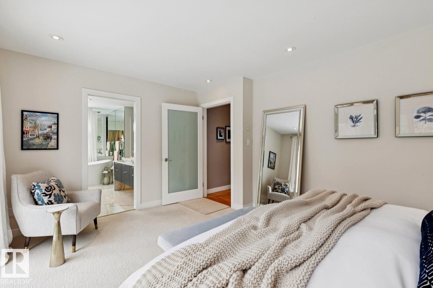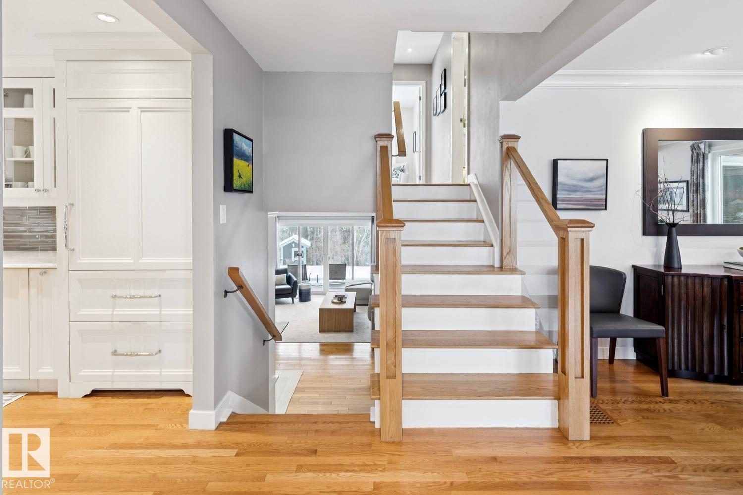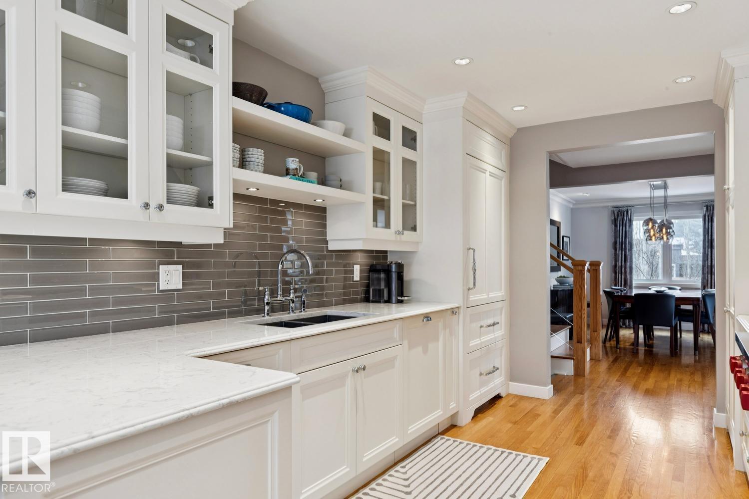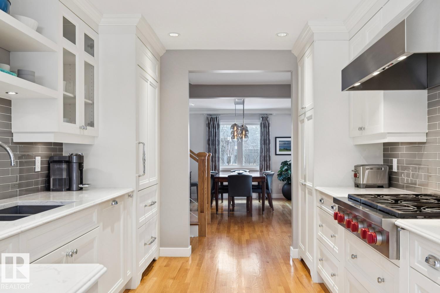 Absolutely breathtaking in prestigious Westbrook Estates! Backing directly onto Whitemud Creek Ravine, this stunning home has undergone a spectacular renovation and is truly one of a kind! Sitting upon a very secluded 12,500+ sqft lot, and offering close to 3300 sqft of living space, this gorgeous revitalization will certainly impress. The main floor features a lavish kitchen w/quartz counters, premium cabinetry, and high-end appliances. Gorgeous living area w/floor to ceiling windows, hardwood floors, and stunning gas fireplace, adjacent to the formal dining area. Upstairs you will find the primary suite w/spa-like ensuite, walk-in closet, and balcony that overlooks the beautiful yard, 2nd bedroom, and additional 3-pc bath/laundry room. The lower levels offer walkout access, a magnificent living room w/stone fireplace, cozy home theatre area, rec room, 2 additional bedrooms, additional 3-pc bath, and plenty of storage space. Spectacular home located in one of Edmonton's most sought-after neighbourhoods! (id:6769)