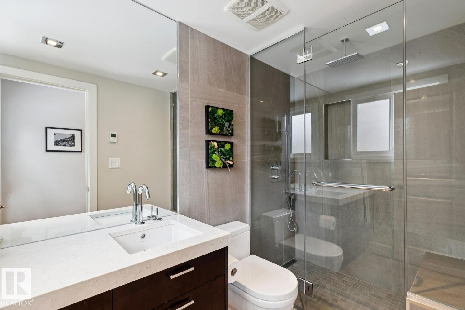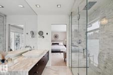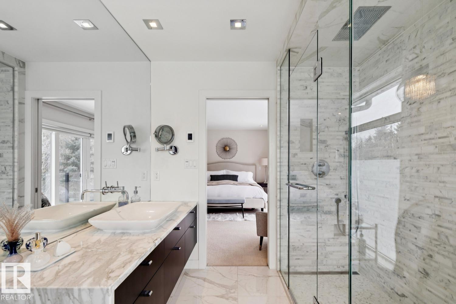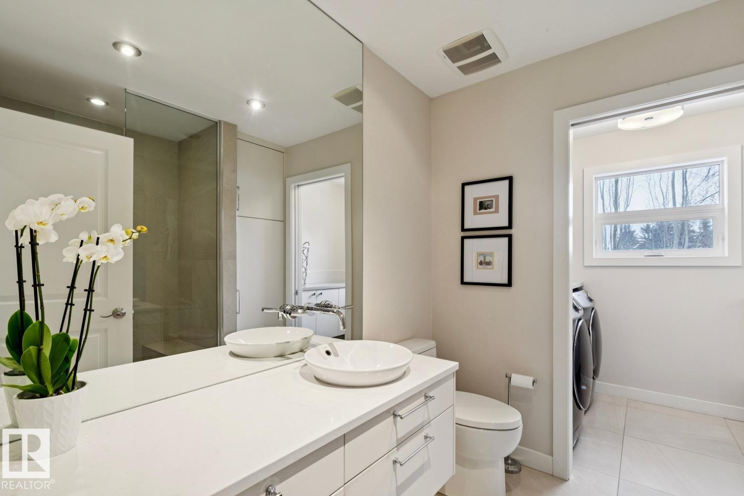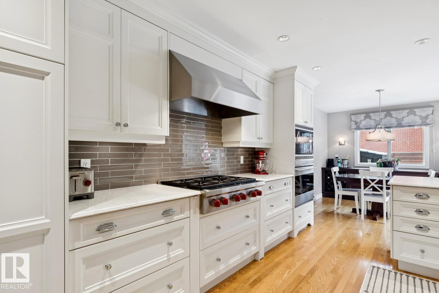 Absolutely breathtaking in prestigious Westbrook Estates! Backing directly onto Whitemud Creek Ravine, this stunning home has undergone a spectacular renovation and is truly one of a kind! Sitting upon a very secluded 12,500+ sqft lot, and offering close to 3300 sqft of living space, this gorgeous revitalization will certainly impress. The main floor features a lavish kitchen w/quartz counters, premium cabinetry, and high-end appliances. Gorgeous living area w/floor to ceiling windows, hardwood floors, and stunning gas fireplace, adjacent to the formal dining area. Upstairs you will find the primary suite w/spa-like ensuite, walk-in closet, and balcony that overlooks the beautiful yard, 2nd bedroom, and additional 3-pc bath/laundry room. The lower levels offer walkout access, a magnificent living room w/stone fireplace, cozy home theatre area, rec room, 2 additional bedrooms, additional 3-pc bath, and plenty of storage space. Spectacular home located in one of Edmonton's most sought-after neighbourhoods! (id:6769)