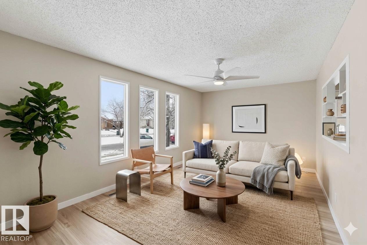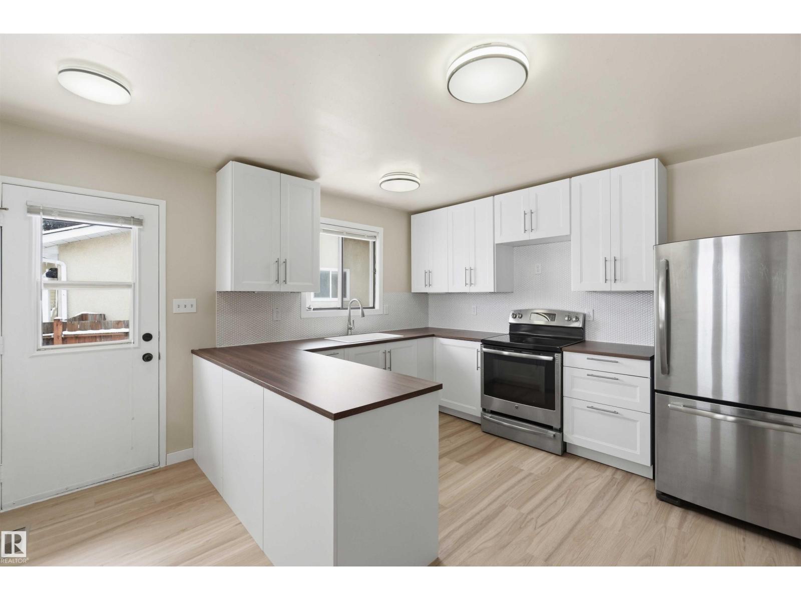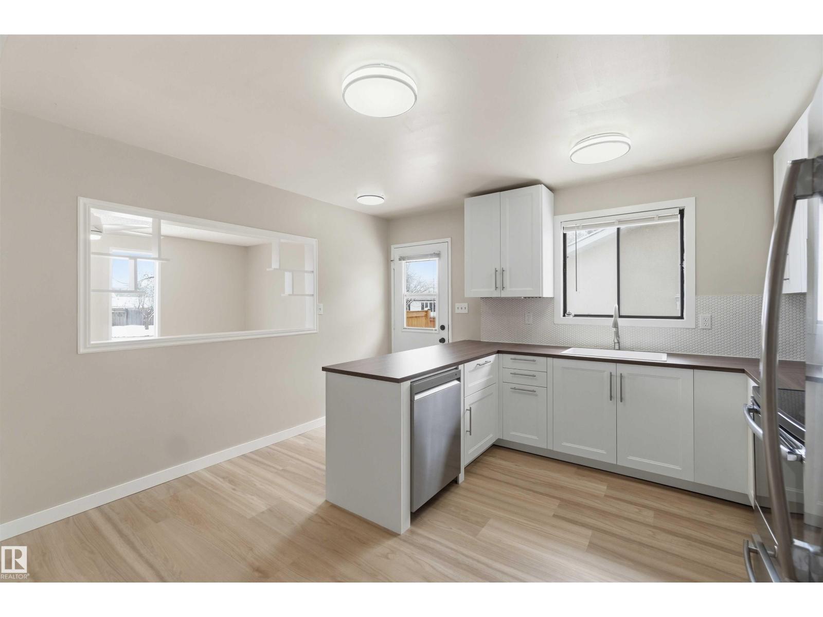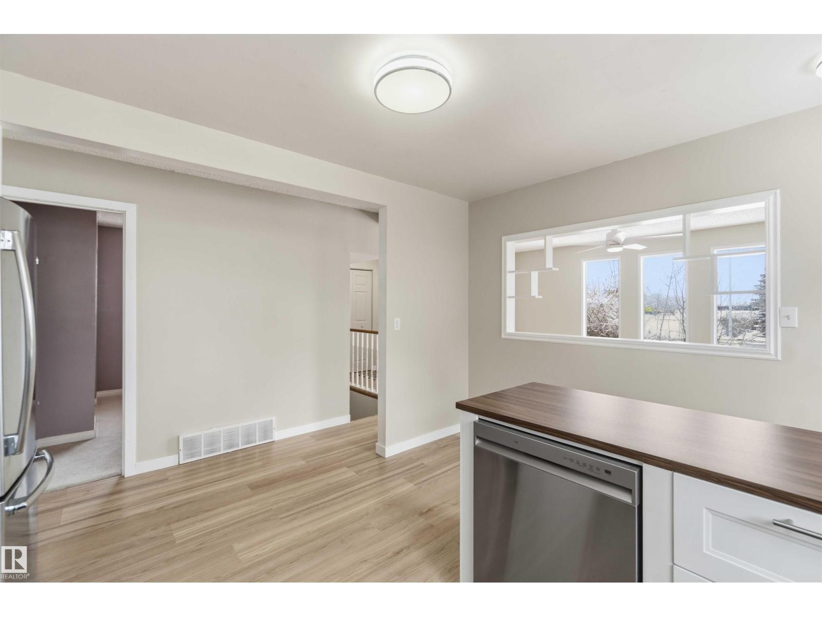 This charming 993 sq. ft. bungalow in Gibbons is the quintessential starter home, offering an unbeatable mix of affordability and high-value modern updates. The main floor features three comfortable bedrooms and has been beautifully refreshed with brand-new flooring and a stunning kitchen completed just months ago, while the finished basement provides a spacious rec room and two additional bedrooms (please note basement windows do not meet current egress codes). You can enjoy total peace of mind with major mechanical upgrades including a new furnace and central AC installed in 2022, along with a lovely new deck built last year that is perfect for summer entertaining. Ideally situated for convenience, this move-in-ready gem is located just 15 minutes from the military base, making it a fantastic opportunity for service members or first-time buyers looking for a solid investment in a friendly community. some picture are virtually Stages (id:6769)