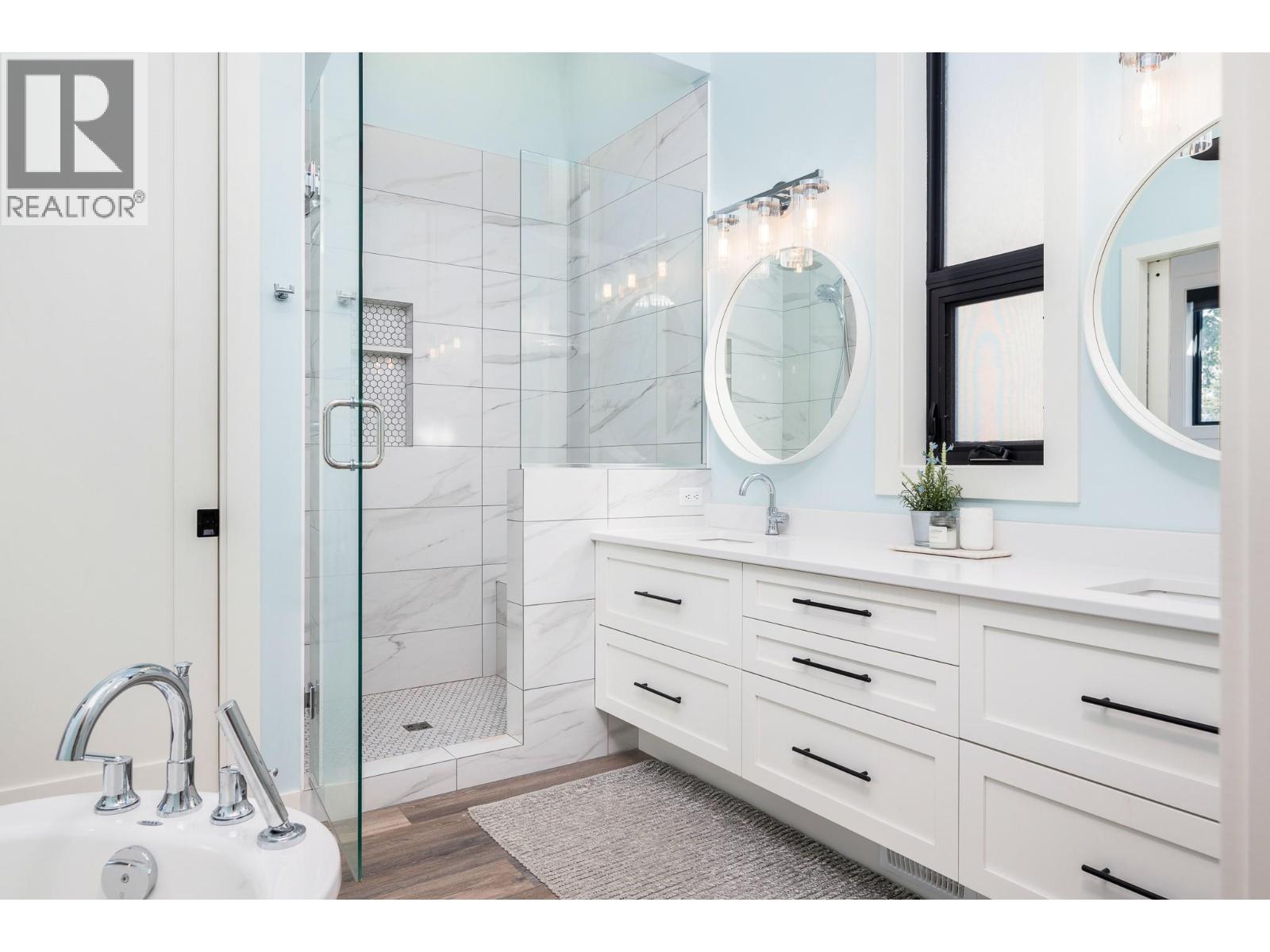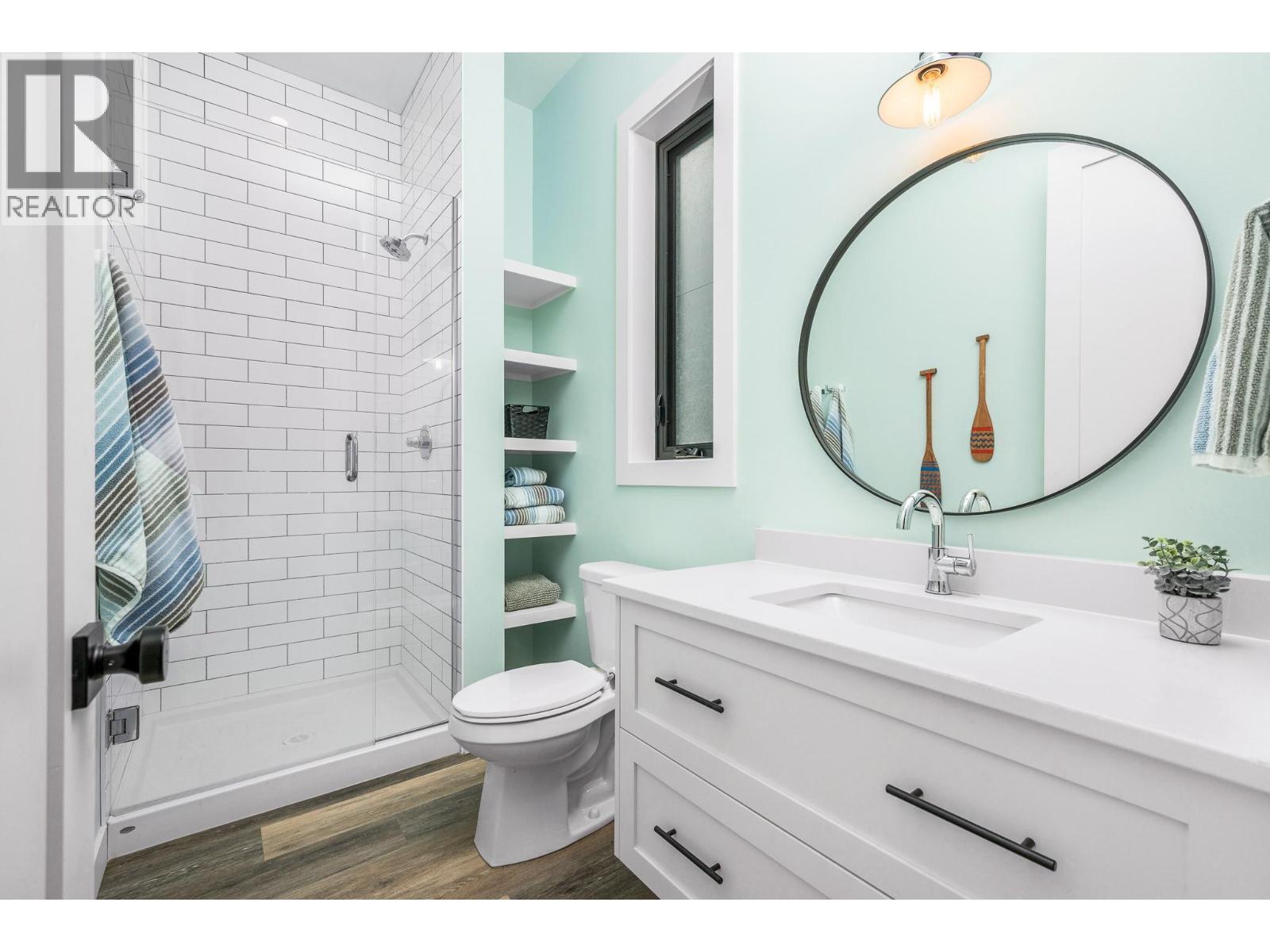 Exceptional Okanagan Lakefront living in this beautifully designed 4 bed, 5 bath home built in 2019. Thoughtfully set up for summer enjoyment and entertaining, this property offers 75 ft of waterfront and a lifestyle built around fabulous Okanagan Lake . The deluxe dock includes steel piles, composite decking, boat lift, and Sea-Doo lifts, making lake days effortless. Dive into the deep refreshing waters, lounge along the shore, or enjoy your private hot tub to unwind after a day on the lake. A spacious outdoor patio anchors the home with seating, firepit, and BBQ space—ideal for hosting family and friends while taking in the views. Inside, the upper level features a stunning primary suite with high ceilings, private lakeview deck, 5-piece ensuite, and walk-in closet. A generous guest room with double bunk beds provides excellent space for children or visitors, with dual sinks in the ensuite for convenience. The lower level offers open-concept living with kitchen and family room, both opening to a covered patio through sliding glass doors. Two additional bedrooms each feature their own ensuite, offering comfort and privacy throughout. Elevated for optimal views yet just steps to the water, this home blends luxury and lakeside ease. Located in the gated Cliffshore Estates community just south of Vernon, it offers privacy and tranquility while remaining minutes to amenities like Ellison Provincial park and miles of bike trails. (id:6769)