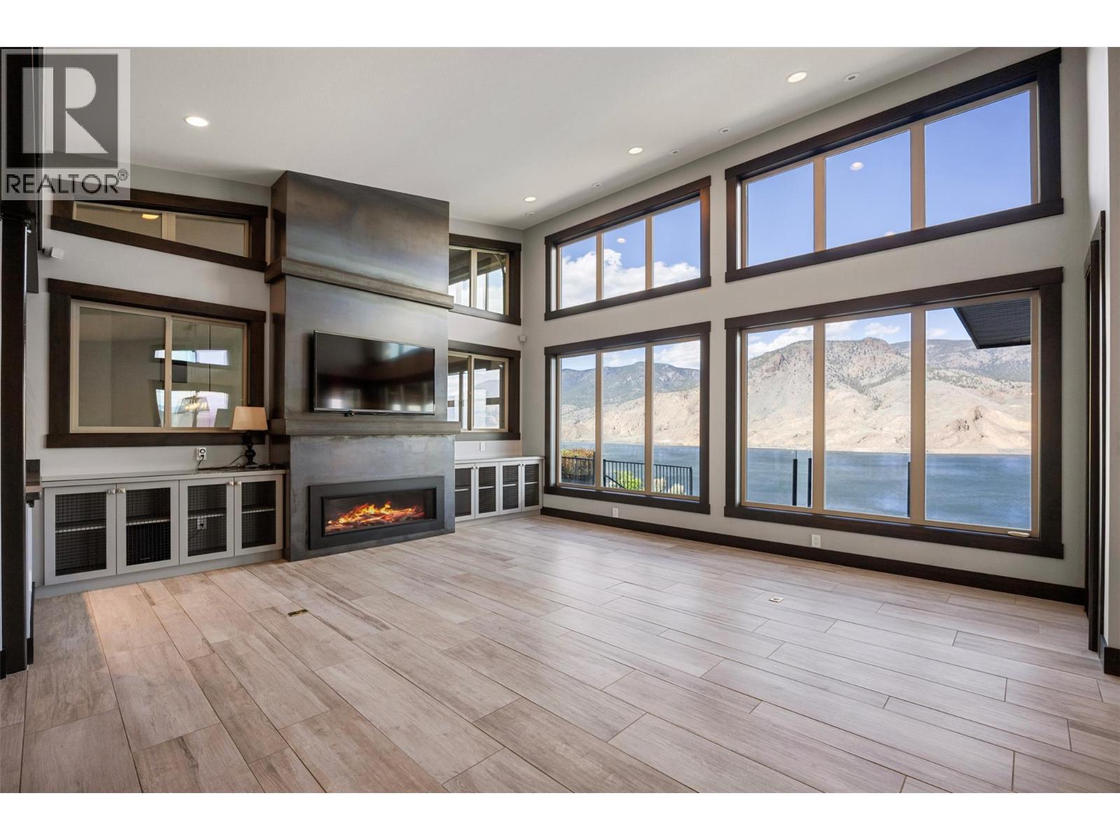 A custom-built masterpiece nestled in the prestigious Tobiano neighborhood, home to one of Canada’s top golf courses, a freshwater marina, and just 20 minutes from Kamloops! This 4,700 sq ft, 4 bed & 4 bath residence boasts unparalleled luxury and design. Set on a prime 15,000 sq ft bluff lot overlooking Kamloops Lake, it boasts breathtaking 180-degree views. The main floor features elegant tile flooring throughout, high vaulted ceilings, and floor-to-ceiling windows that flood the space with natural light. Steel beams, gorgeous fir cabinetry, and a striking floor-to-ceiling fireplace enhance the home’s sophisticated appeal. Enjoy seamless indoor-outdoor living with a massive patio and an indoor pool, perfect for entertaining. The expansive primary bedroom suite is a serene retreat, complete with a luxurious 5-piece ensuite featuring a large tiled shower, a deep soaker tub, a spacious custom closet with built-in laundry, and direct access to the back patio and yard. The lower level offers two additional bedrooms, two bathrooms, a large storage/utility room, and a wine room. It’s an entertainer’s dream with a pub-style seating area, a large family/media room, and access to the outdoor patio with a cozy wood-burning fireplace. The heated three-car garage features high ceilings and an epoxy-coated floor for added durability and style. This executive home offers too many exceptional features to list. For more info or to schedule a viewing contact the listing agent, Cam McKeen. (id:6769)