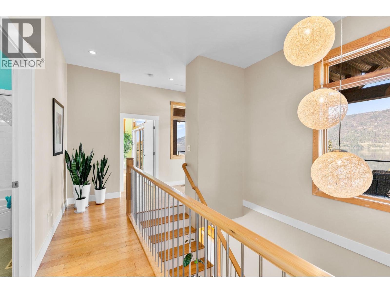 Welcome to lake living at its finest in the heart of Okanagan Centre, just moments from the shoreline of Okanagan Lake, where lifestyle, views, and tranquility define everyday living. Set on a private 1.15-acre property in one of Lake Country’s most desirable lakeside communities, this beautiful residence offers the perfect blend of space, comfort, and connection to the water. Built in 2014 and offering over 3,600 sq. ft. of living space, this home captures the essence of the Okanagan from every angle. Expansive windows throughout frame breathtaking lake views, while 10-foot ceilings and engineered hardwood flooring create a bright, airy atmosphere. The main level is designed for both everyday living and entertaining, featuring a spacious open-concept kitchen, dining, and living area. The kitchen is well-appointed with stainless steel appliances, granite countertops, a large island, and a walk-in pantry. A dedicated office/den provides an inspiring work-from-home space, with seamless access to both front and back outdoor areas. Upstairs, a family-friendly layout offers three bedrooms, including a generous primary retreat with private balcony access, and a five-piece ensuite complete with a soaker tub. Two additional bedrooms are serviced by a four-piece bathroom. The lower level, complete with in-floor heating, adds flexibility with a fourth bedroom, three-piece bathroom, laundry, and a sound-insulated media room, ideal for a home theatre experience. Take in stunning sunsets over Okanagan Lake from the screened front deck, unwind in the privacy of the back patio and garden, or explore the upper yard with its peaceful, natural surroundings. Both decks are engineered for hot tubs, offering even more opportunity to enjoy this exceptional setting. Located just steps from lakeshore access, the boat launch, local cafes, and renowned wineries, this home places you in the center of the Okanagan lifestyle. (id:6769)