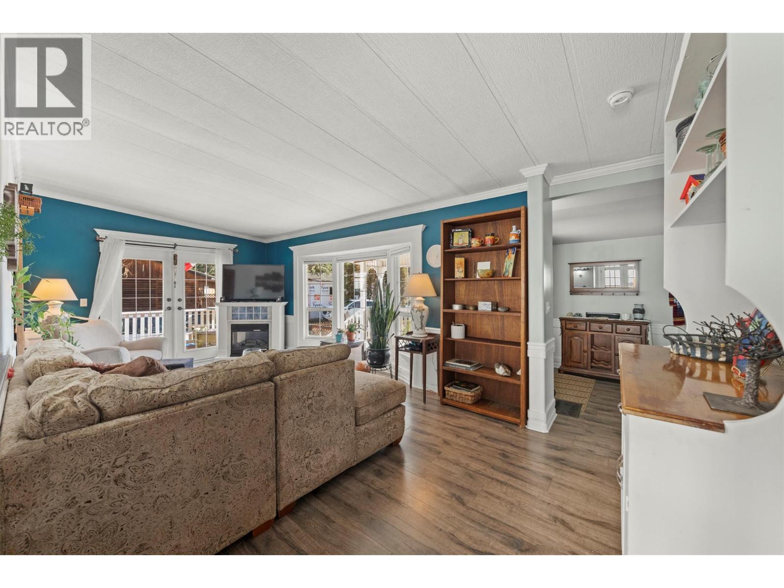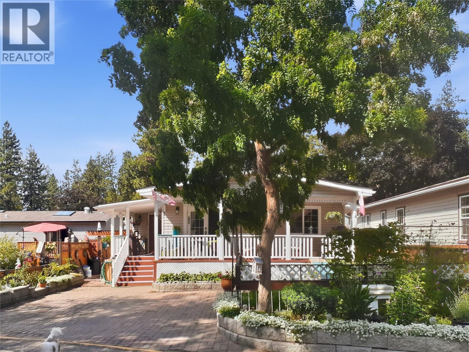 Newly renovated home in a desirable park BEAUTIFUL double wide home boasts 2 bed 2 bath and 1650 sq ft. Step onto your private front veranda thru the french doors and relax with morning coffee and soak up the sun all while enjoying the unparalleled view of Mount Boucherie, and mountains along OK lake. Freshly painted, totally updated with drywall throughout. Living room is large with plenty of light and lovely views from the bay windows and french double door leading to the side deck to the back yard. Appliances are SS and fairly new, fridge (2021), DW (2023), washer/dryer (2020). Both bathrooms have a walk-in glass shower, and the spa like ensuite has a double jetted tub. Master bed has large windows with plenty of light, a large bright office and walk in closer with built in shelves and drawers. The 2nd bedroom is bright and spacious with plenty of light and room for king bed and dressers. A gardeners dream with raised beds along the entire length of the mobile, the front has a beautiful garden bed and side bed alongside a large brick driveway. Newly landscaped private back yard including patio area. Both front and back yards are fenced. Roof is 5 years old, furnace was replaced in 2020 with a high efficiency and windows are new. House is located on a very quiet road in a well managed park. It is in the adult section (19+). Close to shopping, wineries, beaches, and hiking trails. 2 Pets welcome without size limits, with park approval. (id:6769)