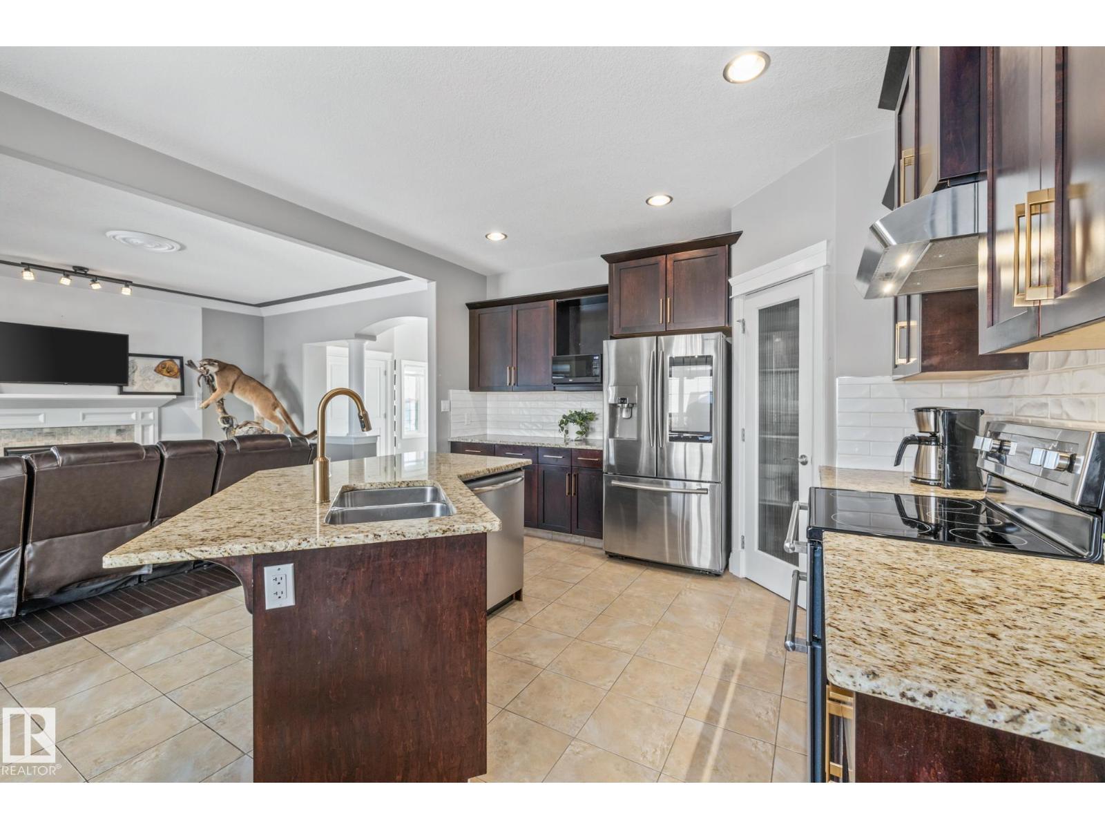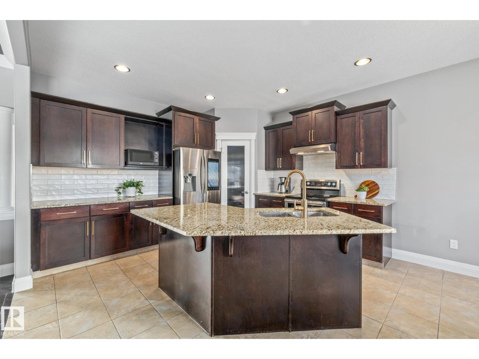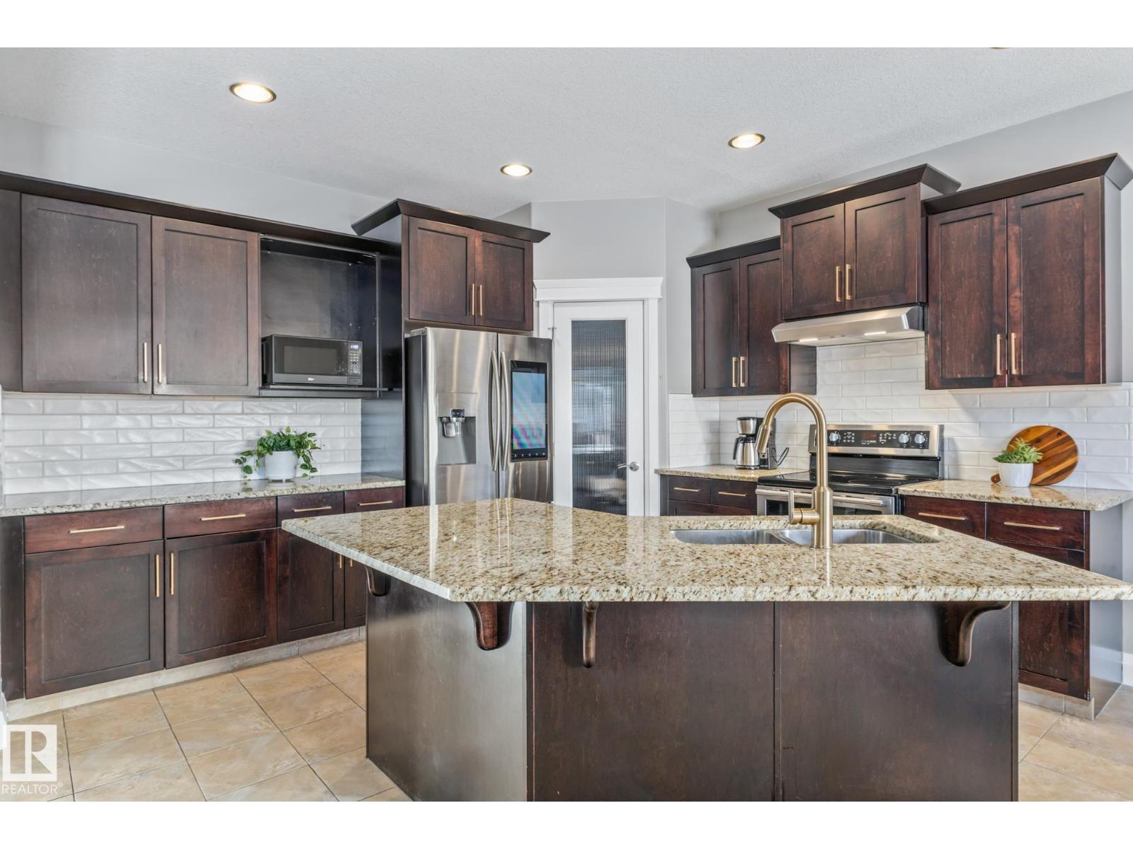 Wonderful family-ready 2-storey w/ LEGAL BASEMENT SUITE, just blocks from schools, parks, shopping, and easy amenities access. The spacious main floor offers 9’ ceilings, a granite kitchen with corner pantry, island eating bar, stainless steel appliances, and a bright dining nook overlooking the backyard. The living room features hardwood floors and a refreshed gas fireplace, plus a welcoming front entry, 2pc bath, and laundry. Upstairs boasts a vaulted bonus room filled with natural light. The king-sized primary suite includes a large walk-in closet and updated 4pc ensuite with corner tub, separate shower, and granite vanity. Two additional bedrooms and a 4pc bath complete the level. The fully finished legal basement suite includes a full kitchen, two bedrooms, large living area, 4pc bath, and ample cabinetry. Enjoy the landscaped yard with deck, firepit, shed, and flower beds. Heated, finished double garage. Pride of ownership shines throughout! (id:6769)