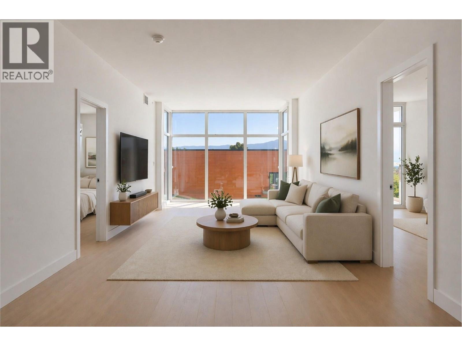 Directly across from Gyro Beach in Kelowna's premier Lower Mission, Caban is where lakeside lifestyle meets luxury concrete construction. One of the only buildings in the city zoned for short-term rentals, this is an exceptional opportunity whether you are seeking a full-time residence, vacation retreat, or high-performing income asset. This spacious 2 bedroom, 2 bathroom residence offers 1,097 sq ft of thoughtfully designed living space featuring designer finishes throughout, industry-leading CresseyKitchen™ with professional gas range, double wall ovens, panel-ready integrated refrigerator and dishwasher, and a full-height stone slab backsplash, wide plank hardwood floors, and bright open-concept living with floor-to-ceiling windows. The primary bedroom features a spa-inspired ensuite with double vanity, quartz countertops, oversized frameless glass shower, and separate water closet, plus a walk-in dressing room with floor-lit custom cabinetry leading directly to its own private deck. Concrete construction delivers superior soundproofing, durability, and long-term quality you can feel the moment you walk in. Resort-style amenities include an infinity lap pool, hot tub, Himalayan salt sauna, gym with mountain views, pool house with lounge and bistro seating, and private cabanas with fire tables. Steps from the beach, paddle boarding, and the best cafes and restaurants the Lower Mission has to offer. Rare beachfront real estate like this does not come available often. (id:6769)