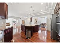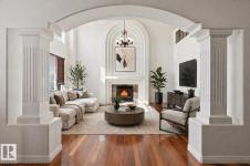 Elegance & quality best describe this Executive 7 bedroom home with over 4000 sf PLUS a fully finished WALKOUT basement. A rare opportunity, nestled in prestigious Terwillegar Gardens BACKS onto GREEN SPACE & steps to a water pond. Perfect for large family! A grand foyer, soaring 18 foot vaults, glass blocks & a majestic curved staircase greet your guests. The open floor plan is perfect for entertaining. Spacious Chef's kitchen with a huge custom island. Beautiful 4 season sunroom, main floor bedroom with full bath and main floor laundry. Massive primary suite with a fireplace, ensuite boasts a steam shower & jetted tub. Loft plus 4 oversized bedrooms upstairs all with walk-ins! You will love the basement with a large rec room, 2nd kitchen, bedrooms & den/exercise room. Features include large decks/balconies, 3 furnaces, 2 A/C, heated triple garage & South facing 8443 sf lot. Located close to to Rec Centre/schools/transit and shopping. A must to see! Ready to call home! (id:6769)
