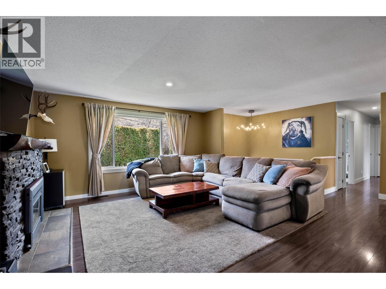 Welcome home to this impeccably maintained family residence where modern comfort meets mountain-view serenity. Pride of ownership shines with a new garage door and energy-efficient windows installed just three years ago. The bright main floor features updated doors and trim throughout, offering three spacious bedrooms and two bathrooms, including a beautifully updated main bath and a private three-piece ensuite. Cozy up in the living room by the stunning stone gas fireplace or head downstairs to the versatile recreation room, which features a convenient wet bar and could easily be transitioned into a suite. This lower level also includes an additional three-piece bathroom, dedicated laundry, and ample storage. Major mechanical updates provide total peace of mind, featuring a furnace and A/C replaced in 2017 and a brand-new hot water tank. This home sits on a generous lot with a lush yard, raised garden beds, and plenty of room for boat or RV parking. Move-in ready and perfectly situated to capture the surrounding views, this property is a must-see. (id:6769)