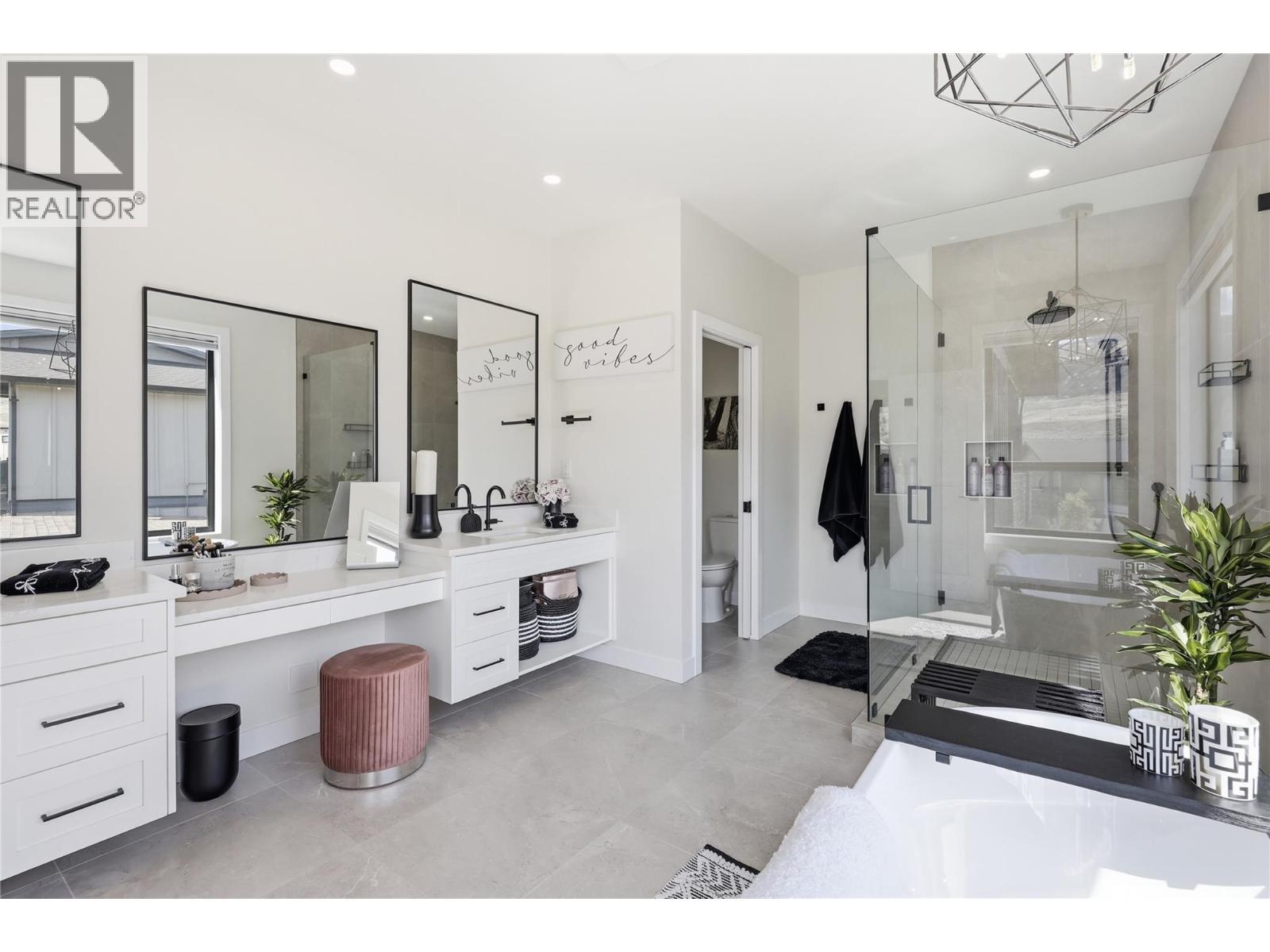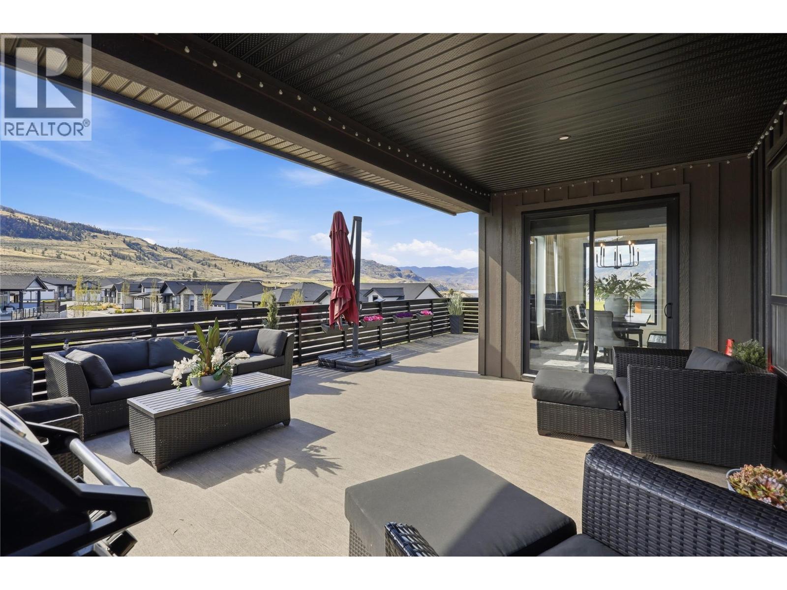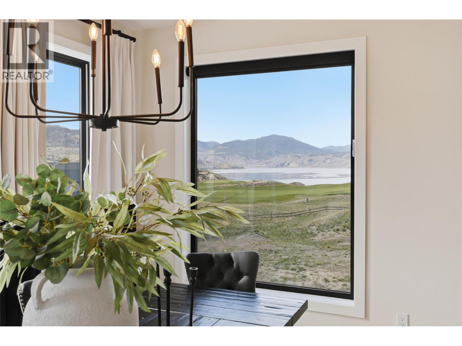 A home defined by scale, light, and a layout that feels considered the moment you walk in. The main living space is defined by height and volume, with oversized windows that draw in natural light and frame views of the lake and surrounding hills. Kitchen, dining, and living connect seamlessly and extend to a covered deck, creating a natural indoor outdoor flow off the main level. The primary suite is positioned on the main floor with direct access to the deck and a spacious ensuite that reflects the tone of the home, clean, spacious, and intentional. A dedicated workspace is also positioned on the main, offering function without interrupting flow. The walk out lower level adds meaningful square footage, offering a large, flexible living area with additional bedrooms and room for guests, family, or a separate zone when needed. Where this property separates itself is in the exterior function. A triple garage offers the depth and scale to accommodate larger vehicles or a boat, complemented by a substantial driveway that provides exceptional parking capacity. Clean design, strong scale, and a layout that prioritizes main floor living with flexibility built in. Golf course living with lake views, offering a sense of separation from the city while still just 15 minutes from Kamloops. (id:6769)