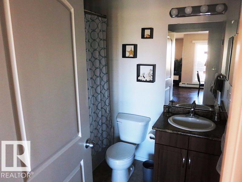 Bright corner unit with wraparound balcony & two parking stalls. Well-kept 2 bed, 2 bath on the 3rd floor with east exposure and open-concept layout. Large windows bring in natural light. The wraparound balcony extends your living area outdoors—great for morning sun and evening barbecues. The primary bedroom includes a 3-piece ensuite, while the second bedroom and 4-piece bath are on the opposite side for added privacy, making it well-suited for guests, a home office, or shared living. Features include in-suite laundry, underground heated parking + surface stall, Telus Fibre internet, and a well-managed building. Available fully furnished (list available), ideal for move-in ready living or investors. Condo fees include heat, water, waste removal, and professional management. Close to parks, trails, shopping, and more. (id:6769)