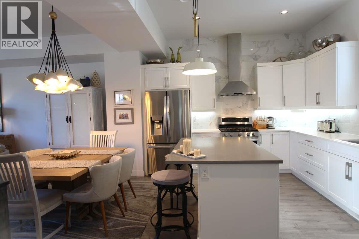 *** For more information, please click Brochure button. *** Enjoy the benefits of strata living without the congestion. Situated on Robinson Road, outside the main strata, with a private driveway. Rooftop patio, lowest strata fees around, stunning lake and mountain views, low-maintenance backyard featuring rock landscaping, trees, fruit bushes and backyard BBQ patio. The third level is a flat rooftop patio overlooking the lake and mountains — an exceptional space for relaxing, suntanning, dining and hot-tubbing, with gas hookups for your patio and rooftop BBQ's and 30 A hot tub connection. Inside, the 5 yr old home features 10-foot ceilings on the main floor, a large great room, a well-equipped kitchen with abundant soft-close cabinets and pot drawers, a fully organized island, quartz countertops (througout), Stainless steel Door in Door fridge, gas stove w/ blue porcelain convection oven, Bosch SilencePlus dishwasher, ""marble"" tile feature wall in kitchen and under cabinet lighting w/ valance. Large front closet, powder room and pantry complete the main floor. Primary bedroom easily accommodates a super king suite. Ensuite boasts Jack and Jill vessels, a sculptural slipper tub w/ Roman tub filler, showcased against a marble wall, glass-enclosed shower with a Rainforest showerhead and a separate water closet. There are 3 other bedrooms, 2 up, 1 on the lower level, Vacuflo, wrought iron/stained maple handrail, upgraded lighting and plumbing, tiled ledges, custom window. (id:6769)