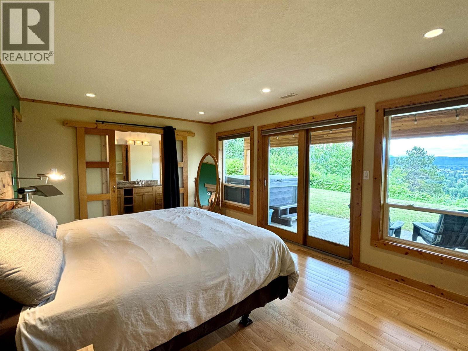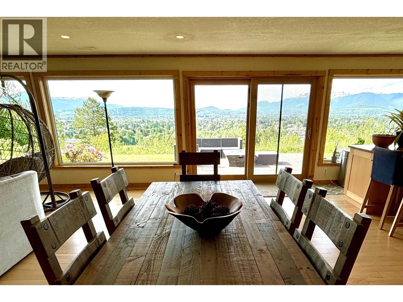 This home is like no other! A spacious, sprawling rancher situation perfectly on one of the very best views in Terrace. An immaculate 3 bedroom, 3 bathroom (plus den) home offering just under 2400 sqft of single floor living space. The breathtaking open concept living space makes way to floor to ceiling windows allowing for the most amazing space. With so many thoughtful high end features; stunning built-ins, wood doors & trim, heated floors and more, the house is sure to impress. The primary bedroom not only has a wonderful walk in closet and a next to perfect ensuite, it boasts panoramic views beyond the private covered deck and hot tub. The yard is peaceful and private with plenty of extra room to take advantage of all that it has to offer. This property is an absolute dream. (id:6769)