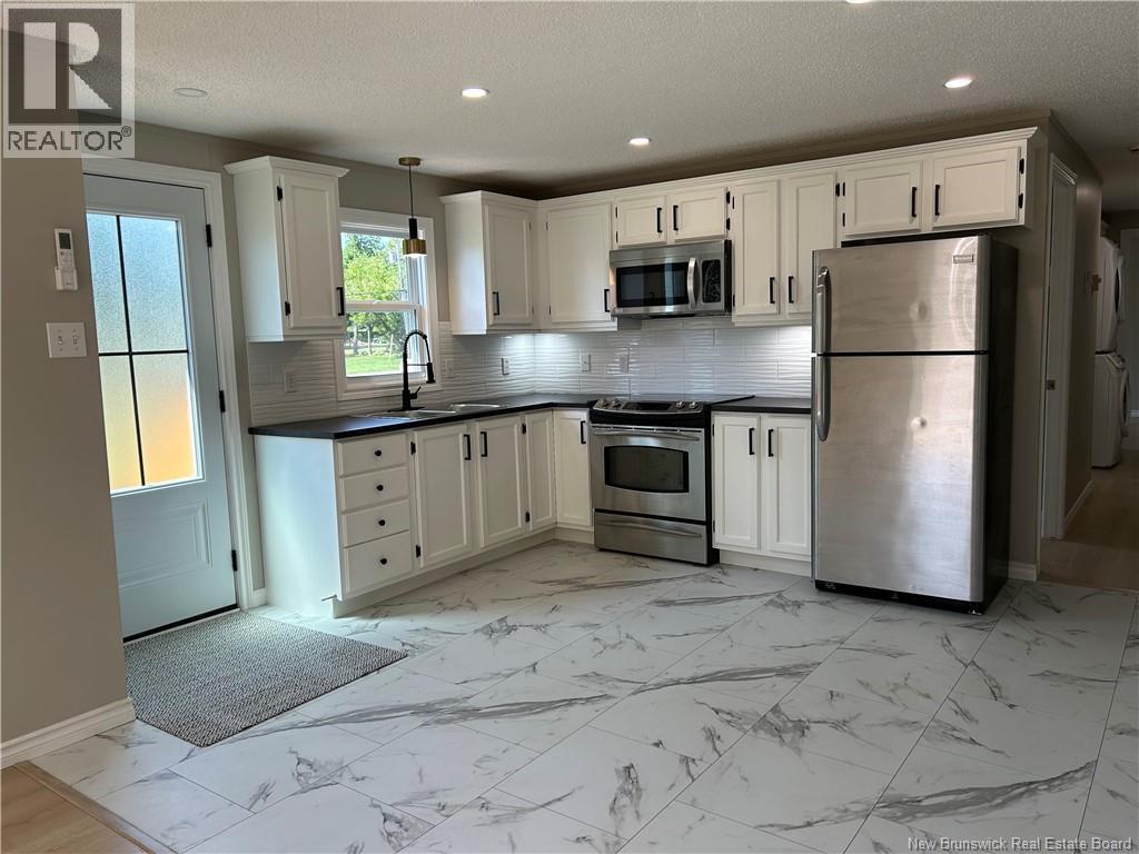 Year round seaside living in the Coastal area of Cocagne. Located in Florina Beach with deeded beach access is this fully renovated 2 bedroom minihome! Drive up into the double drive and notice the beautiful Blue spruce and willow tree in the front yard offering a welcoming summer shade area. The minihome presents you with a new spacious front verandah, oversized (private) side patio and a baby barn plus shed to hide all your toys. Inside is bright, spacious and clean. Updated kitchen with stainless appliances, Microwave range, glass subway backsplash tiles, undermount light and all new fixtures. Potlights add to the clean lines and ambiance. The open concept into the livingroom allows the natural light to flow from the patio doors throughout and greets the inside entertainment to easily continue outside on the patio. Down the hall is a bedroom, spacious bath with room to add a laundry hamper, added storage or whatever meets your needs, a stackable washer and dryer, back door exit and spacious primary bedroom area with double closet nicely hidden hot water tank access and electric panel access. Home is move in ready, quick closing available and awaiting you to just unpack and walk yourself down to the beach (id:6769)