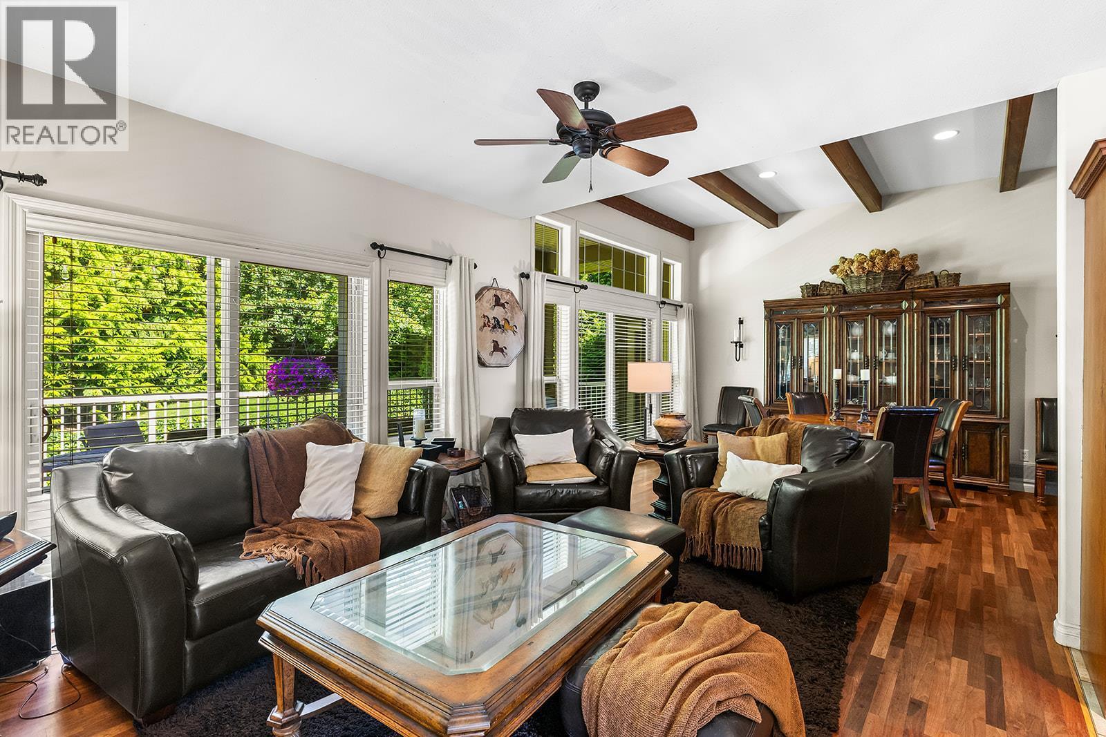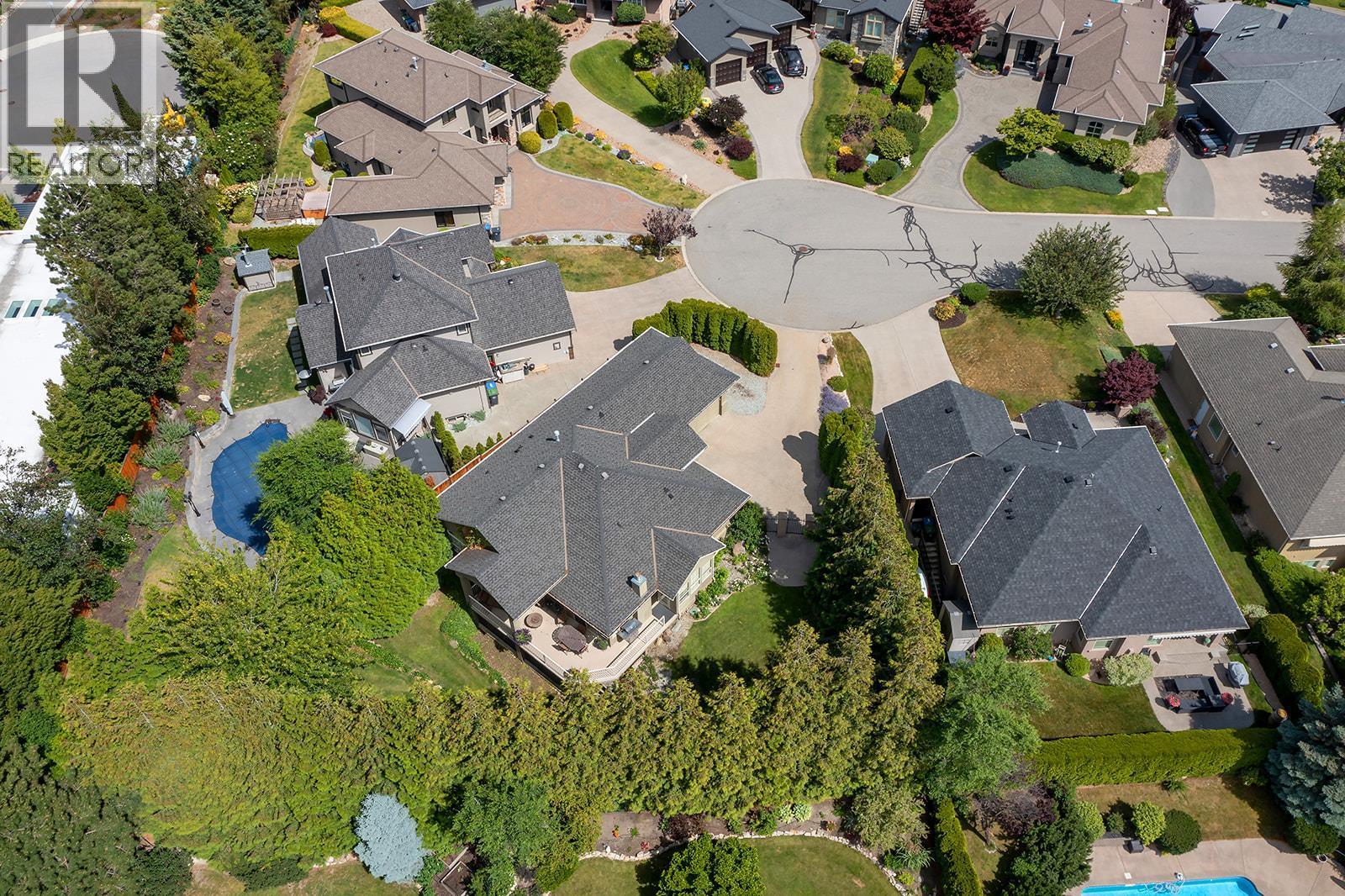 Opportunity to live in the finest gated community in Lakeview Heights, Thacker Ridge Estates. Beautiful, desirable neighbourhood that offers proximity, walking distance to world class wineries Quails Gate and Mission Hill wineries and restaurants, golf courses and Kalamoir Park, just a short hike down to Okanagan Lake, hiking, biking trails & beach access. You will love the lifestyle offered here. Located at the end of a quiet cul de sac. Fenced, private, park like setting property featuring 2770 sq ft plus storage area unfinished area 180 sq ft and 2 car garage 478 sq ft. Rancher walk out basement featuring 4 bdrms & 3 bthrms,plus den or office. Main floor 1542 sq ft, great room living , 11 ft vaulted ceilings, 2 bedrooms on main plus den or office, ensuite and 2nd full bthrm, main floor laundry and the lower walkout floor features 1228 finished sq ft, 2 bdrms and 1 full bthrm, large family room and games room which could be suited for family member as plumbed for kitchen and private entry into the walk out basement. 2 separate basement walk out accesses. The 1st basement walk out access is from sliding doors family room and the 2nd basement walk out access is from bdrm, both of these basement accesses onto covered patio leading to outdoor pathway. Opportunity for wine cellar and gym. 5th bedroom possibility. Floor plan in photos. Located through the gates and 1st left once thru the gates, House #9. No For Sale Sign placed on front lawn. (id:6769)