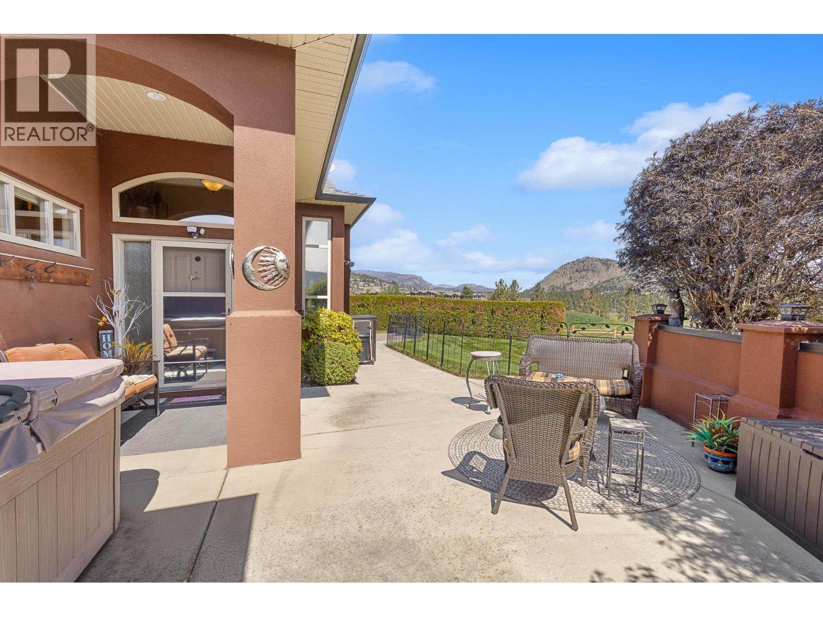 Nestled at the end of a quiet cul-de-sac in West Kelowna’s highly desirable Sonoma Pines, this meticulously cared-for rancher offers a perfect blend of privacy and easy living. The journey begins in the gated front courtyard, a secluded sanctuary featuring a private hot tub where you can soak while taking in stunning views of the surrounding golf course and mountains. Inside, the home opens up with soaring vaulted ceilings and an abundance of windows that bathe the open-concept living space in natural light. Rich hardwood floors lead you past a cozy gas fireplace to the kitchen, which boasts warm maple cabinetry and an island with raised eating bar. There is also a versatile flex room providing the ideal footprint for a home office. For seamless indoor-outdoor entertaining, the dining area offers easy access to a covered stamped-concrete patio at the rear of the home, perfect for shaded afternoon relaxation. Perhaps the most unique feature is the impressive 7 foot crawl space; complete with its own bathroom. This expansive area offers incredible potential for a craft studio, games room, home gym or for additional storage. Practicality meets premium design with a wide driveway and an oversized garage with over 570 SF of space, including a dedicated third bay specifically for your golf cart. Enjoy a lifestyle of convenience and leisure, with walking access to amenities and minutes away from the Westside Wine Trail & local beaches. Pre-paid lease and no Property Transfer Tax! (id:6769)