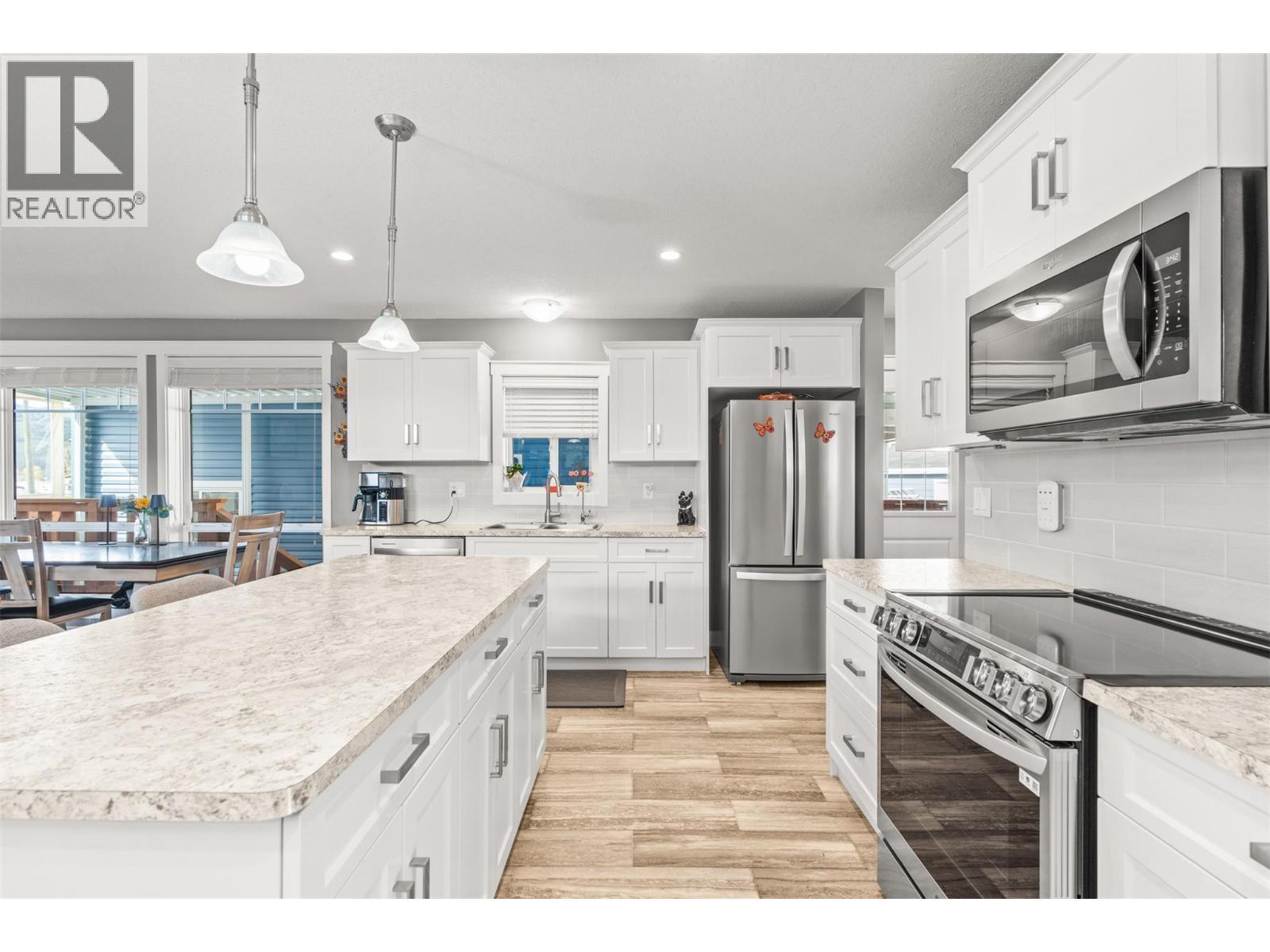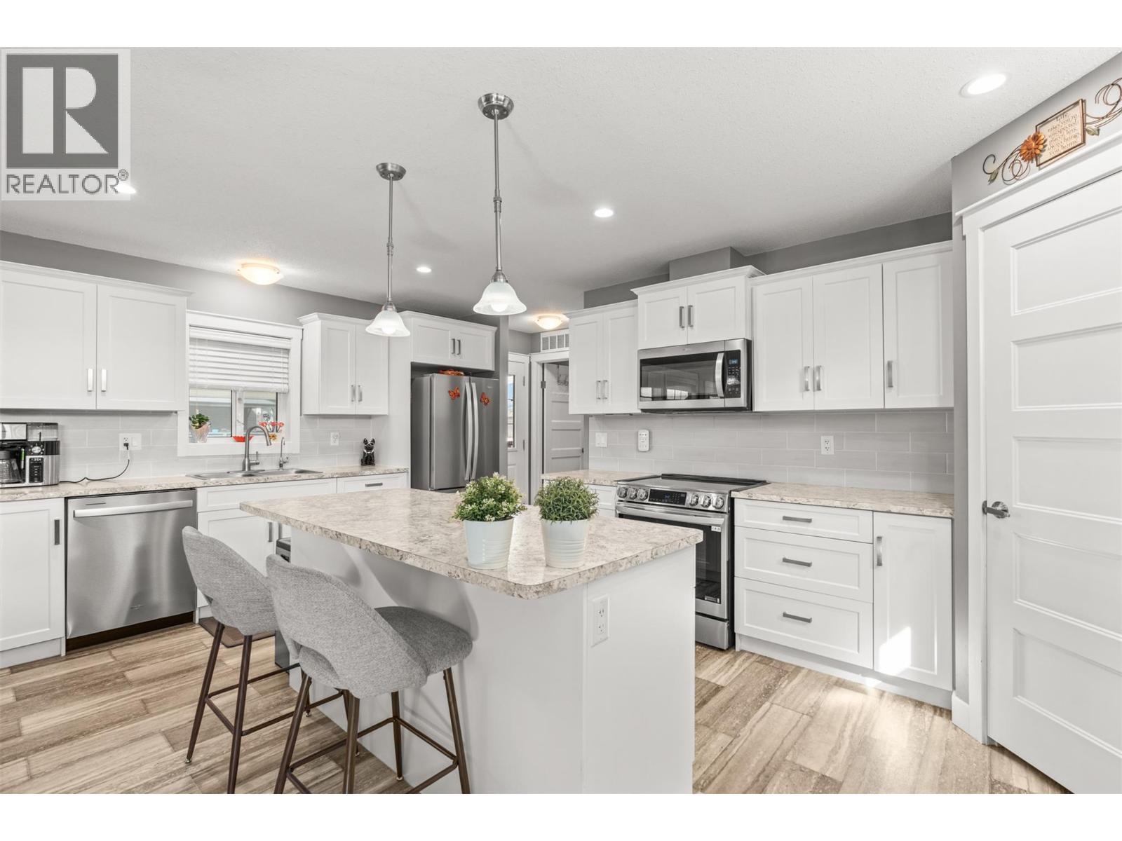 This is the kind of home where life naturally moves outside. Set in a peaceful community on Okanagan Lake and just minutes from Spallumcheen Golf Course, this like-new modular home offers a comfortable, easy layout paired with an outdoor space that truly stands out. Inside, the bright open-concept design connects the kitchen and living area, creating a functional space for everyday living. Enjoy the bonus room with the stunning lake and mountain views. Plus two bedrooms and two bathrooms, including a primary suite with a walk-in closet and ensuite, the home is practical, low-maintenance, and easy to enjoy. Step outside and everything changes. A large, covered patio extends your living space, complete with a ceiling fan and powered sun/ privacy screen with room to lounge, dine, and unwind in any weather. The yard has been thoughtfully finished to create a private outdoor retreat, blending green space with low-maintenance landscaping for the perfect balance of beauty and ease. Whether it’s morning coffee, evening drinks around the fire table, or hosting friends, this is a space designed to be used. Adding even more value is the detached garage/workshop with loft storage, ideal for hobbies and personal workspace. With nearby lake access, a relaxed setting, and outdoor living that’s hard to match, this property delivers the Okanagan lifestyle at an approachable price point. (id:6769)