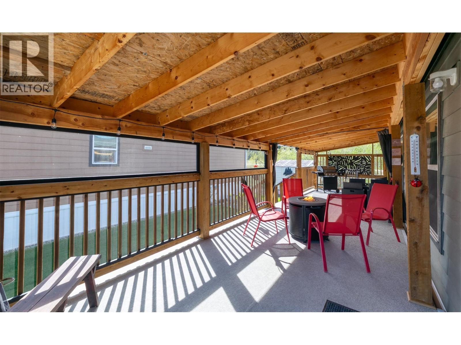 Welcome to #20 4811 10A Avenue NE in Salmon Arm—an exceptionally well-cared-for 2 bed, 2 bath manufactured home located in the desirable Lakeland Mobile Home Park. This home offers a bright and comfortable open concept living space, enhanced by vinyl flooring and beautiful cafe blinds that provide both privacy and natural light, along with blackout cafe blinds in both bedrooms for restful sleep. Pride of ownership is evident throughout. Just off the kitchen is the laundry room and second door to the deck. Step outside to a thoughtfully landscaped yard featuring lush green grass, lilacs, and vibrant flower beds—perfect for enjoying the outdoors. The partially fenced yard and privacy screen on the deck adds a sense of privacy, while a convenient garden shed provides extra storage. One of the standout features is the impressive 370 sq ft covered shade deck, built in 2019. Designed for year-round comfort and enjoyment, this space includes a durable Duradek cover, privacy screen, and two distinct areas: one for BBQing and outdoor dining, and a separate screened and curtained sitting area—ideal for relaxing in any season. A move-in ready home offering comfort, functionality, and outdoor living at its best—don’t miss this opportunity to enjoy easy living in a welcoming community. (id:6769)