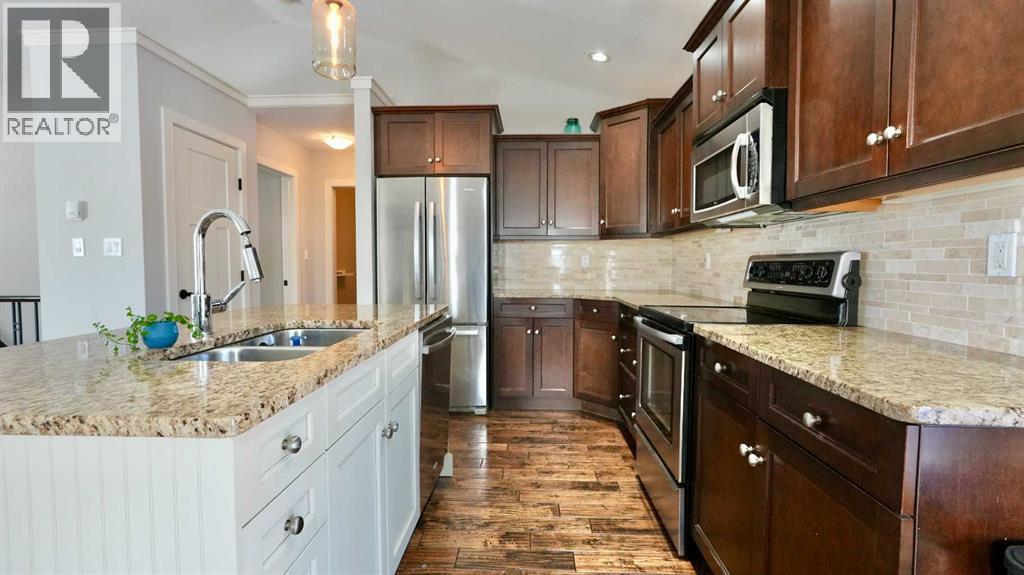 Set in a highly sought-after neighborhood, this exceptional home enjoys a peaceful setting on a quiet, family-friendly cul-de-sac—offering the perfect balance of privacy, safety, and community charm. Step inside to an open-concept main living space where quality craftsmanship and tasteful finishes shine. Designed for both everyday living and effortless entertaining, this inviting area flows seamlessly onto an expansive deck—ideal for soaking in the scenic hill views. With partial greenspace behind, you’ll appreciate the added privacy and peaceful connection to nature right in your own backyard. At the heart of the home, the gourmet kitchen provides ample space to create, gather, and host with ease. The adjoining living room, anchored by a warm gas fireplace, offers the perfect setting to relax, entertain, and make lasting memories. The main floor features three well-appointed bedrooms, including a spacious primary retreat complete with a luxurious five-piece ensuite featuring a deep soaker tub—your own private escape at the end of the day. Downstairs, the fully finished walk-out basement expands your living space with bright, oversized windows and direct access to a large covered patio, creating a seamless indoor-outdoor experience. A heated double attached garage adds both comfort and convenience, rounding out this impressive offering. Homes of this caliber, in such a desirable location, are a rare find. Experience it for yourself before the opportunity passes. (id:6769)