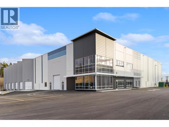 Exceptional opportunity to lease a premium industrial facility in the highly sought-after Kyle Road Business Park in West Kelowna. This standalone building offers approximately 45,785 SF, including a 42,931 SF warehouse and 2,855 SF mezzanine, ideal for distribution, warehousing, and light industrial users. Featuring 32’ clear ceilings, the property offers excellent cubic capacity, along with six dock doors with hydraulic…